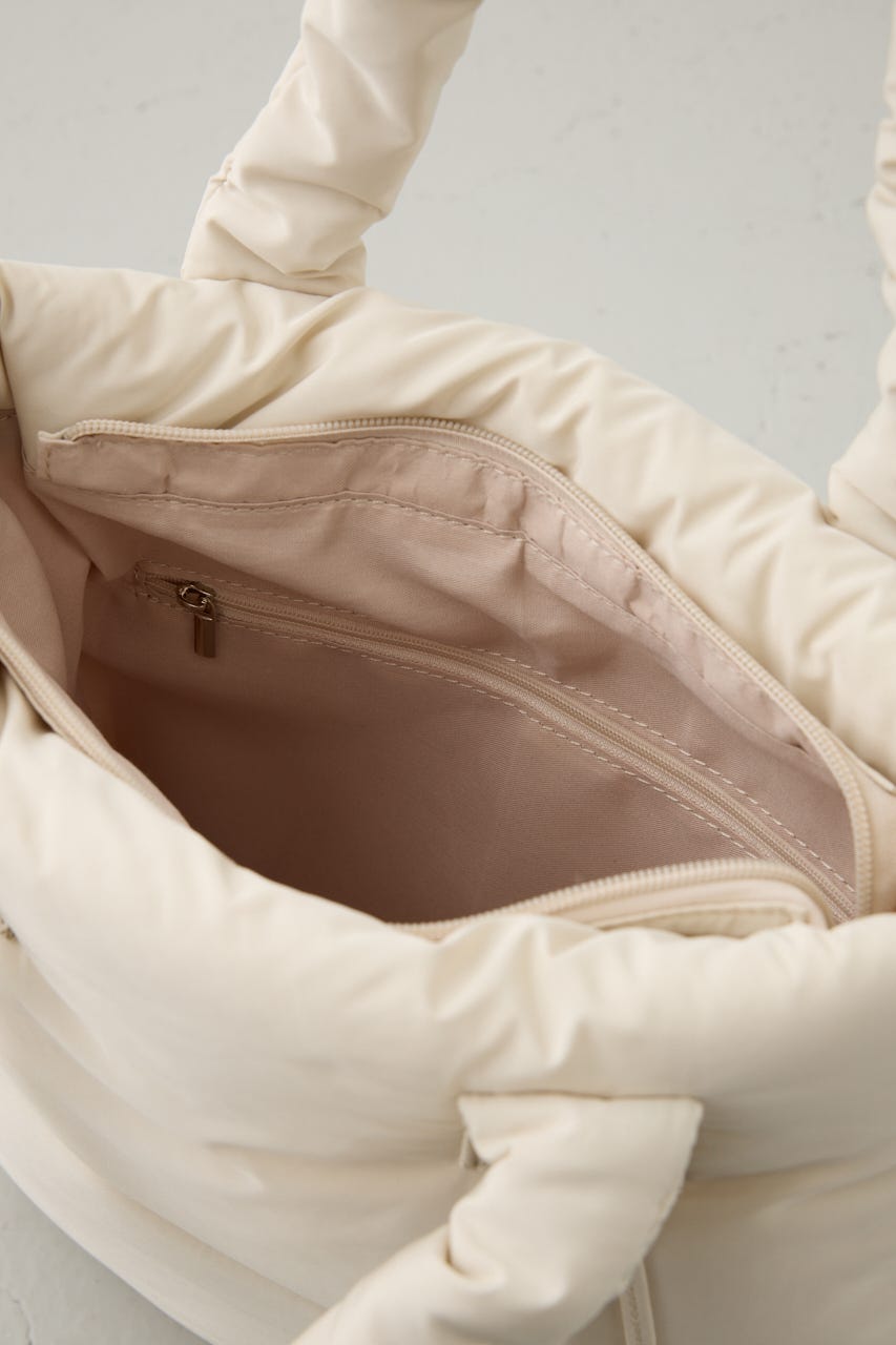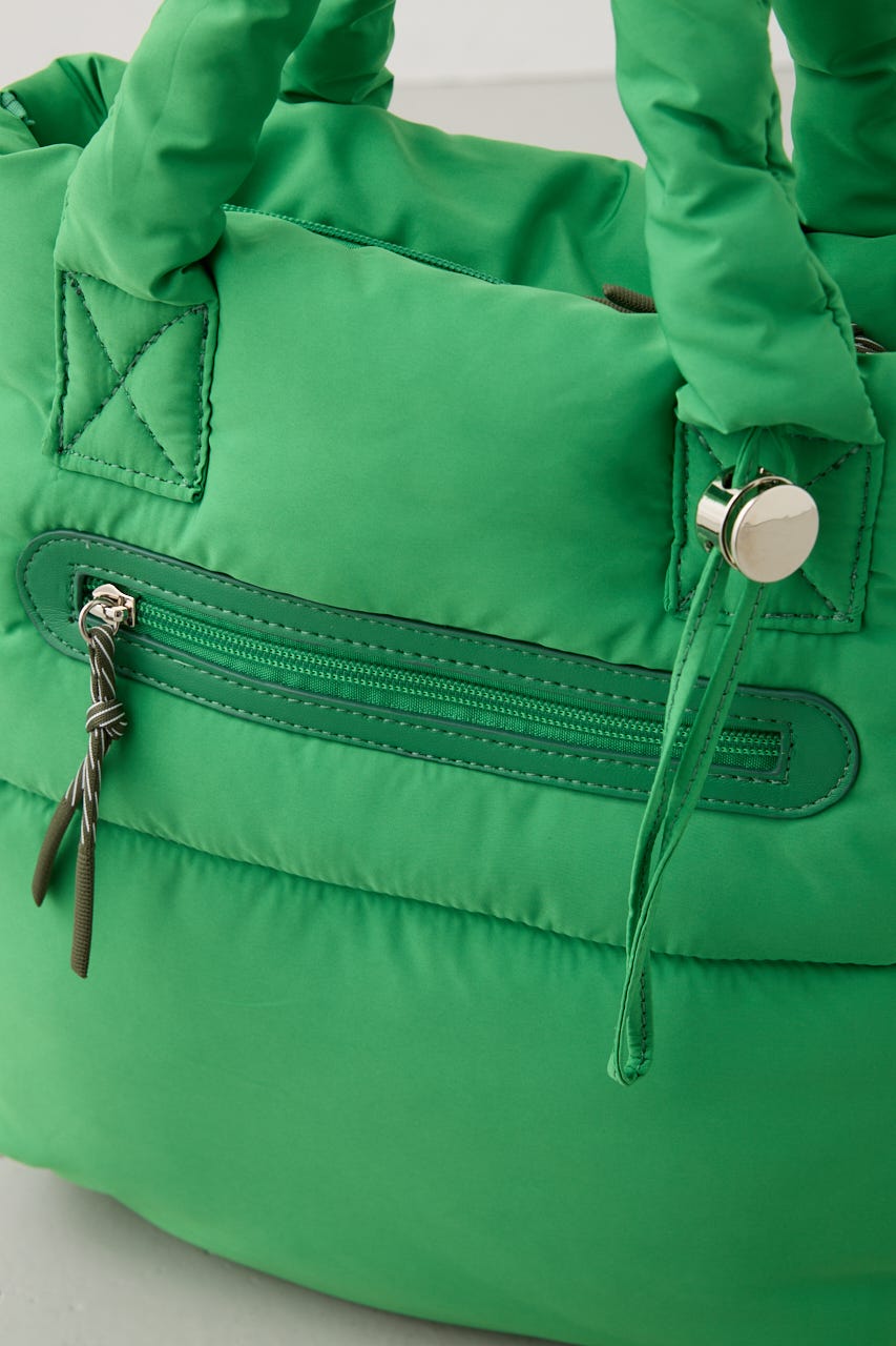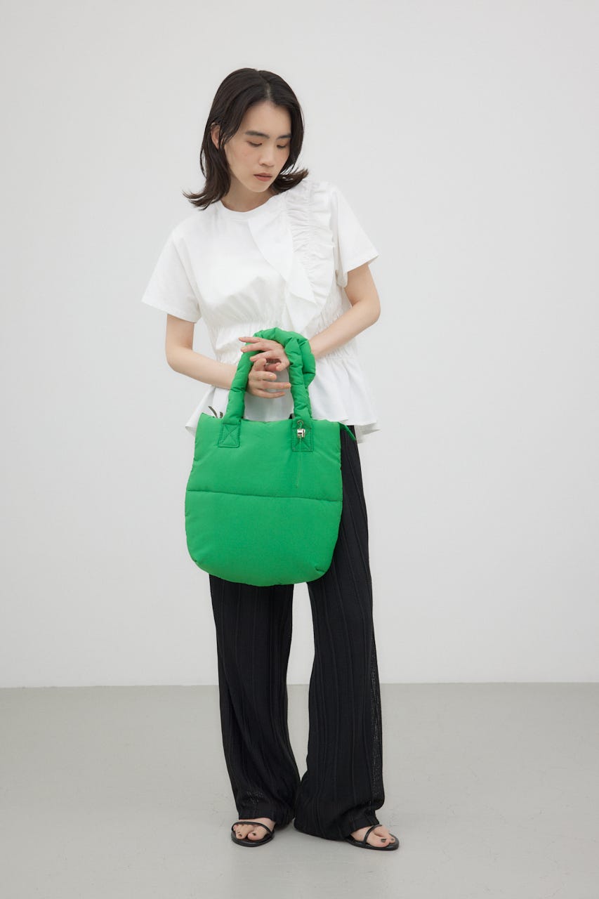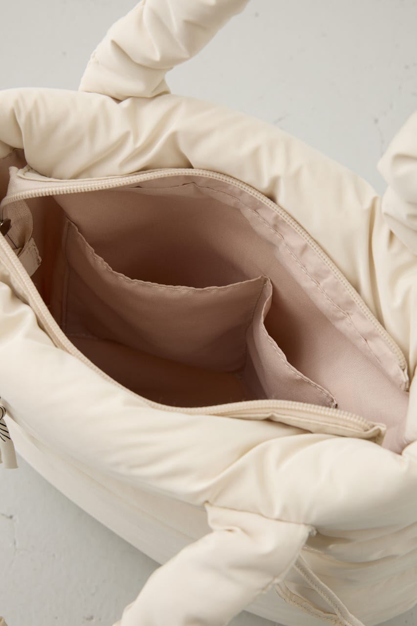 ドロストコードでハンドルの長さを調節できるので、肩掛けもできるデザイン。