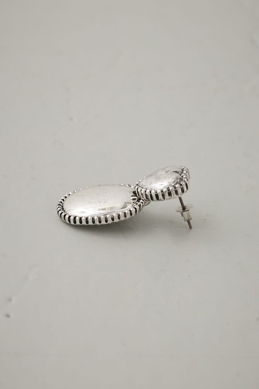 トレンドのウエスタンテイストを取り入れた、コンチョ風デザインが魅力の存在感たっぷりな2連ピアス。