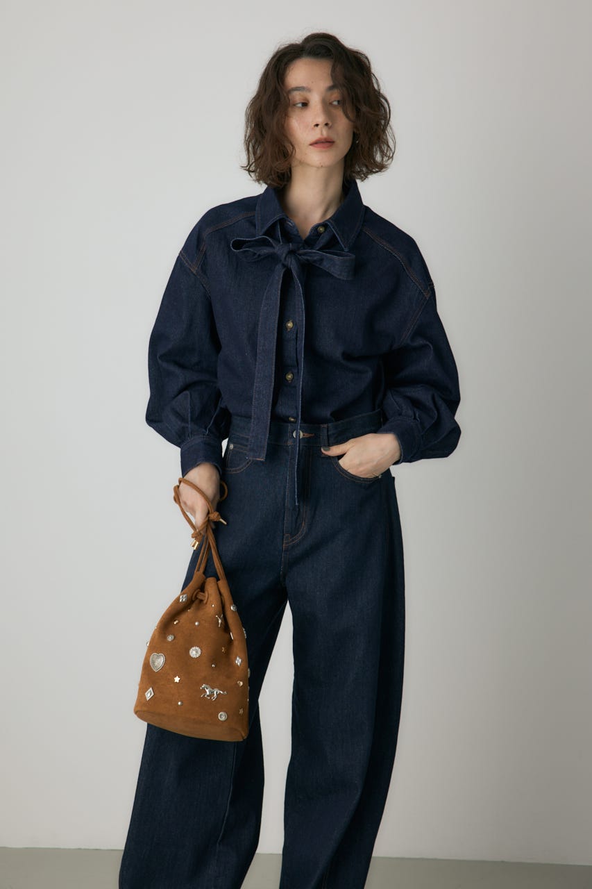 馬や星など様々なコンチョパーツやスタッズがついていて、高見えしてくれて、コーディネートのポイントに。