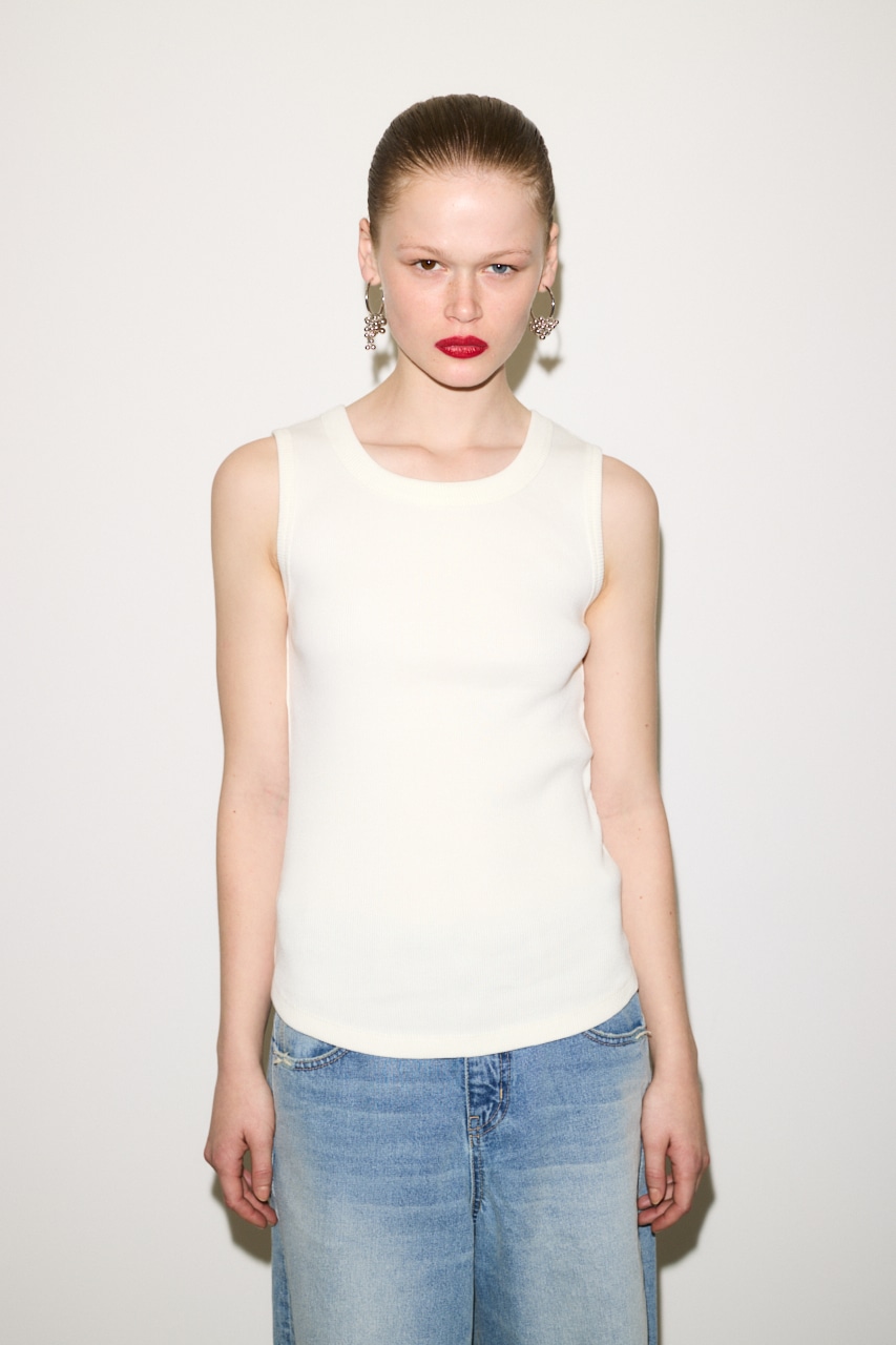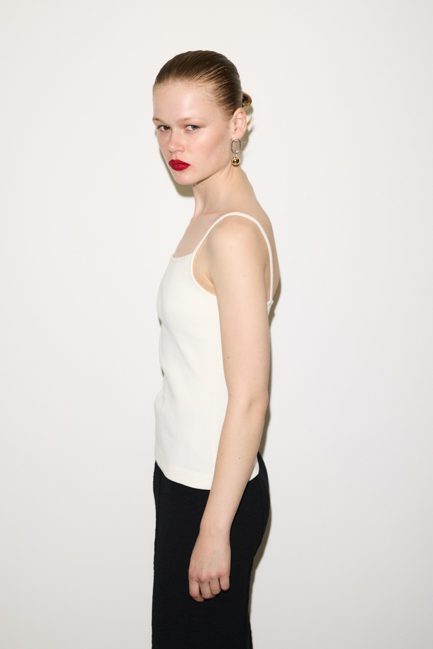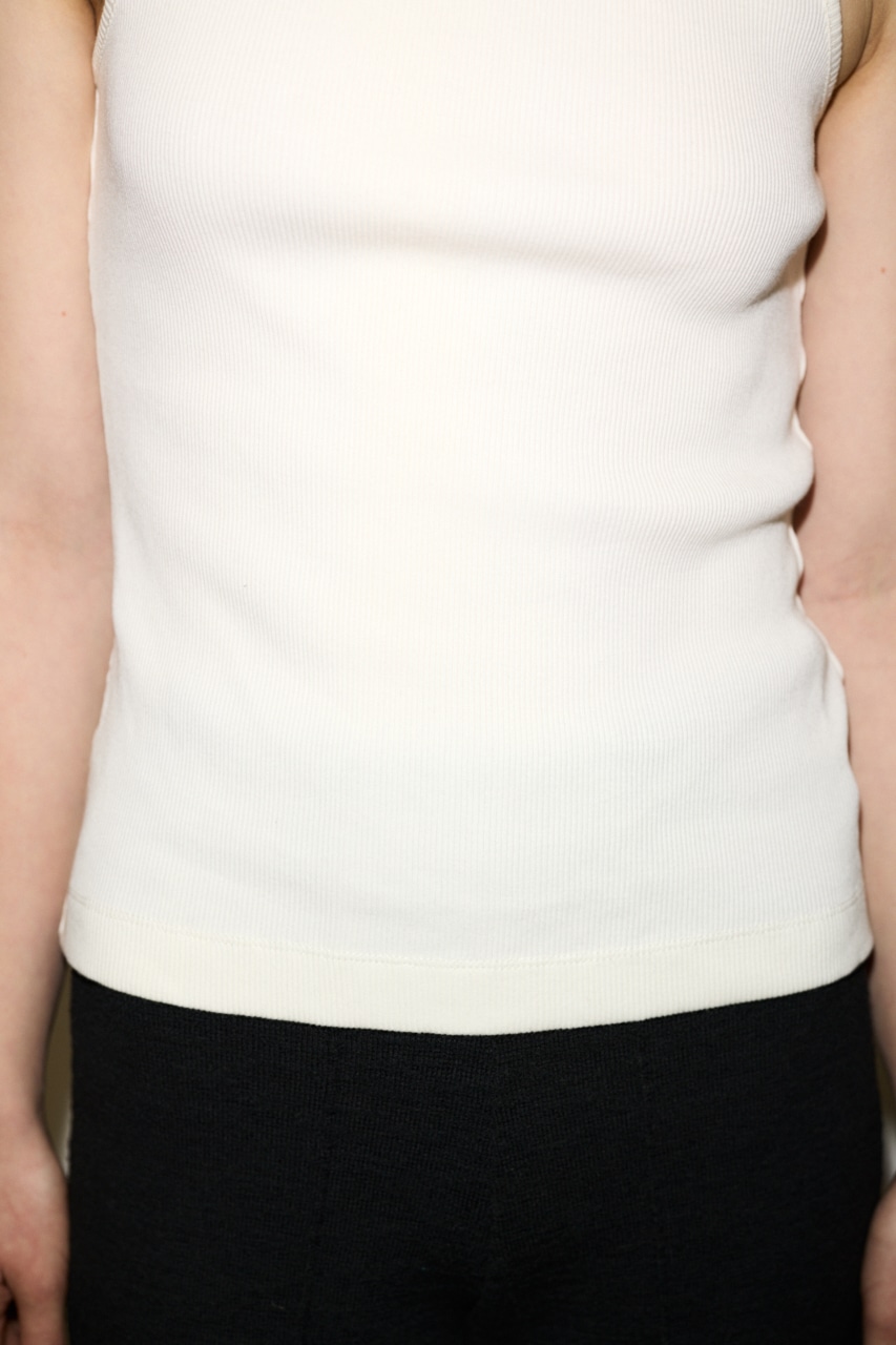 ■DETAIL:リブ編みのテレコ素材を使用し、昨年の形から細タンクトップのデザインをリニューアルしました。