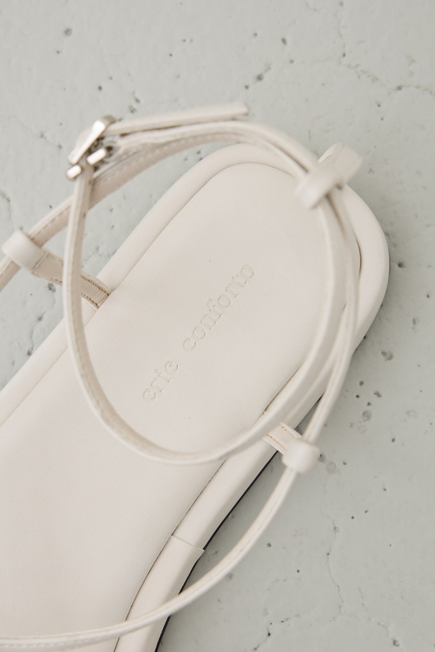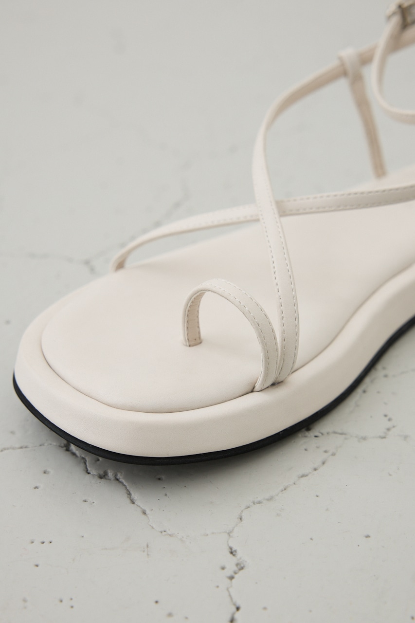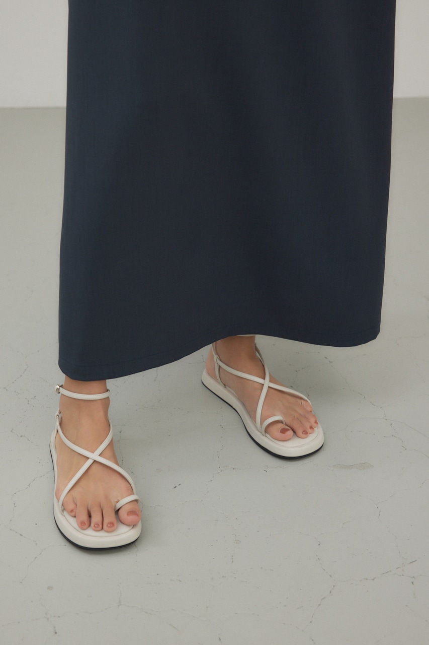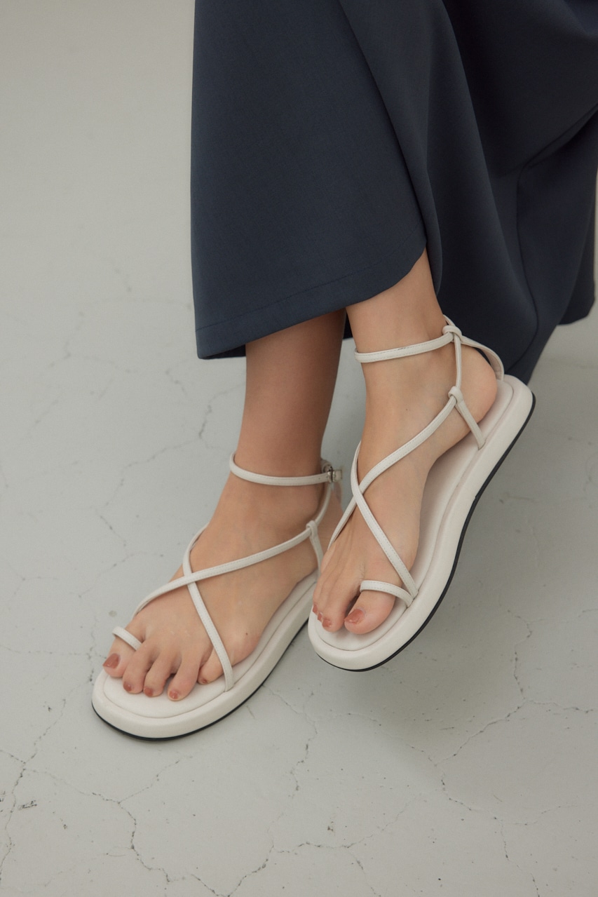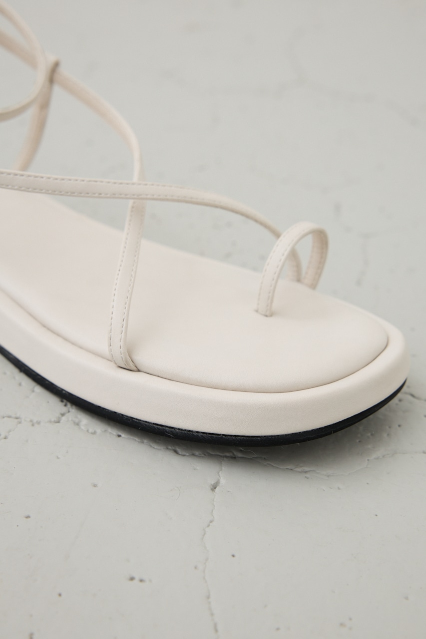 華奢なストラップを巻き付けるようなデザインで、抜け感もありながら、程よく厚みを持たせたソールデザインが、大人っぽいモード感がある1足になっています。