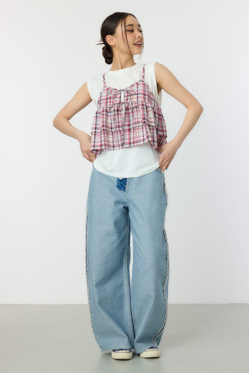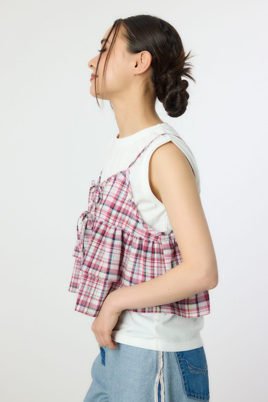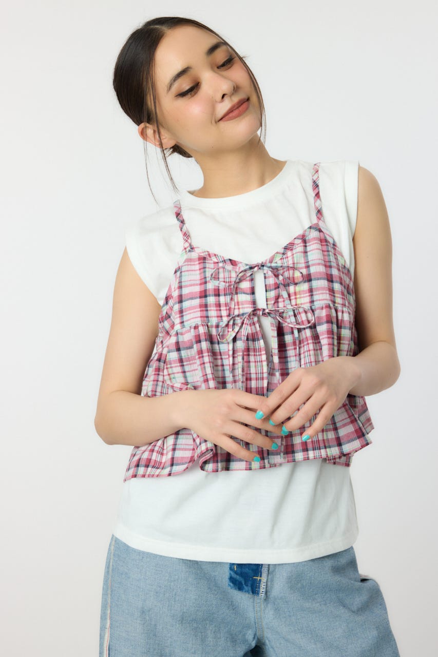 キャミソールはネオンカラーがアクセントになった先染めチェックです。