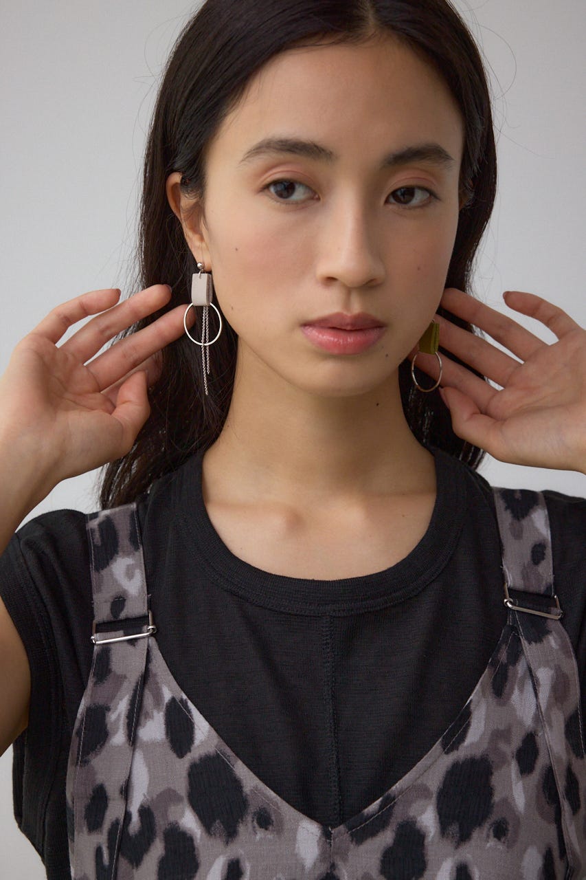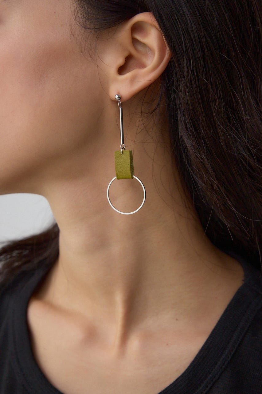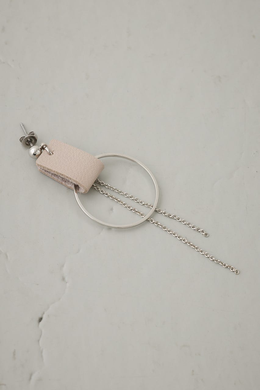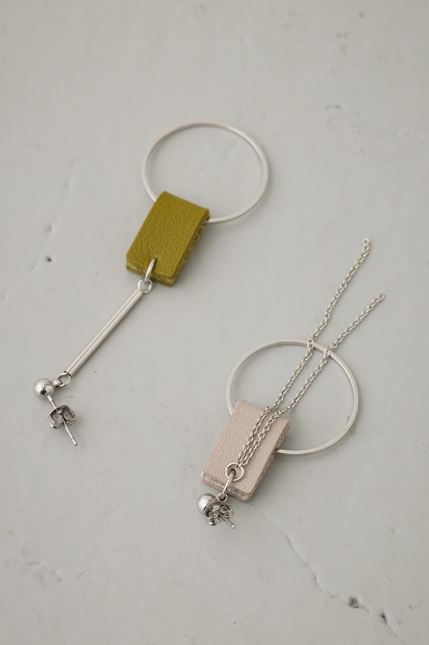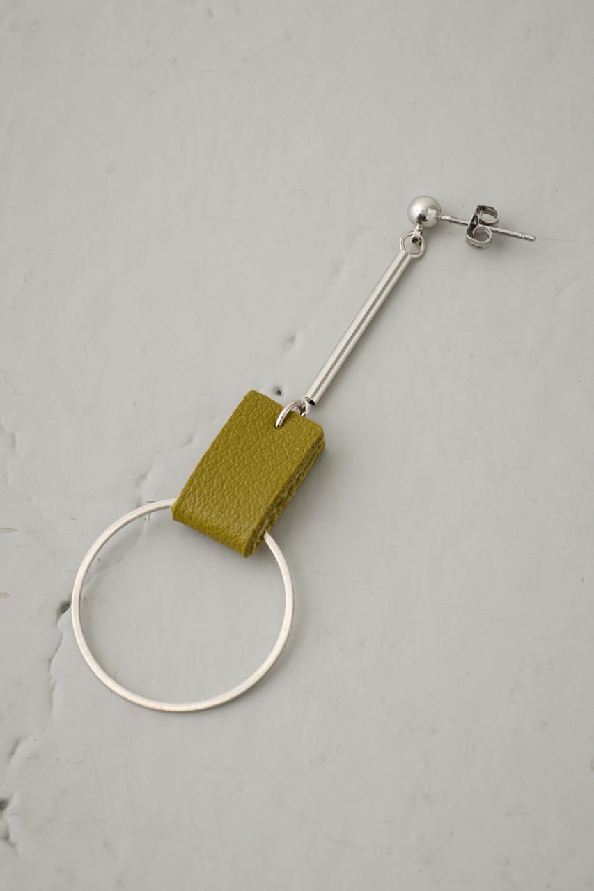 コントラストの効いたカラー使いのレザーにメタルパーツの組み合わせがポイントのピアス。