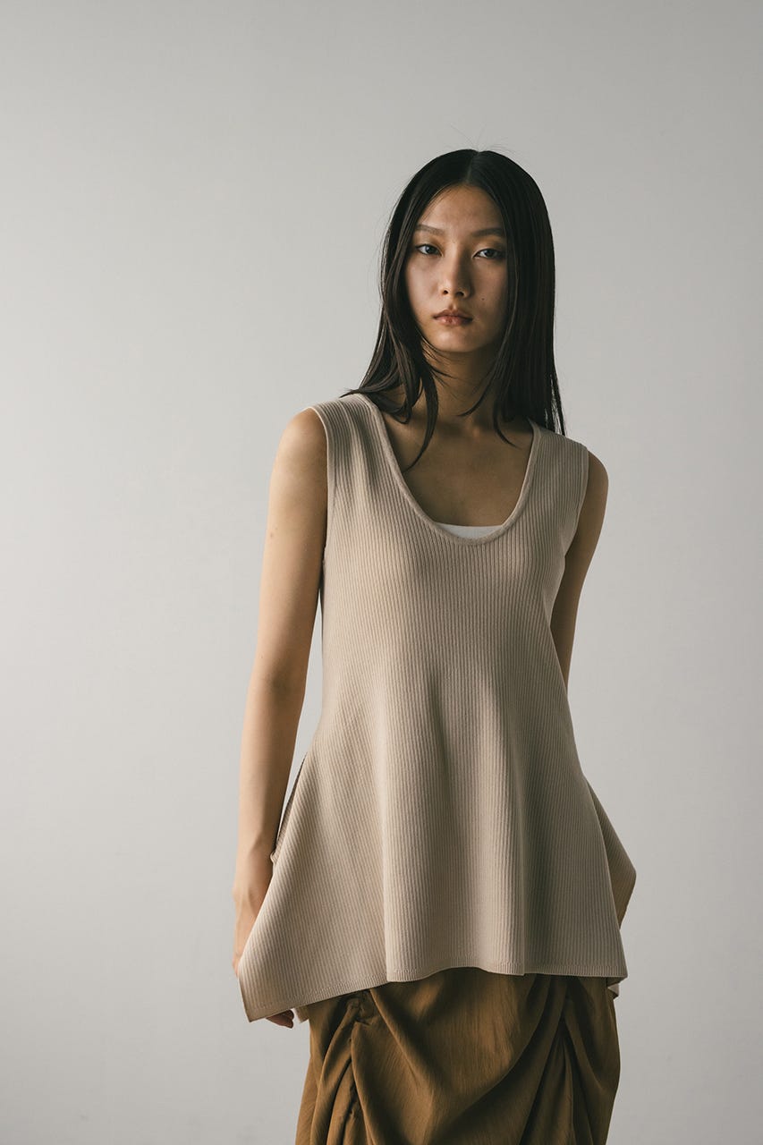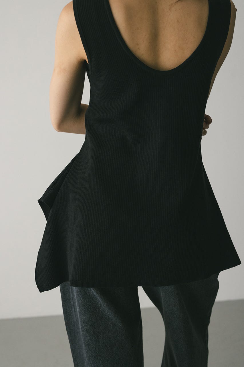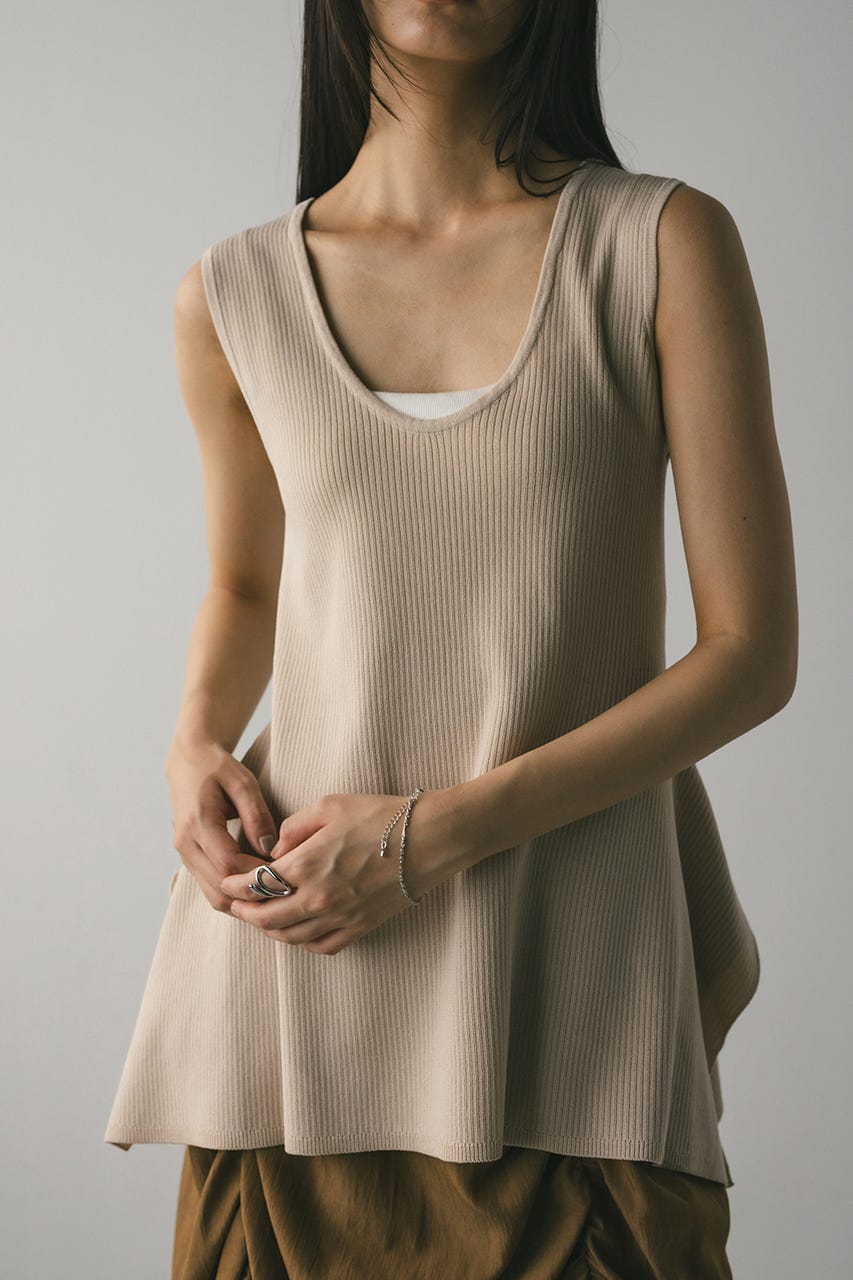 アシンメトリーなヘムカッティングがポイントのニットトップ。