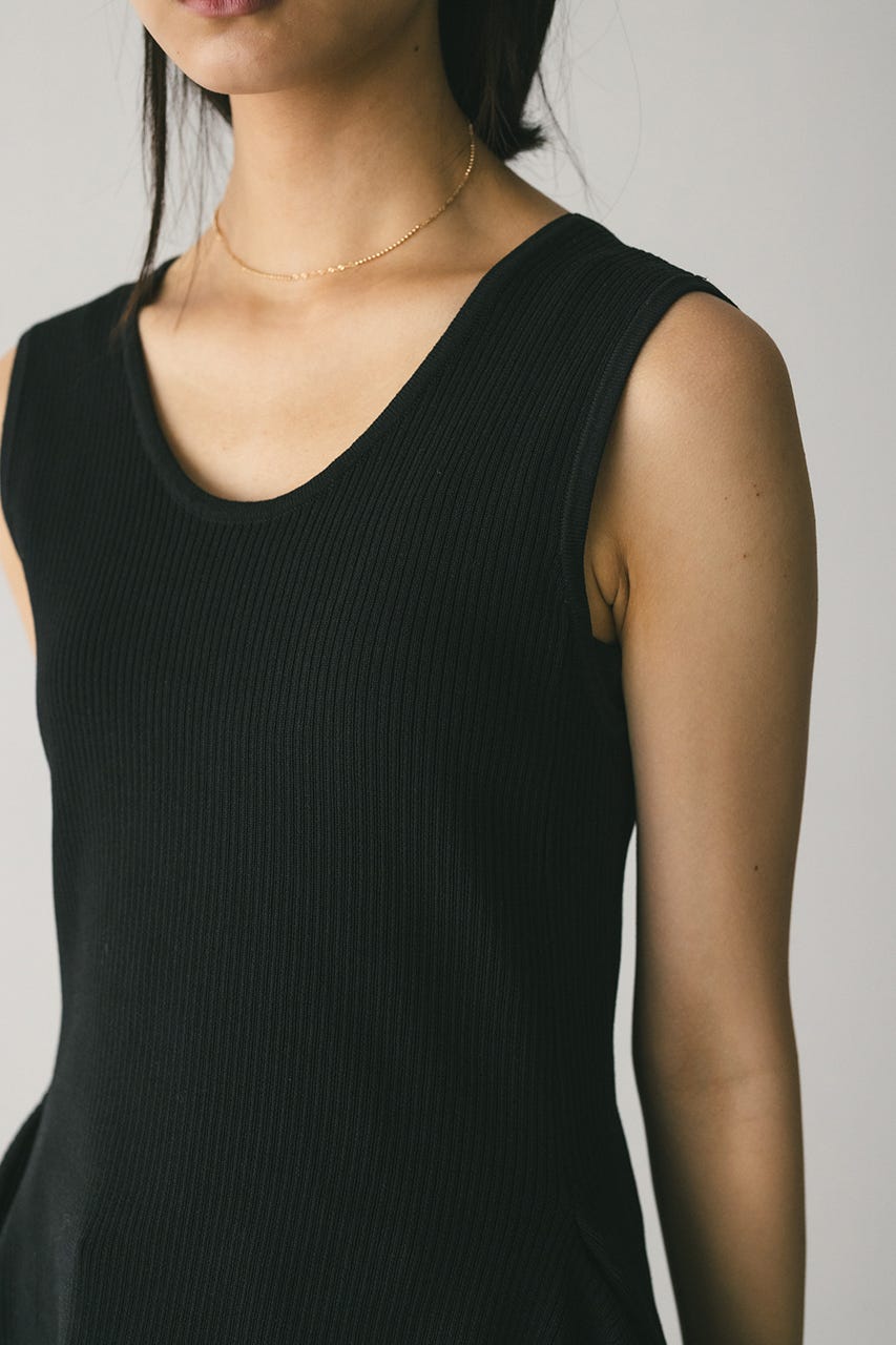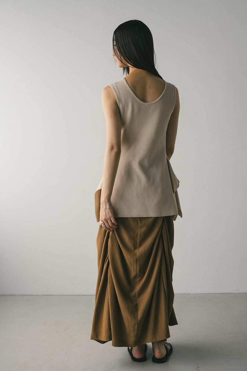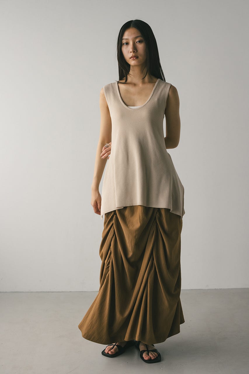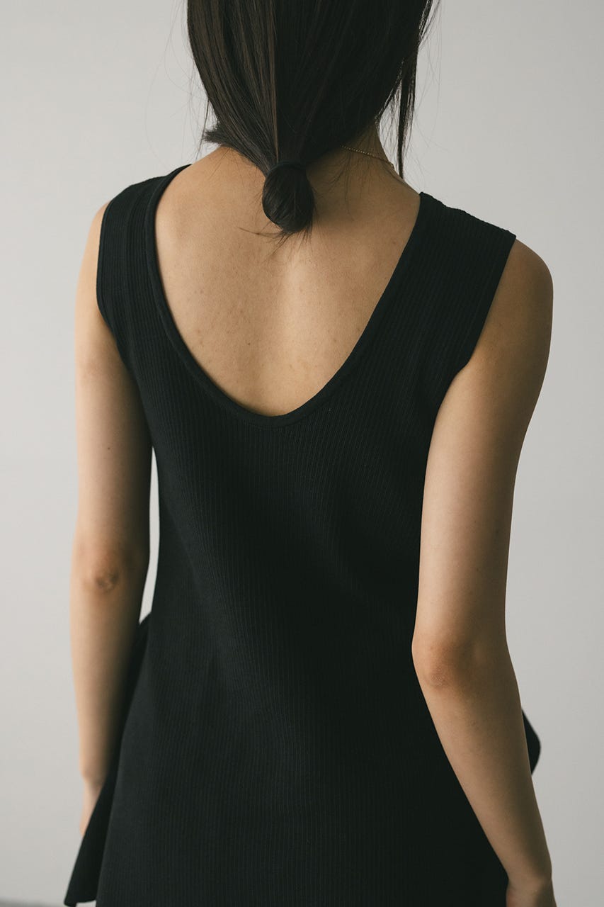 アシンメトリーなヘムカッティングがポイントのニットトップ。