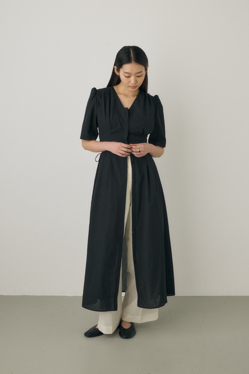 裾まで釦開き仕様の半袖シャツドレス。
