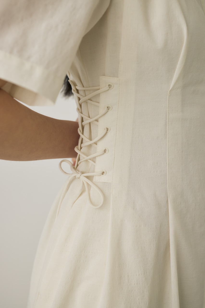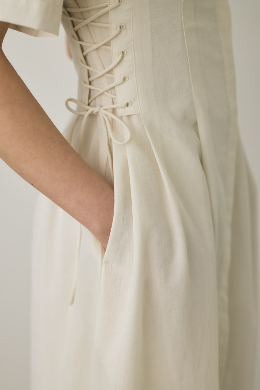 両脇のレースアップでウエストサイズの調整が可能です。