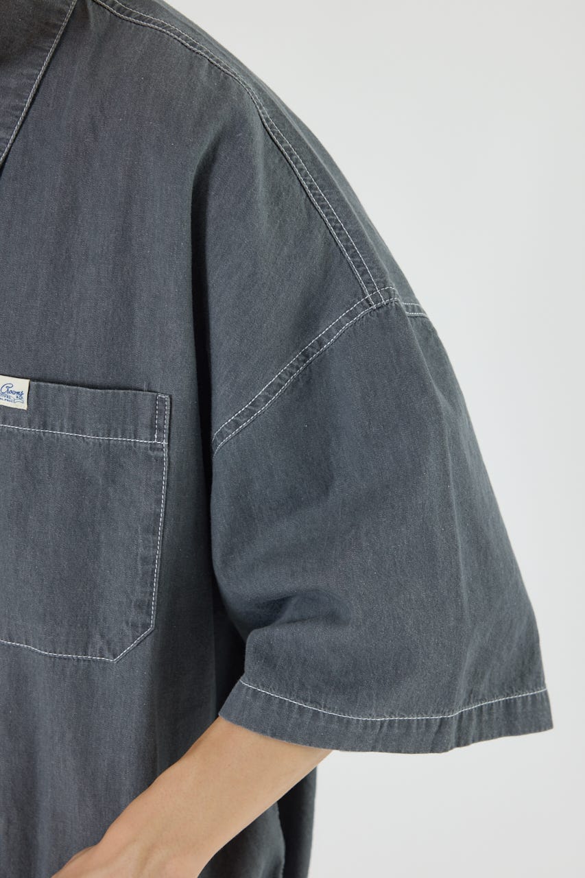 緩めのサイズ感を活かした一枚での着用から、タンクトップやTシャツをインナーにレイヤードスタイルまで、様々な着こなしが可能なアイテム。