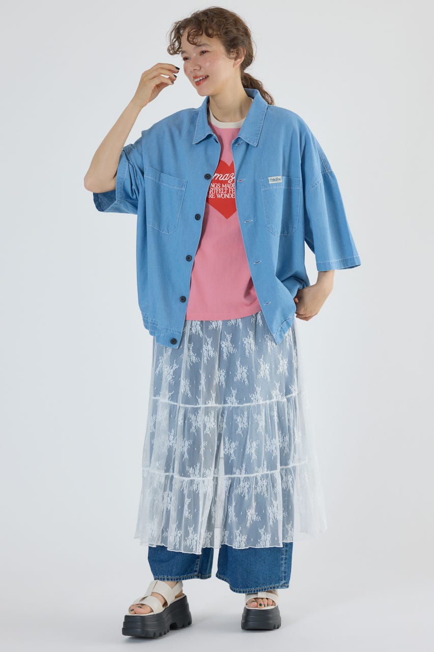 羽織りやすくゆったりとしたオーバーサイズシルエットのライトデニムシャツ。