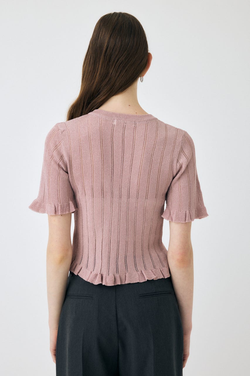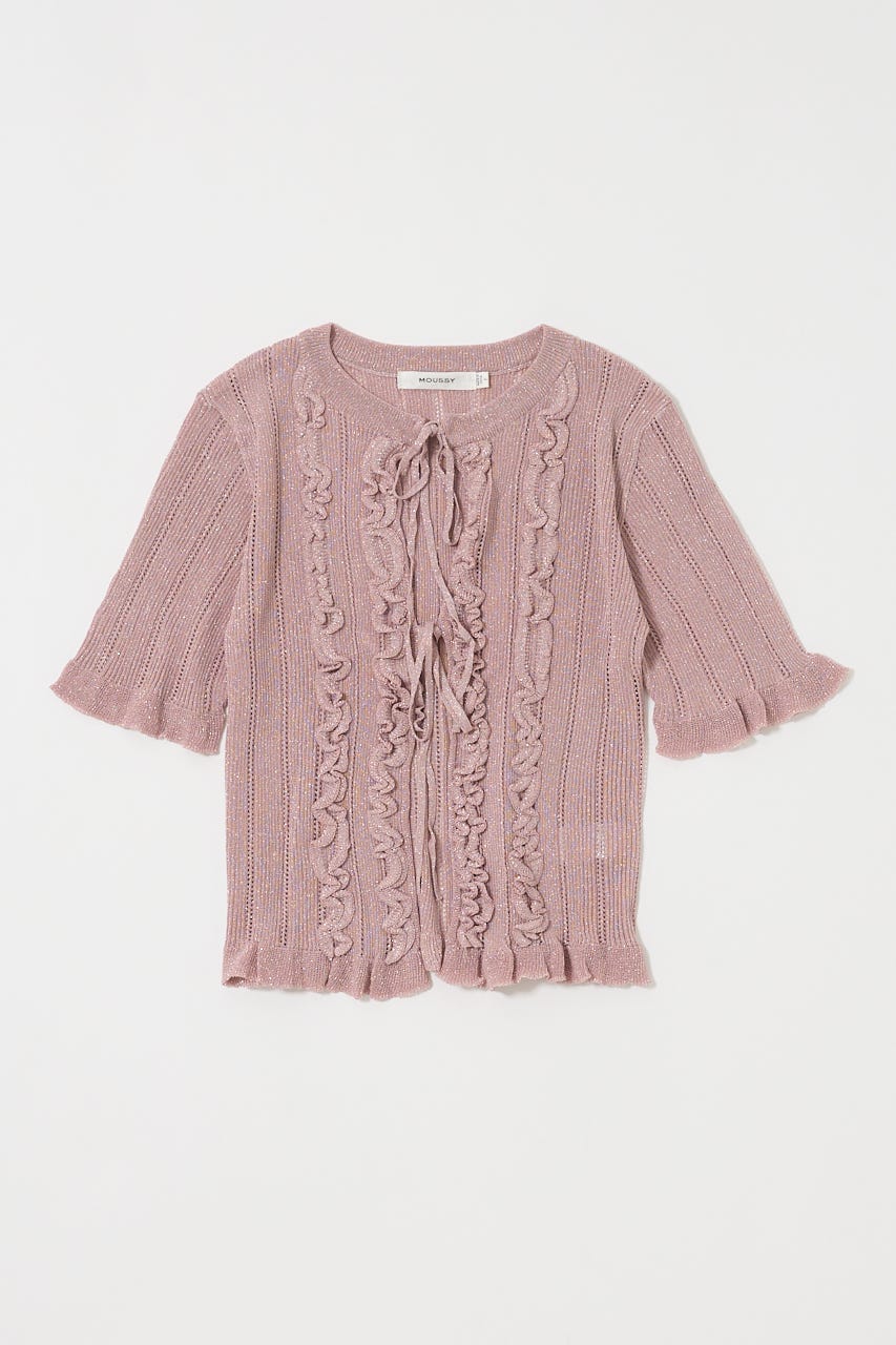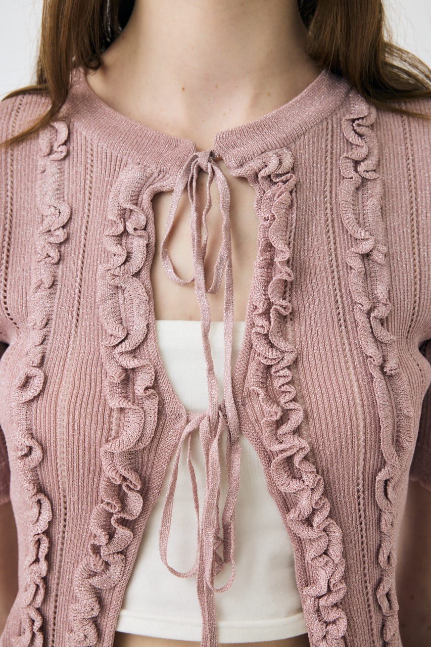 タンクやキャミソールの上にサラッと羽織って、旬なコーデが完成。フリルデザインが印象的なカーディガンです。