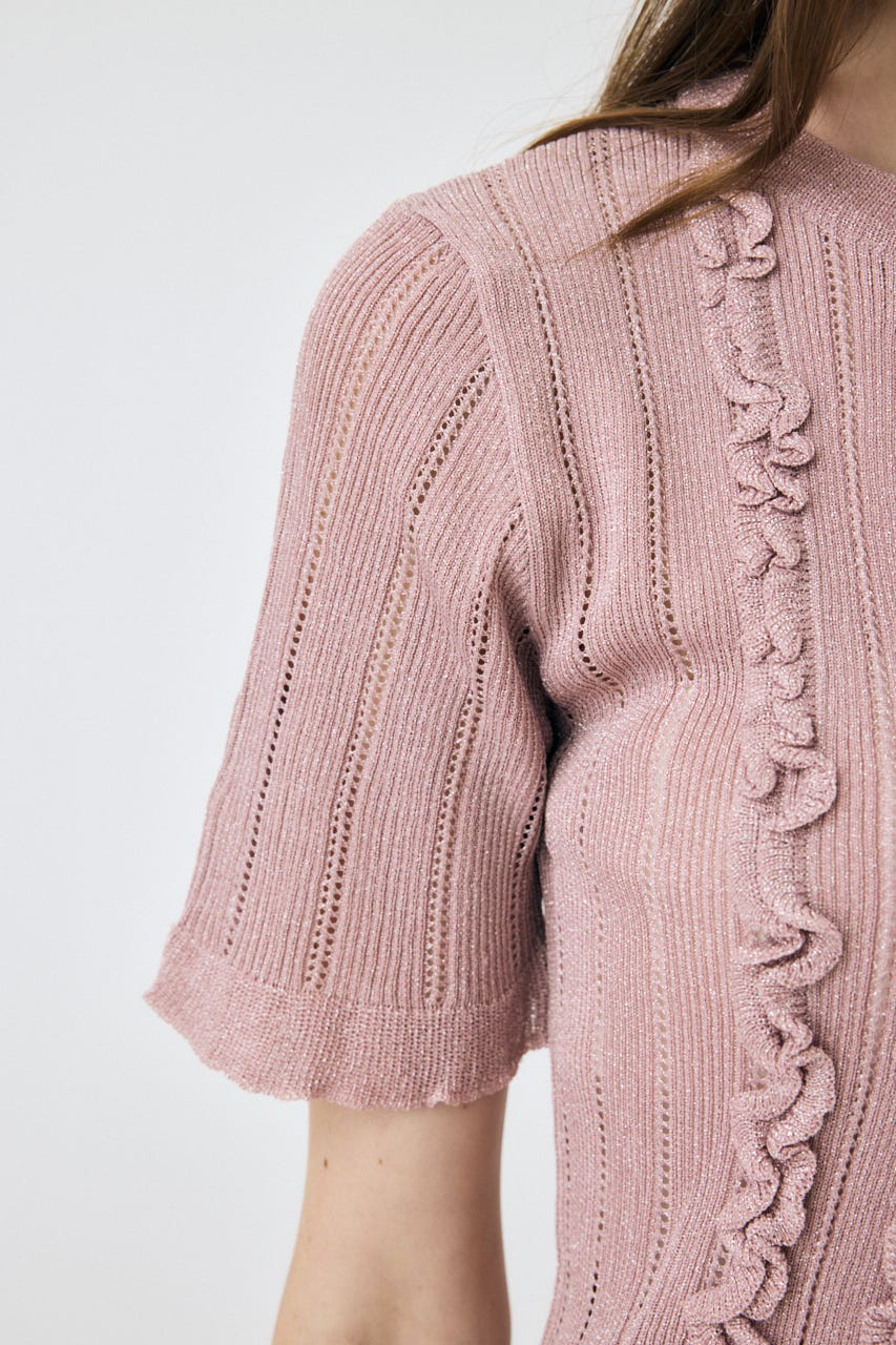 アイレットとフリルが縦に走っており、華やかでありながらもすっきりした印象に。