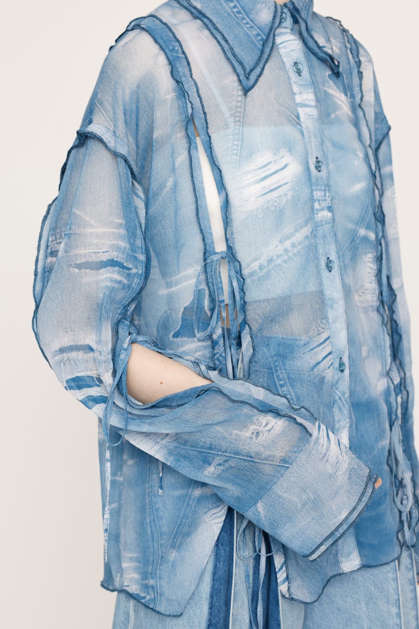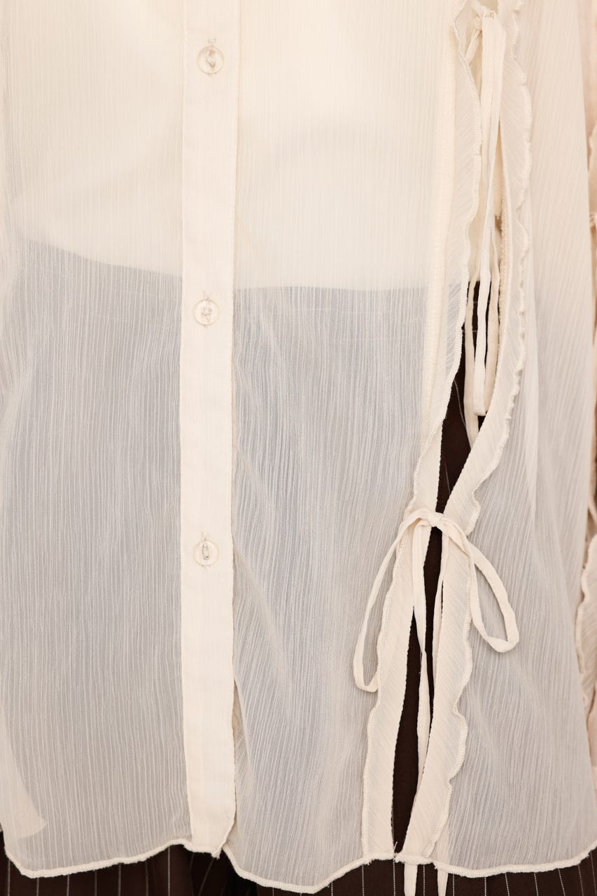 ■POINT:カットデザインがポイントの落ち感のあるシアー素材を使用したシャツです。