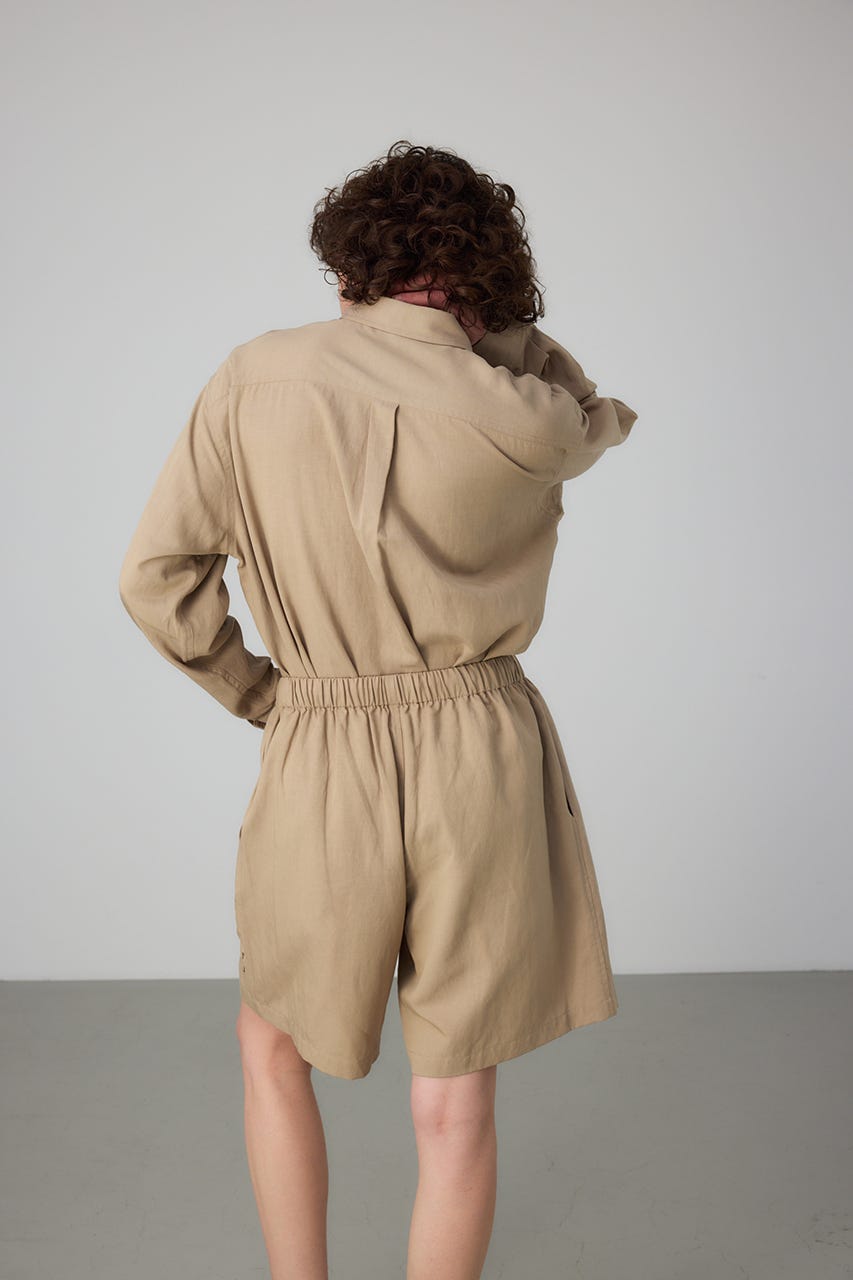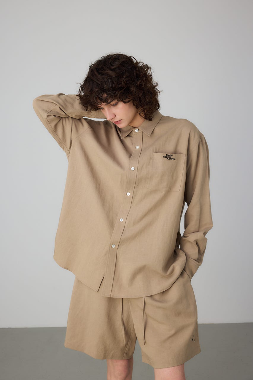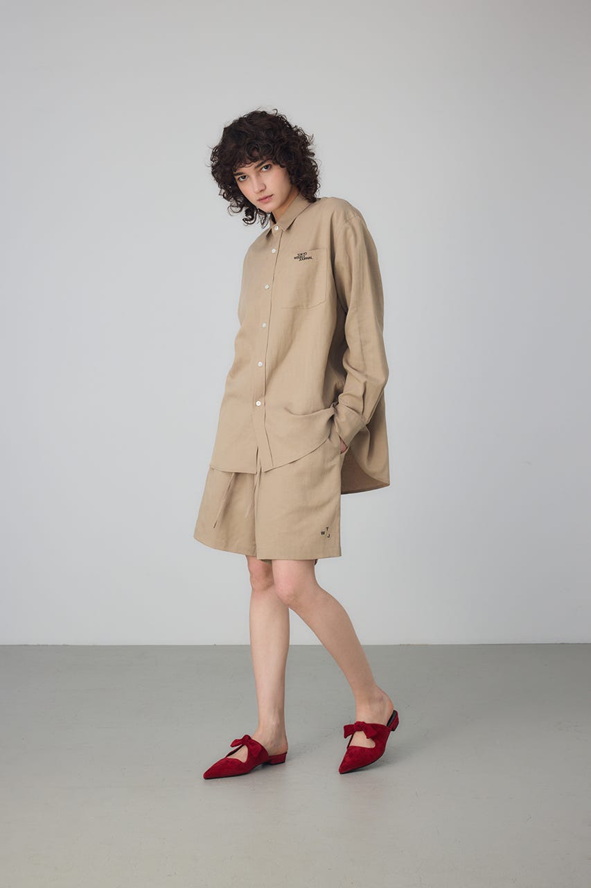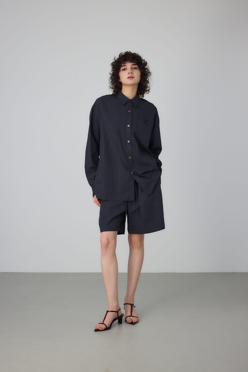 同シリーズのLinen Blend Twill Half Pantsとのセットアップコーデもおすすめ。