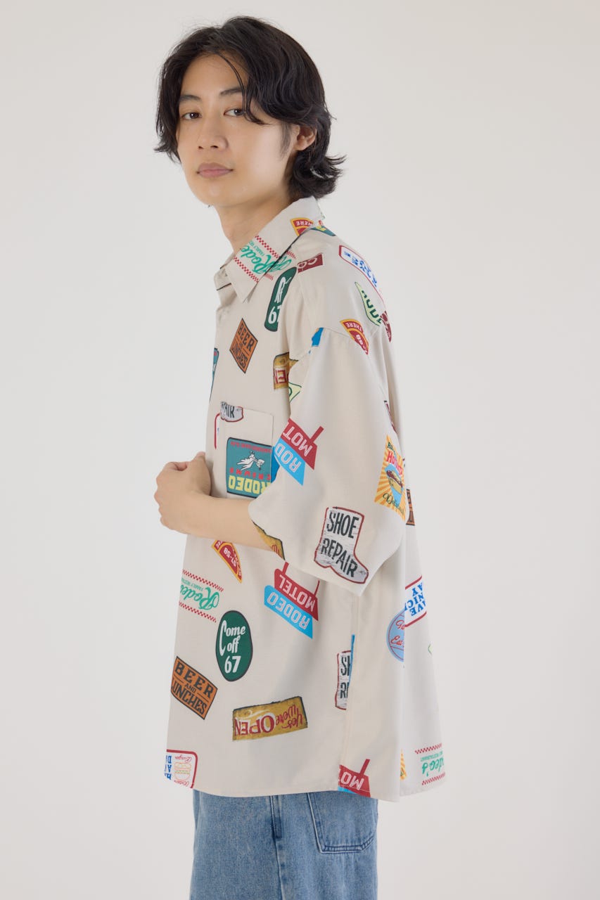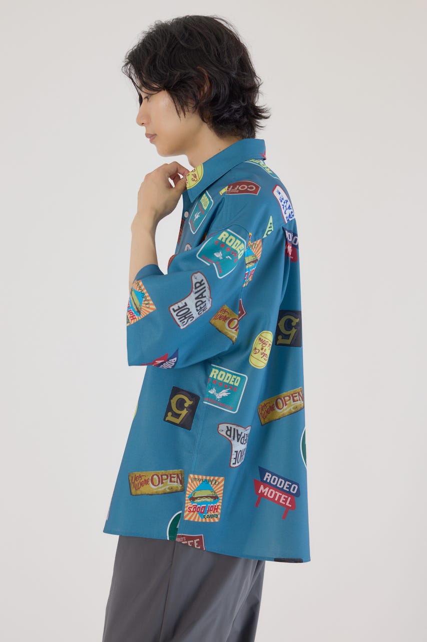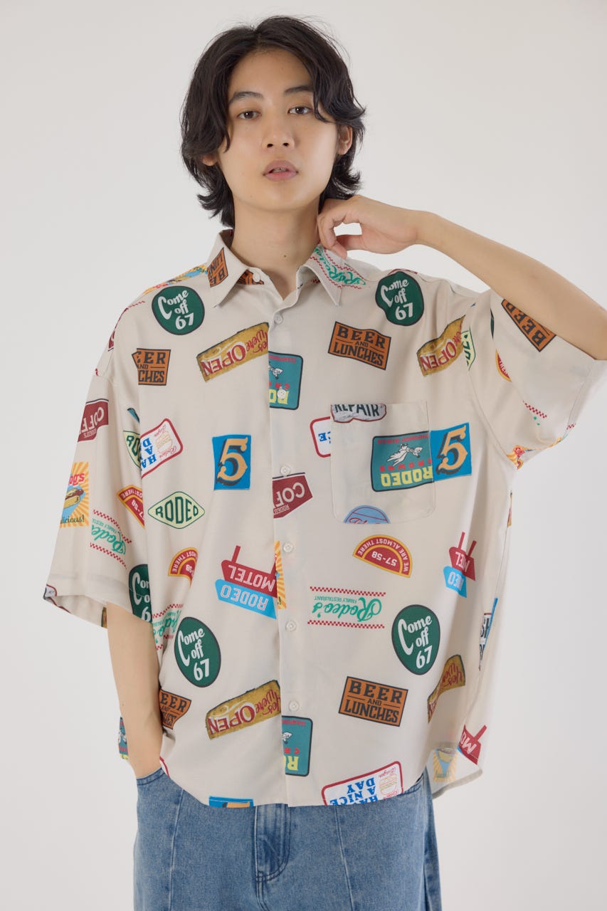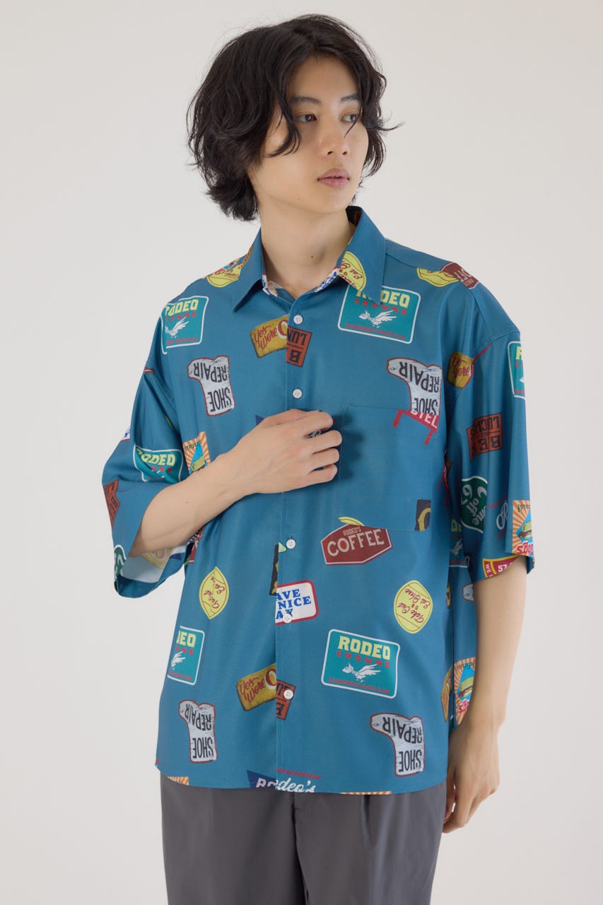 オリジナルのアメリカンビンテージ調全面プリントがポイントのレギュラーカラーシャツ。