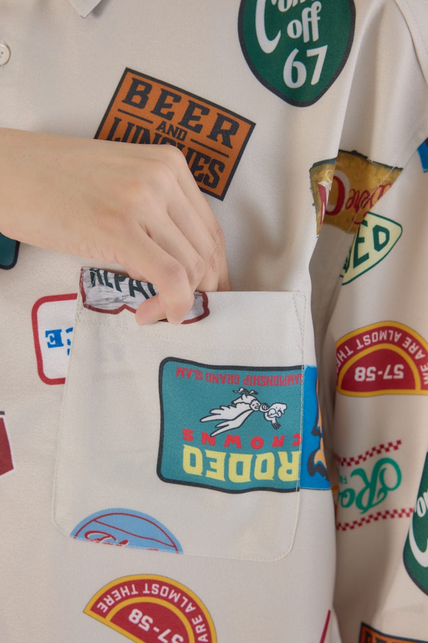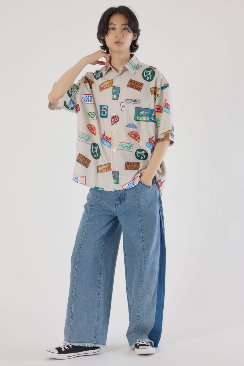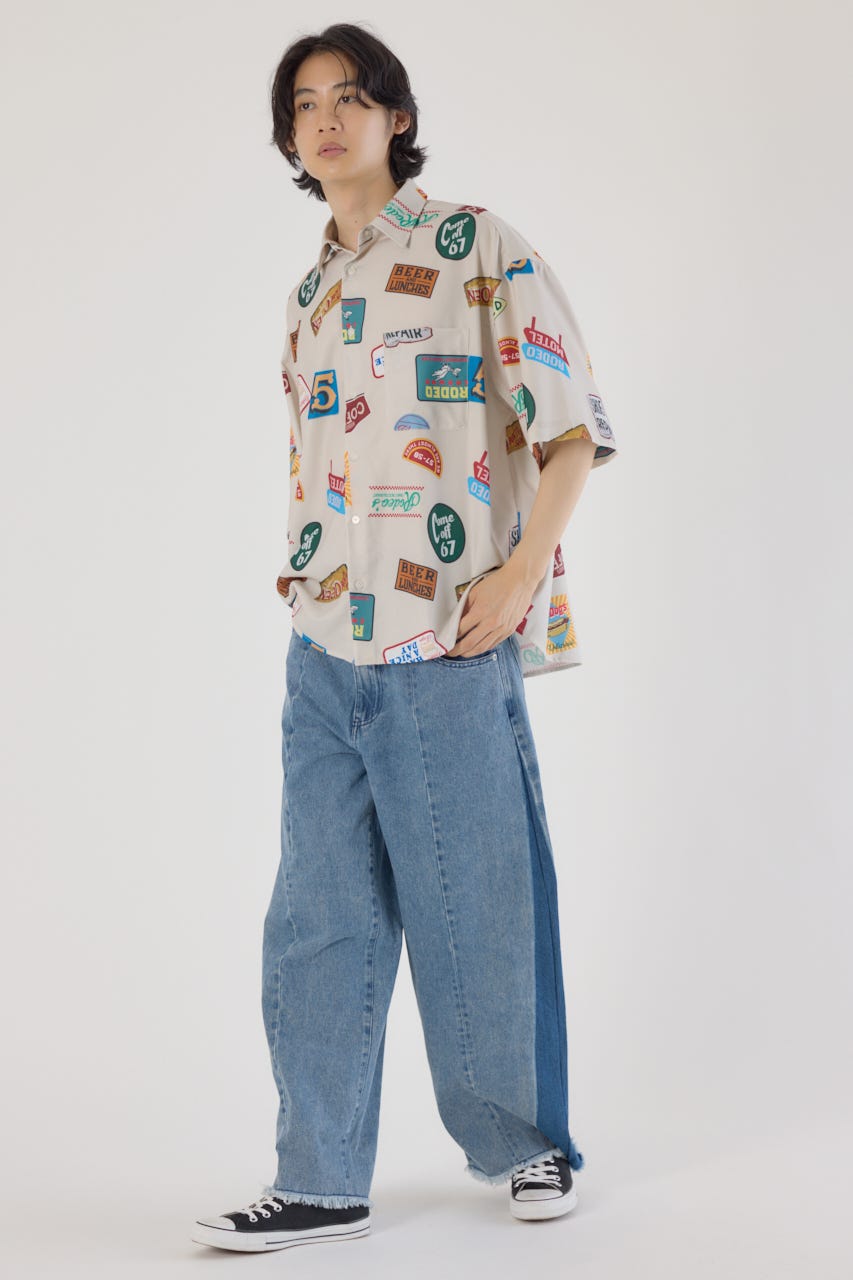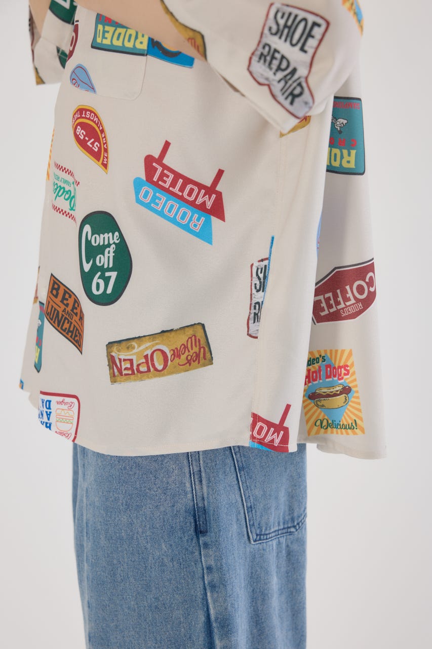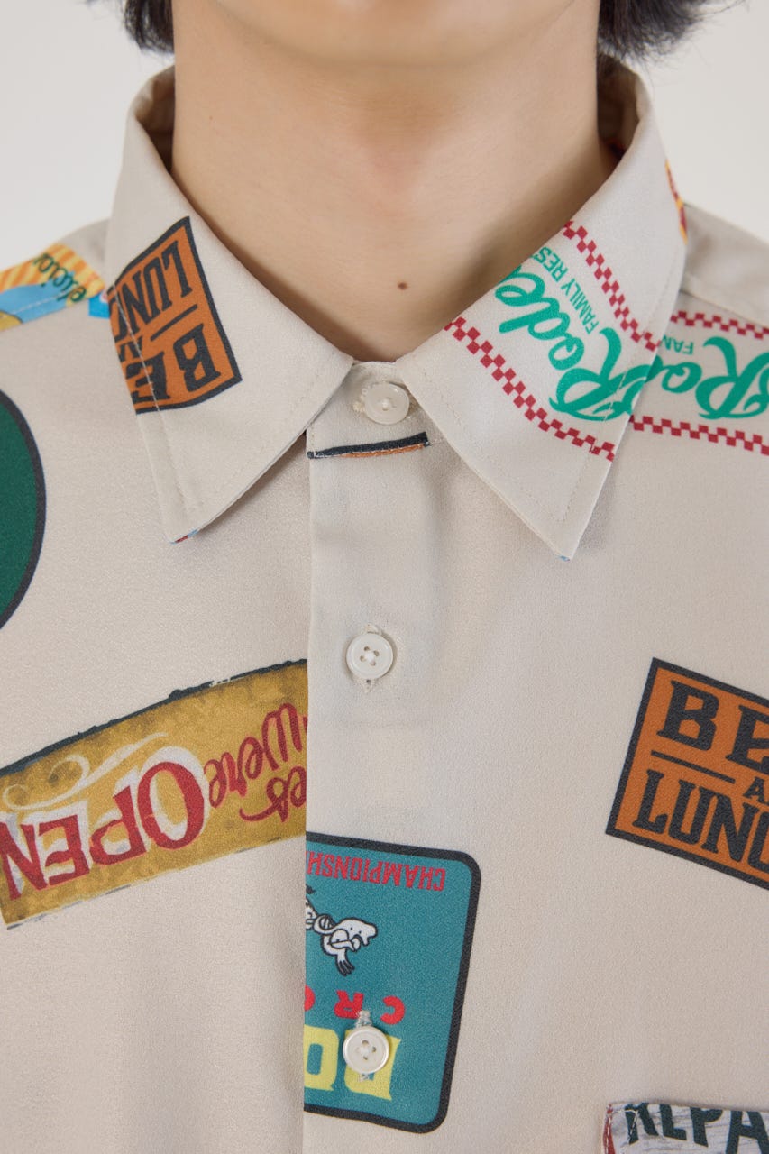 オリジナルのアメリカンビンテージ調全面プリントがポイントのレギュラーカラーシャツ。