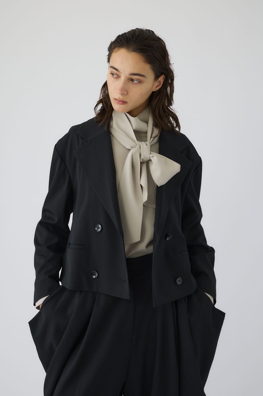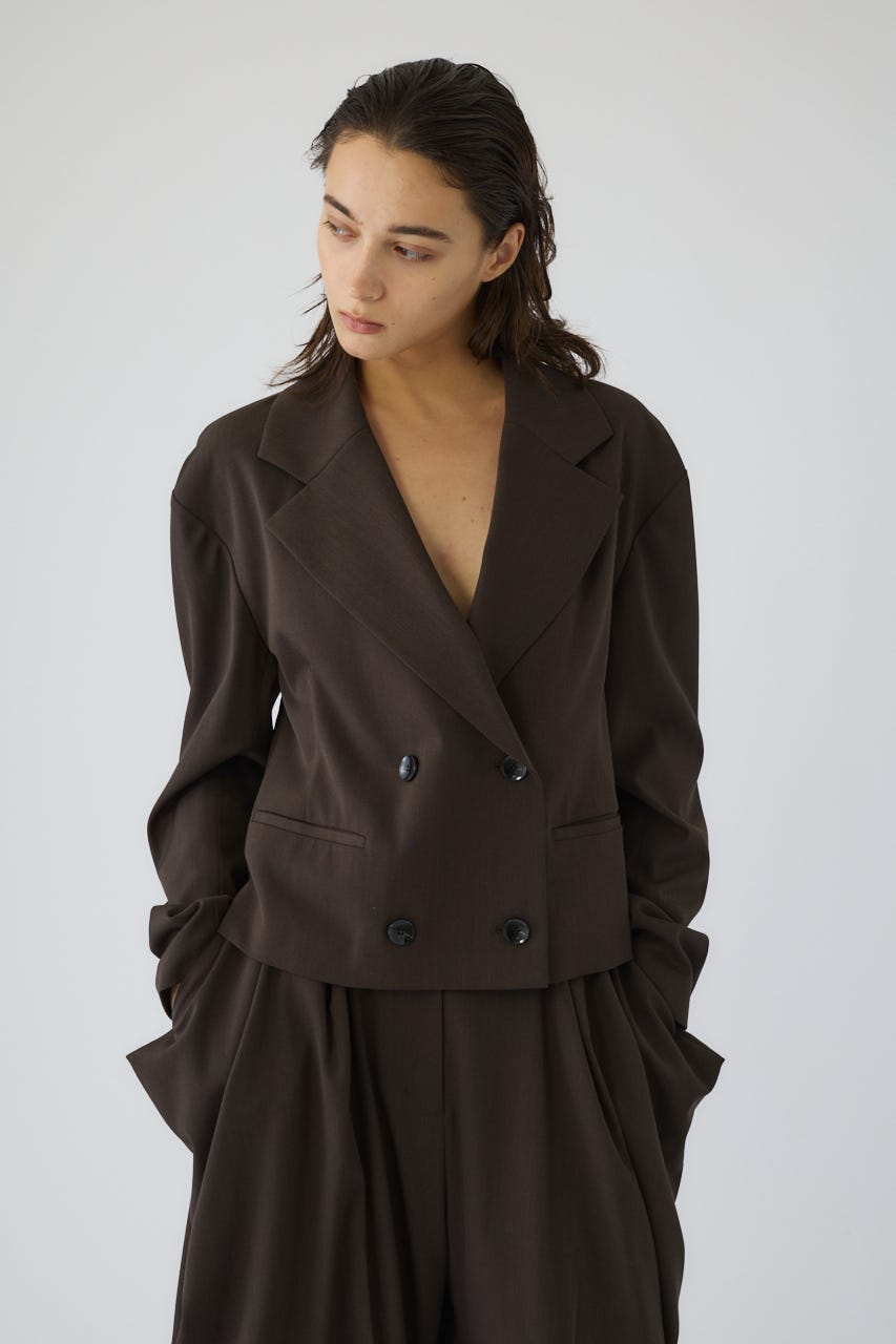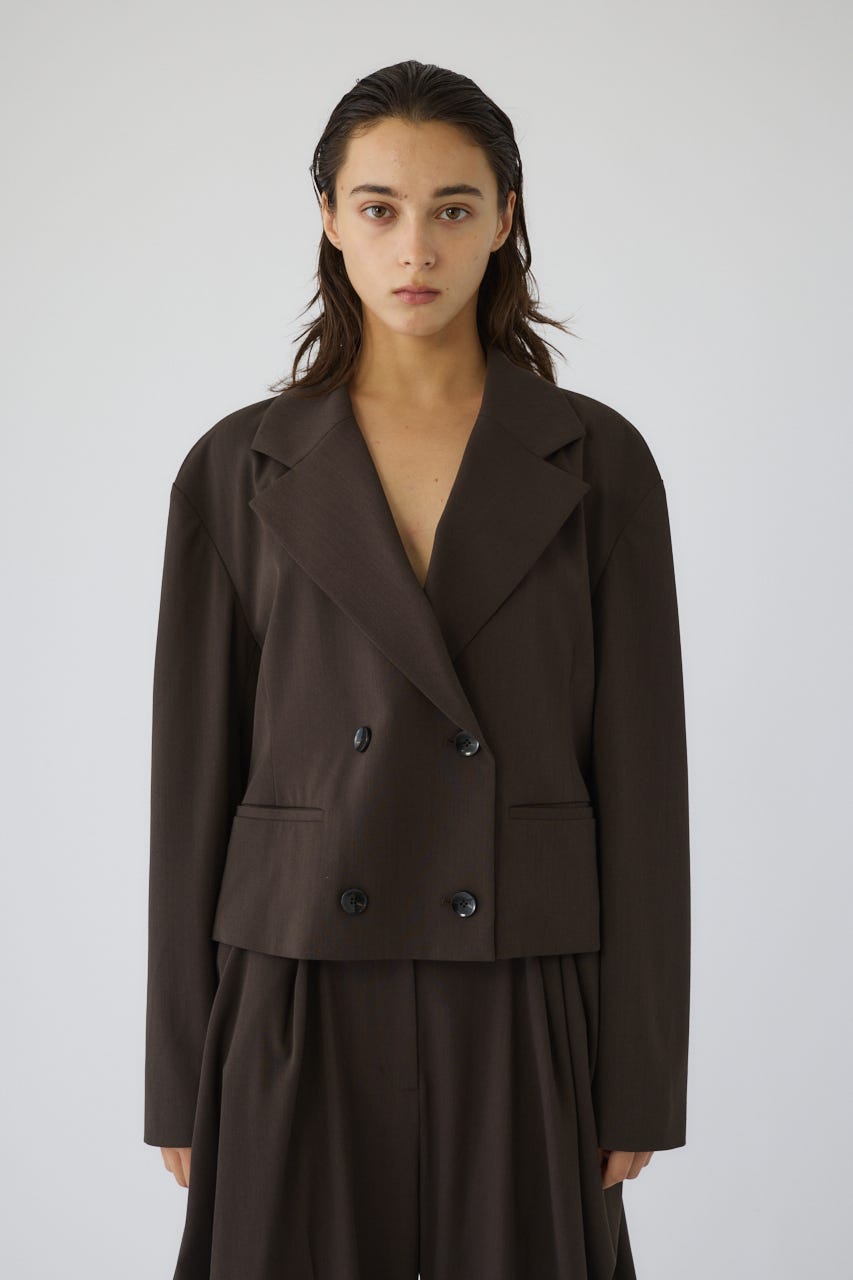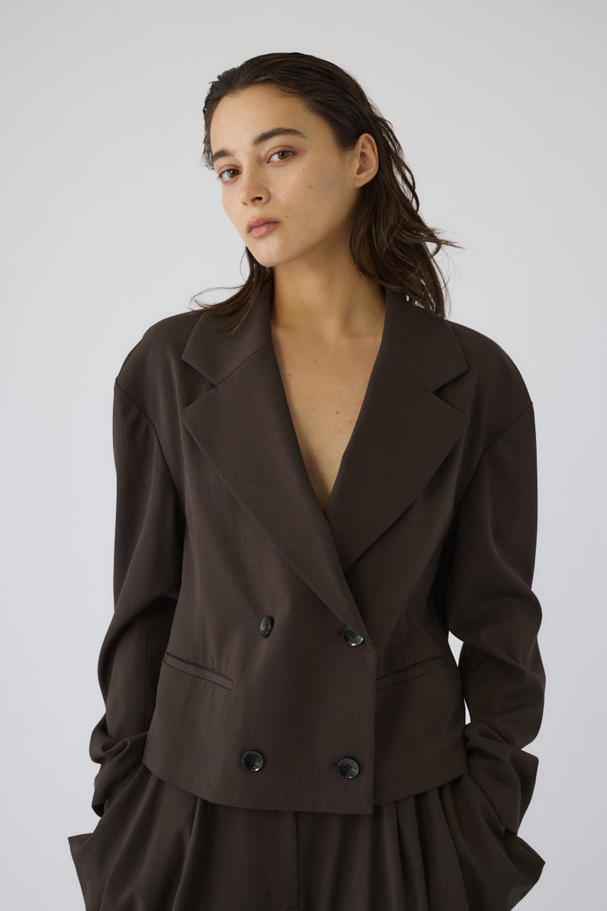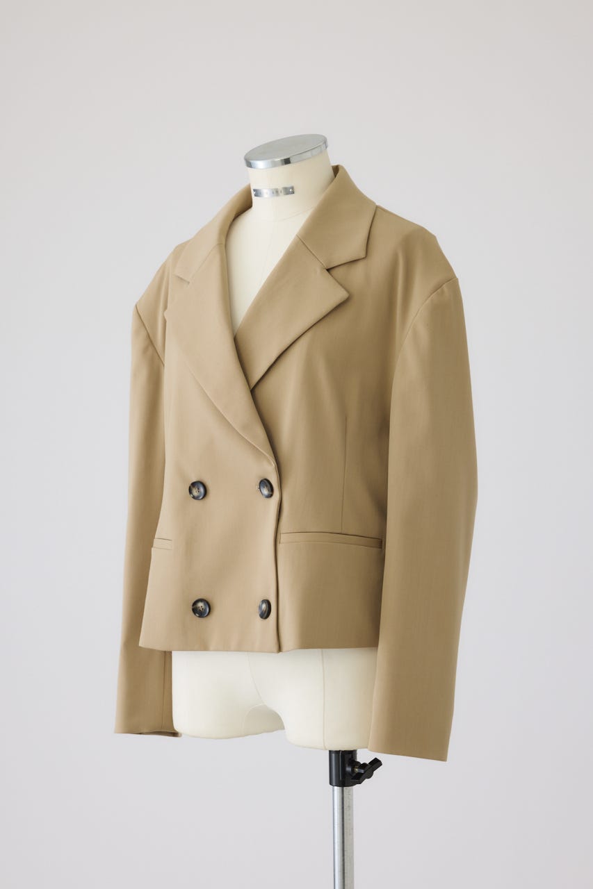 コンパクトな着丈バランスがジャケットのかっちり感を感じさせずこなれた印象でサラリと着て頂けるDouble breasted short JK。