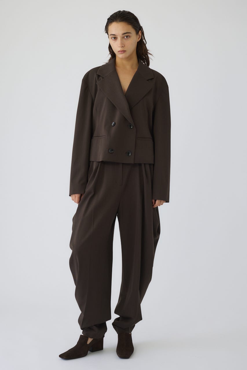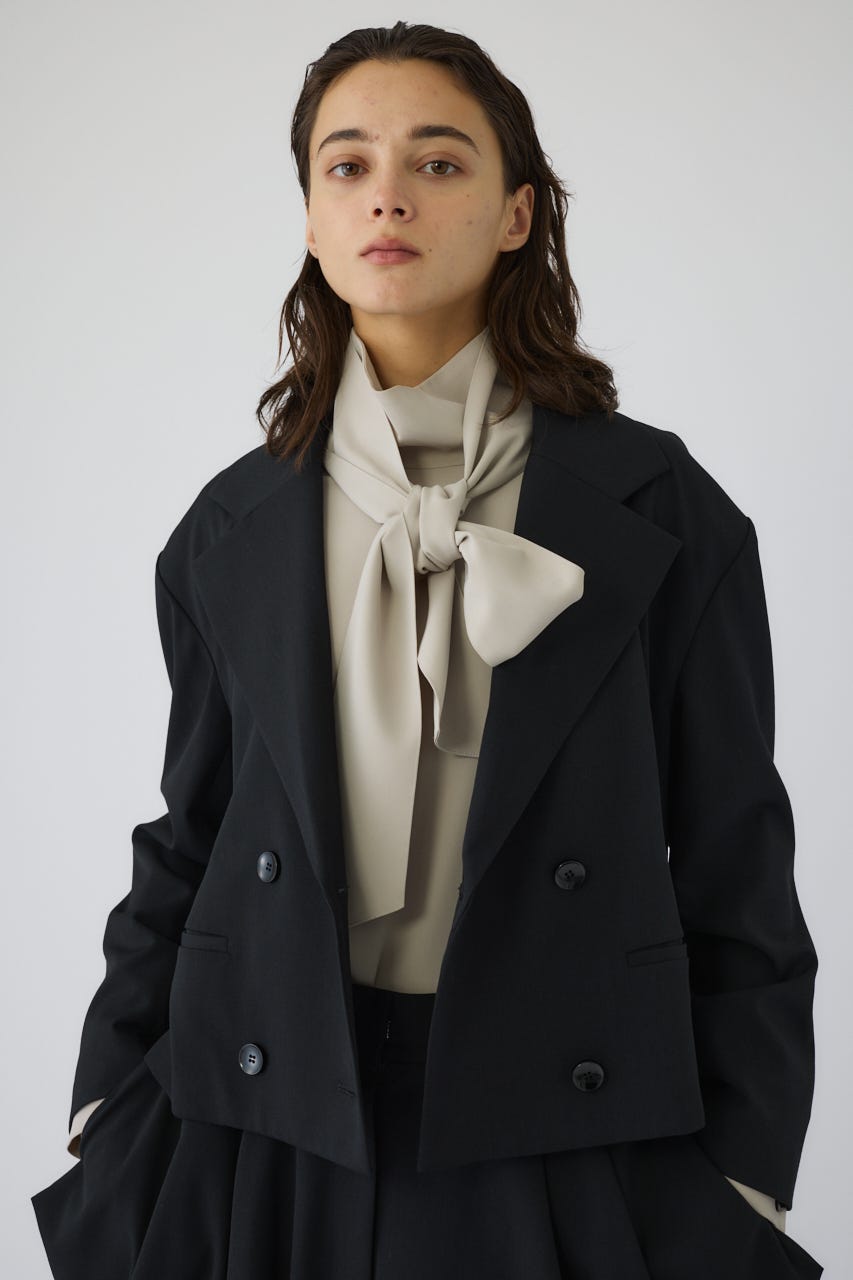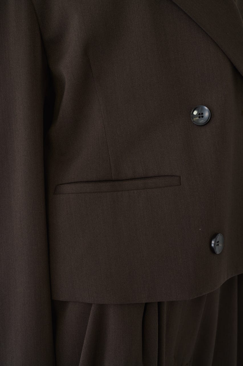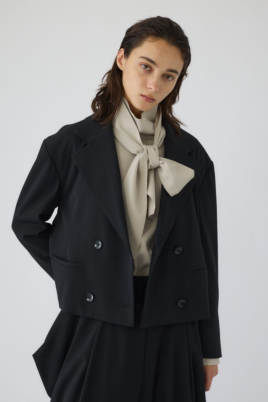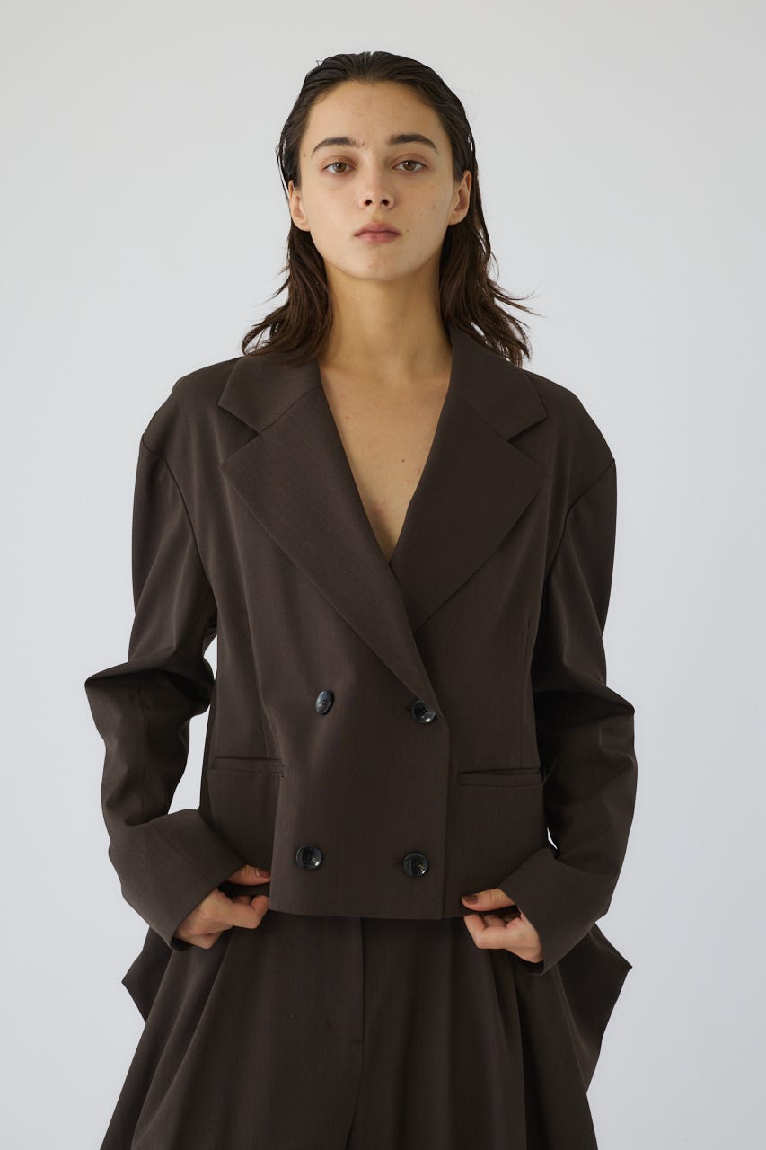 コンパクトな着丈バランスがジャケットのかっちり感を感じさせずこなれた印象でサラリと着て頂けるDouble breasted short JK。