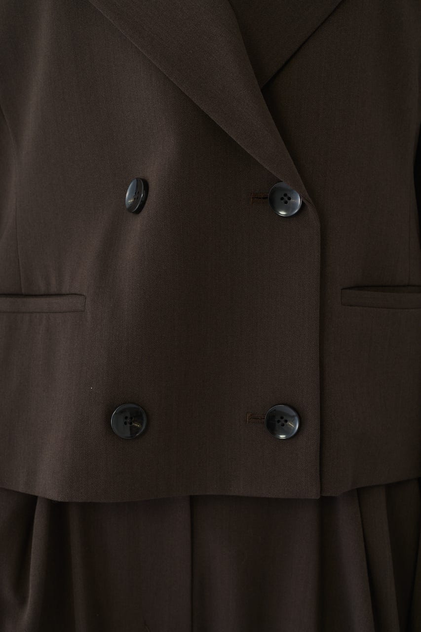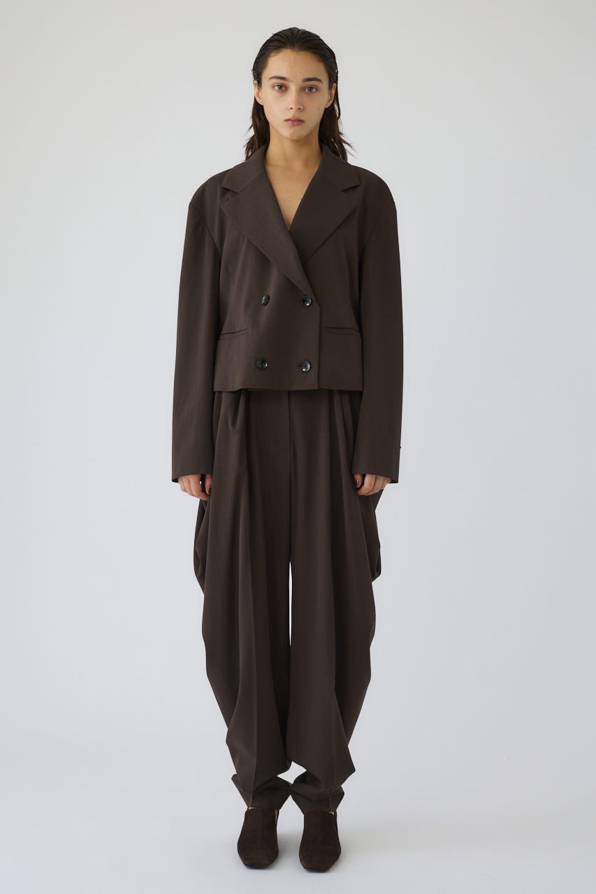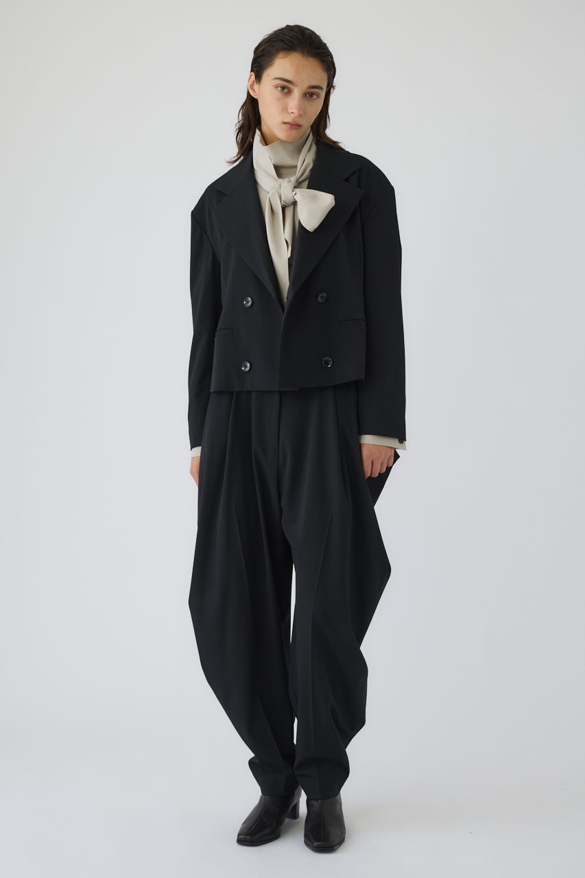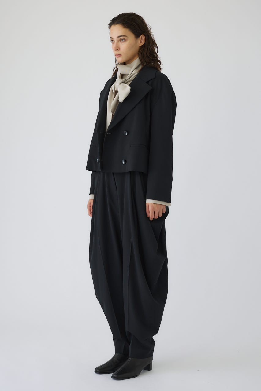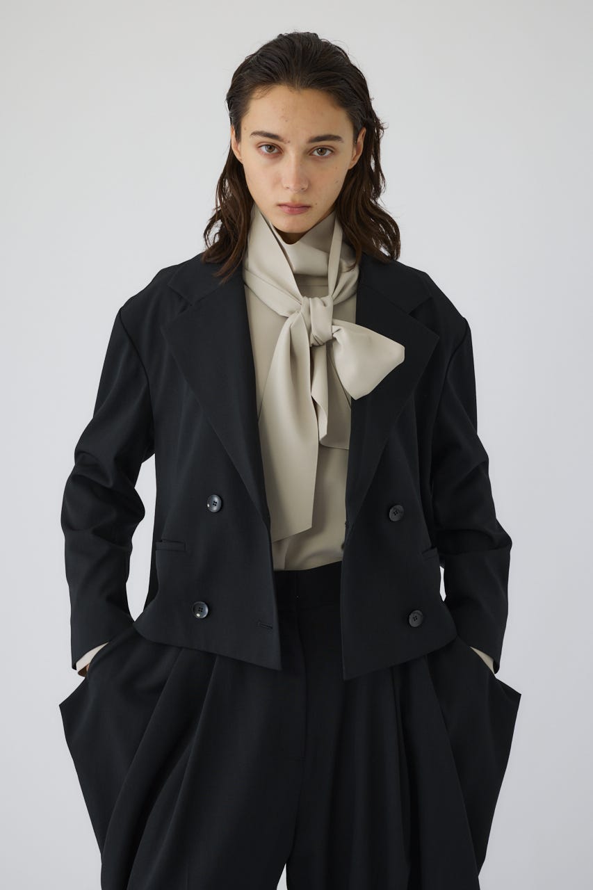 コンパクトな着丈バランスがジャケットのかっちり感を感じさせずこなれた印象でサラリと着て頂けるDouble breasted short JK。