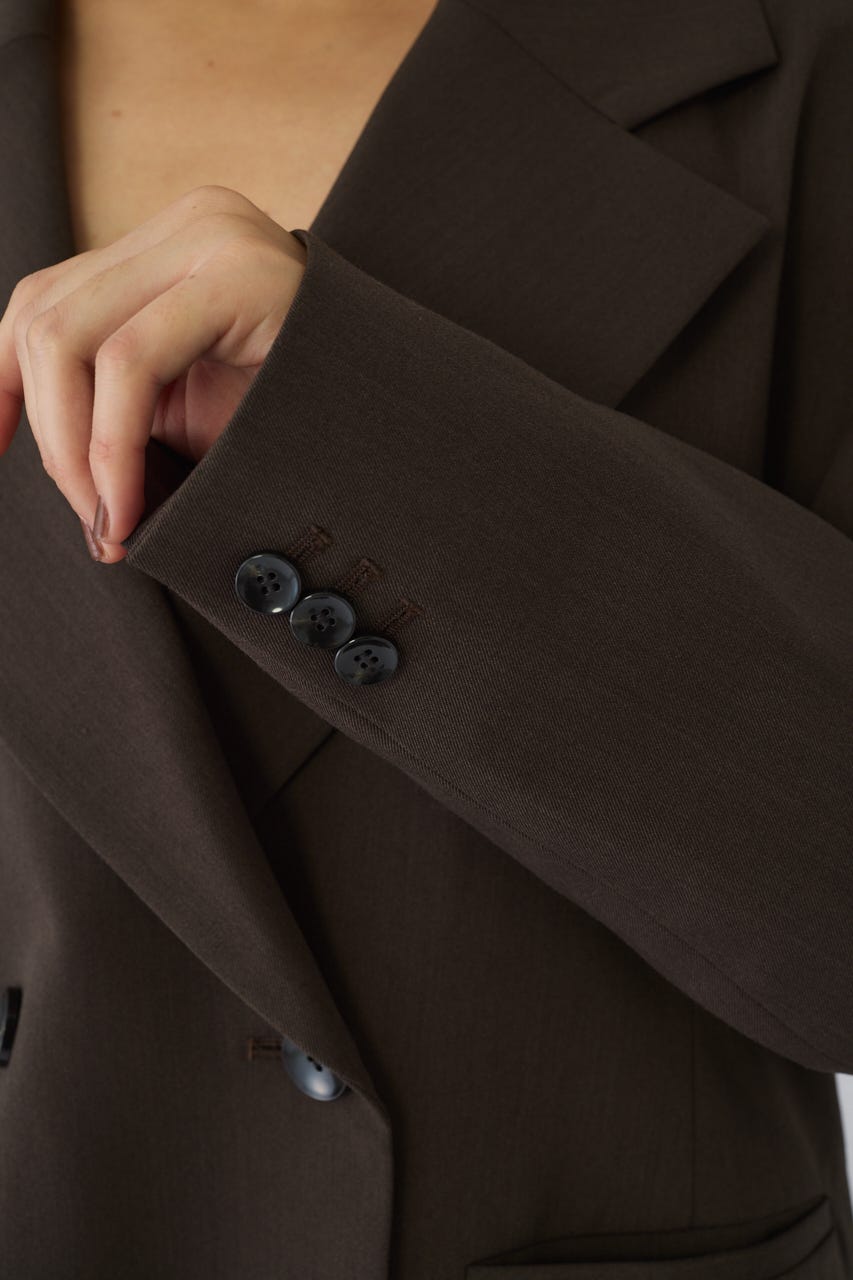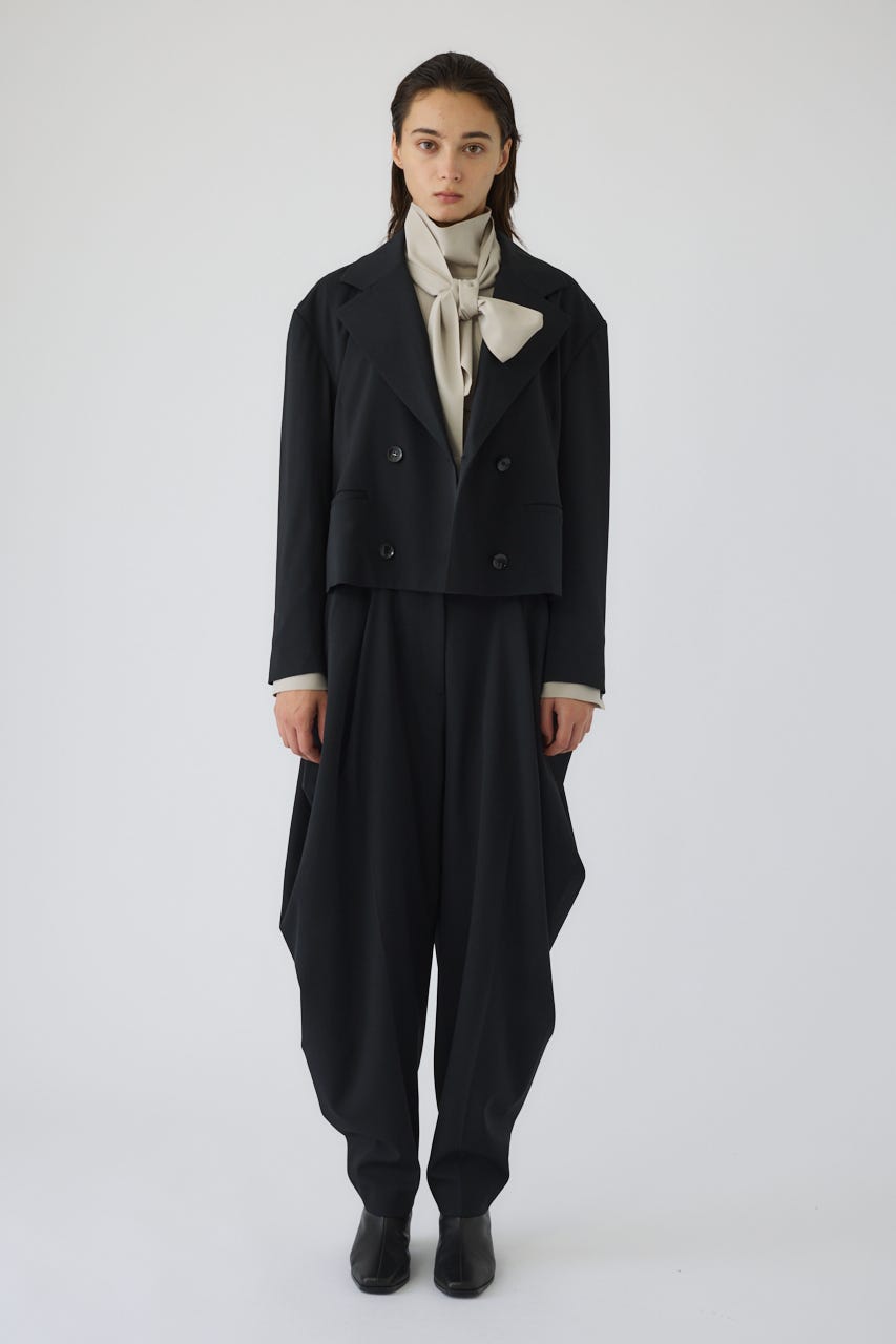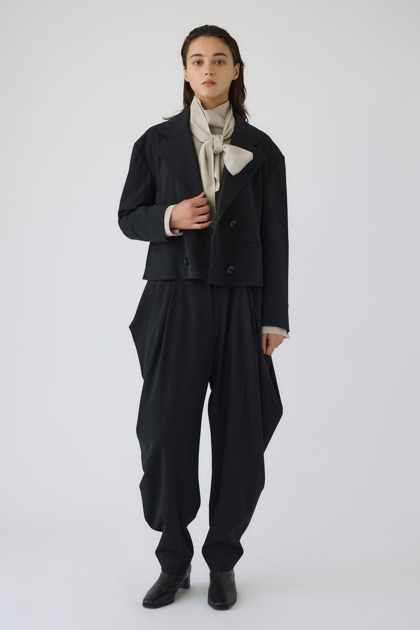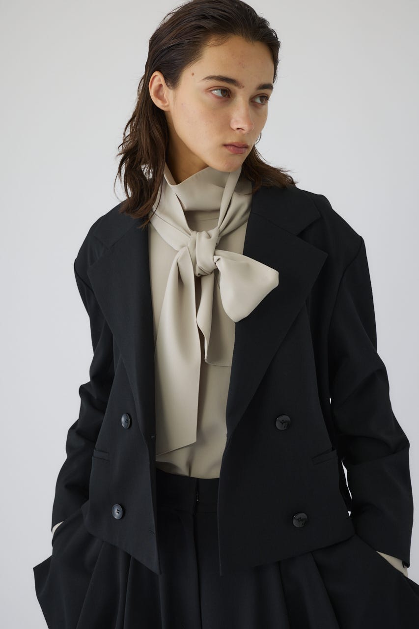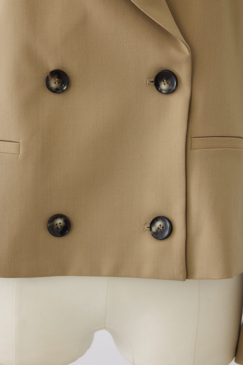 コンパクトな着丈バランスがジャケットのかっちり感を感じさせずこなれた印象でサラリと着て頂けるDouble breasted short JK。