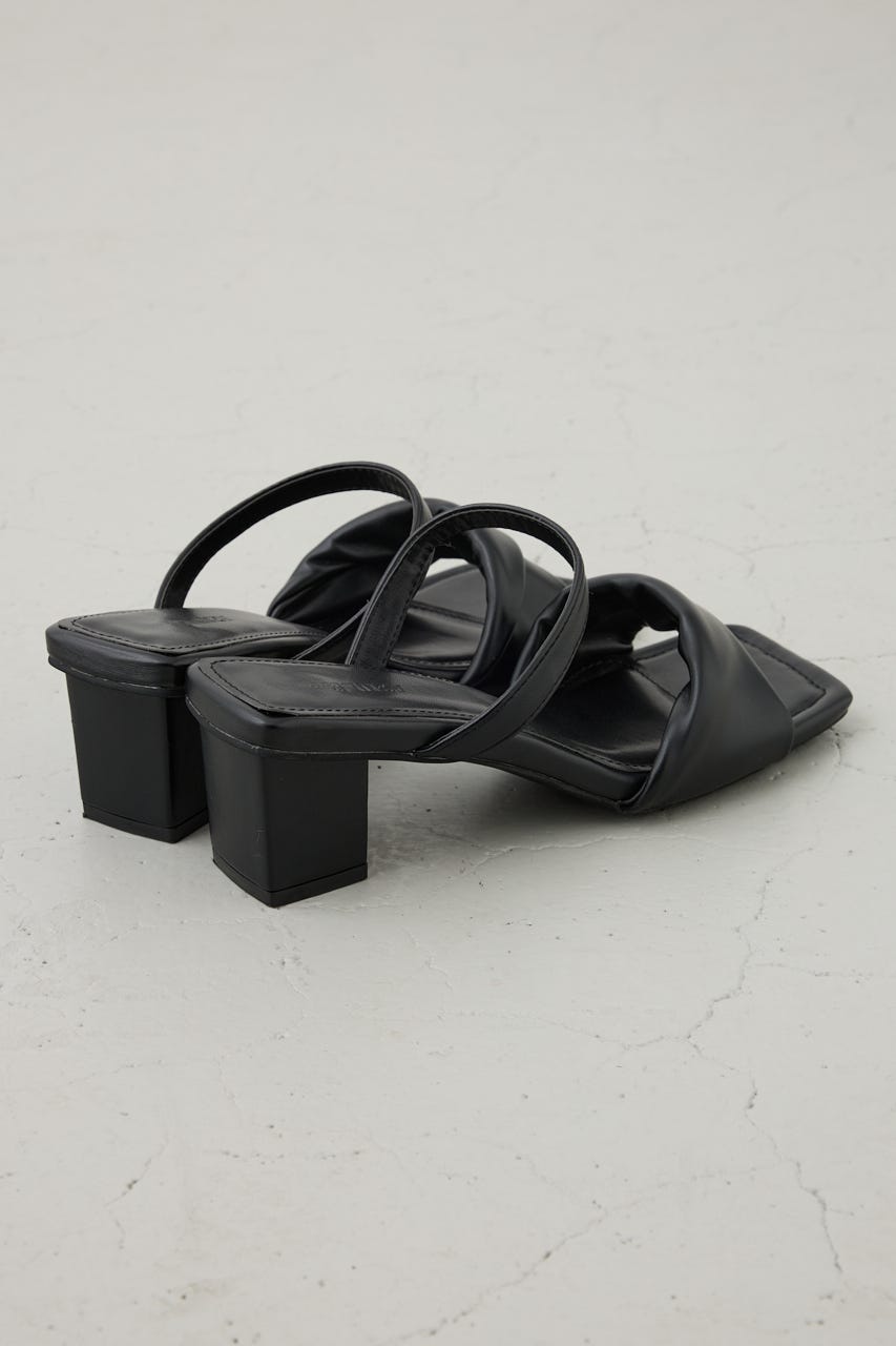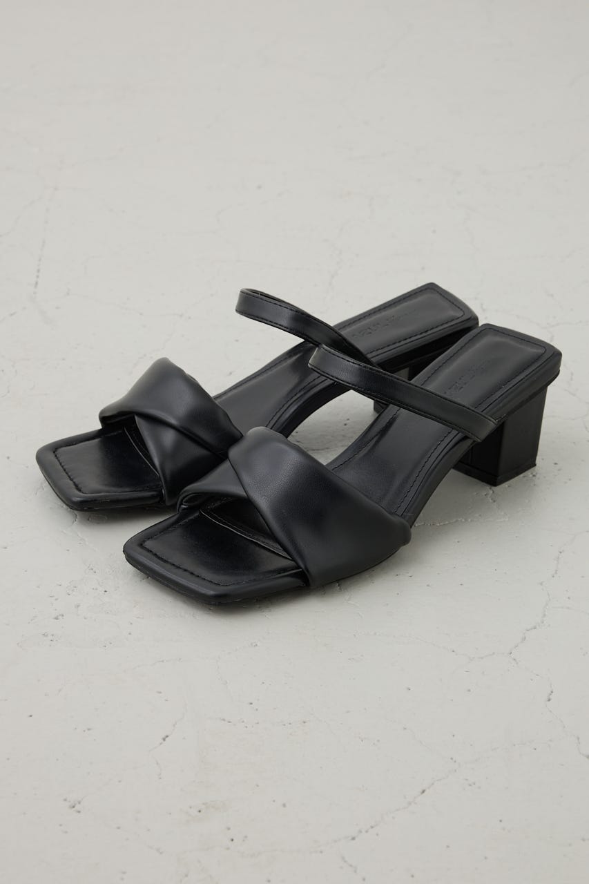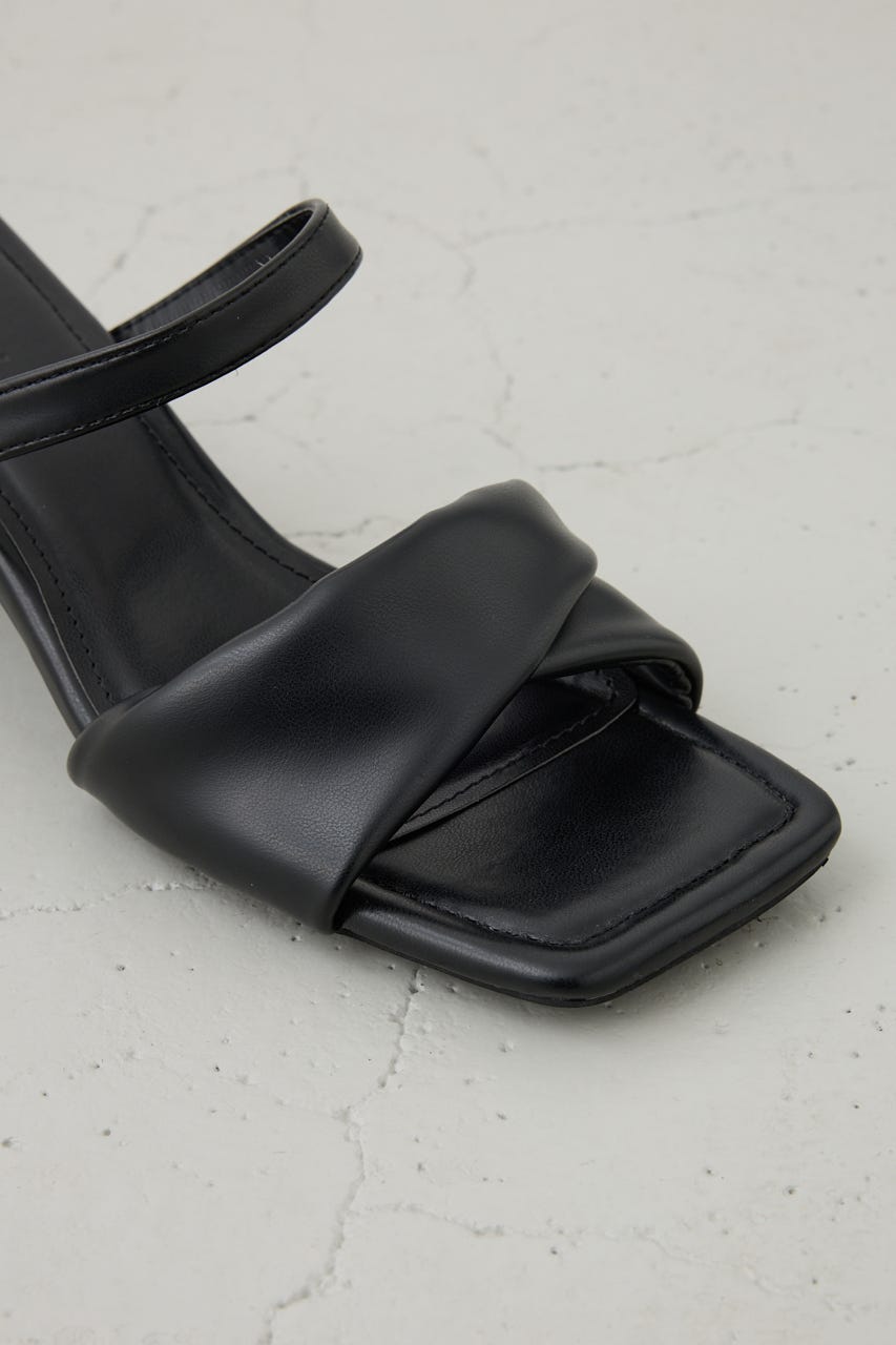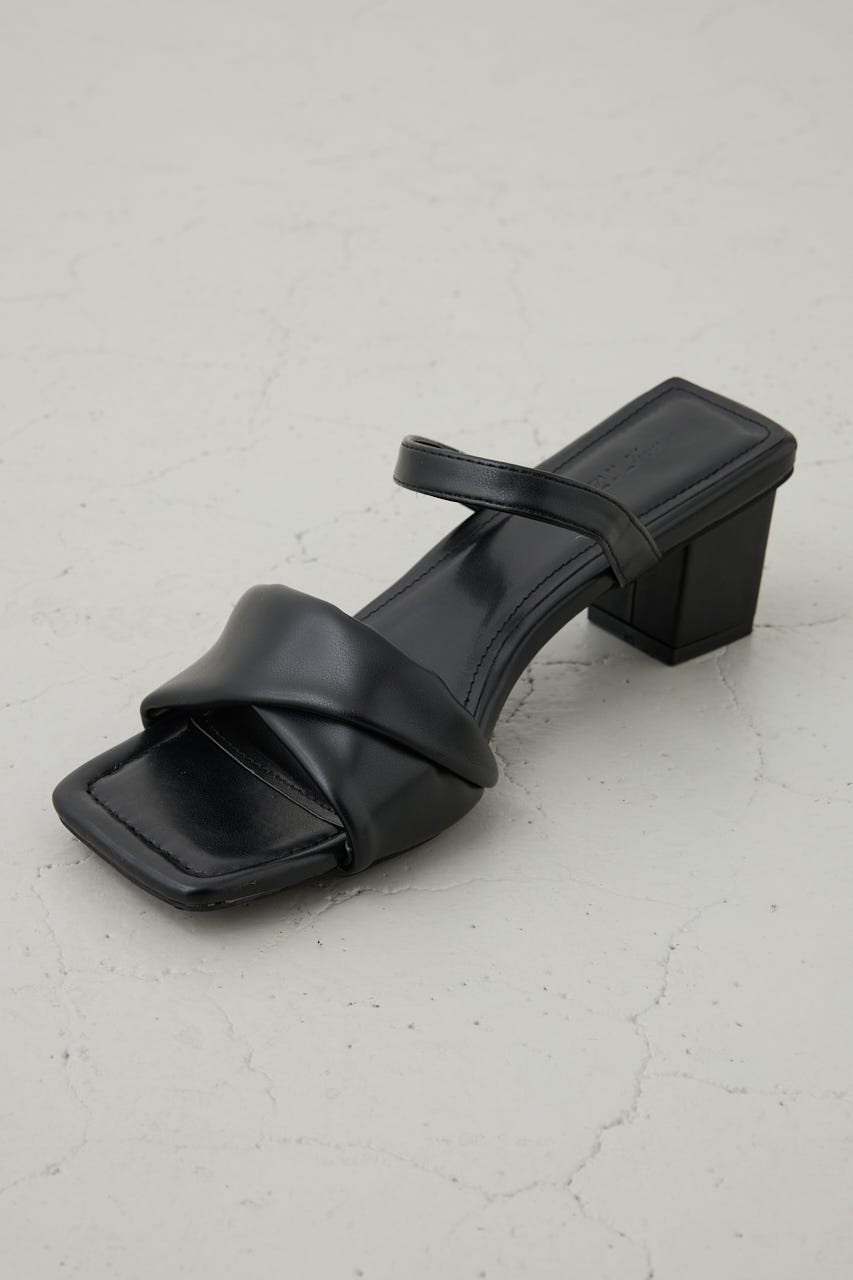 合成皮革のツイストベルトが上品な存在感を放つ、女性らしさを引き立てるヒールサンダル。