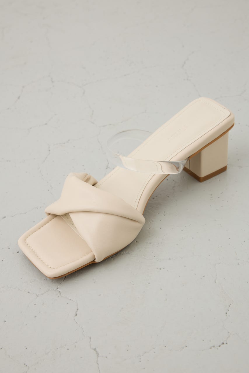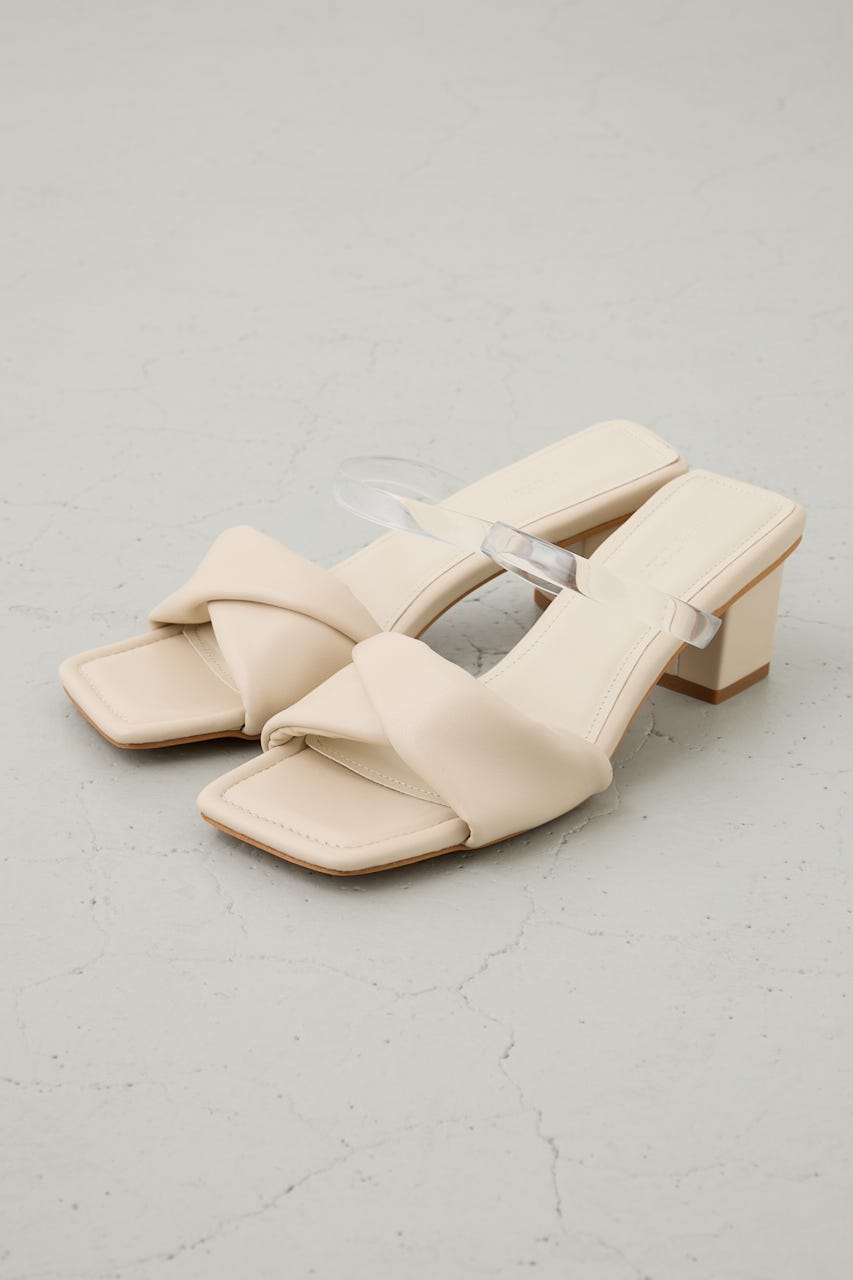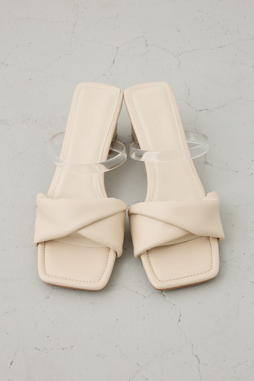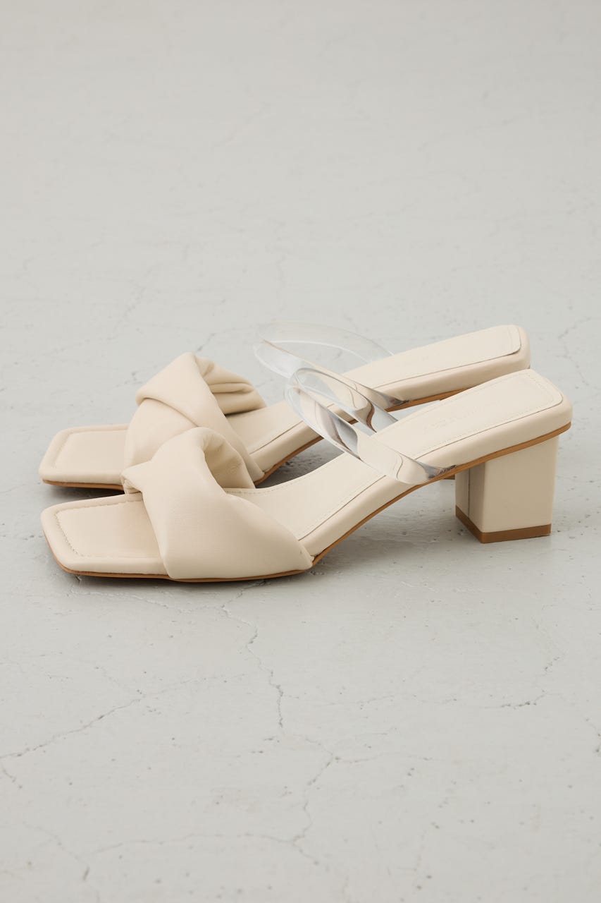 合成皮革のツイストベルトが上品な存在感を放つ、女性らしさを引き立てるヒールサンダル。