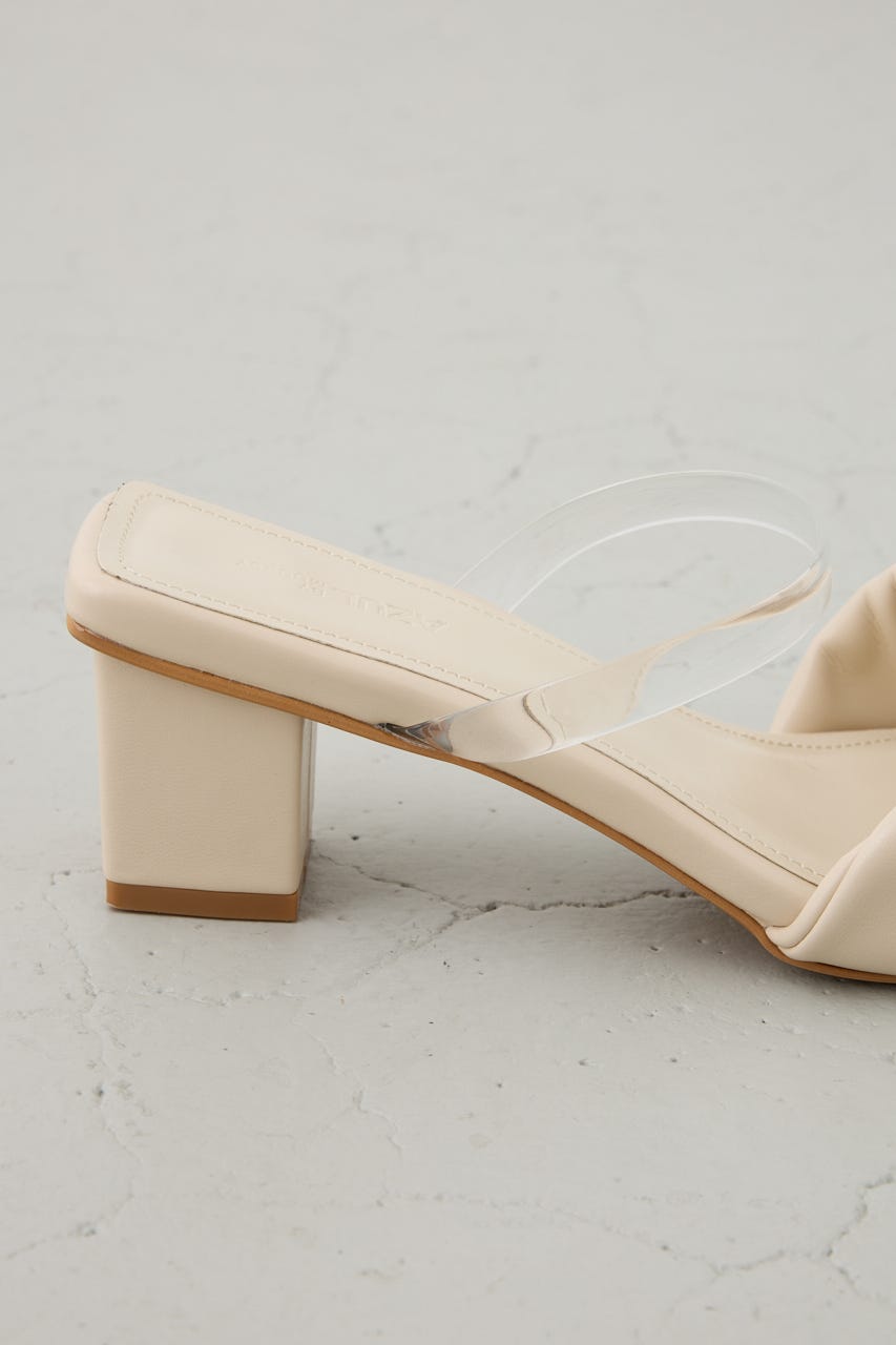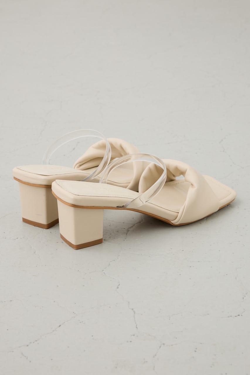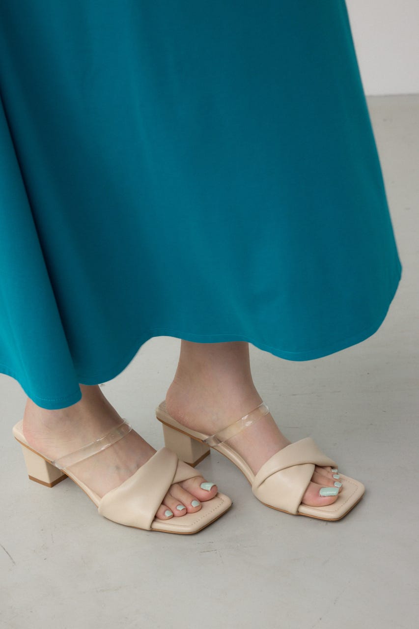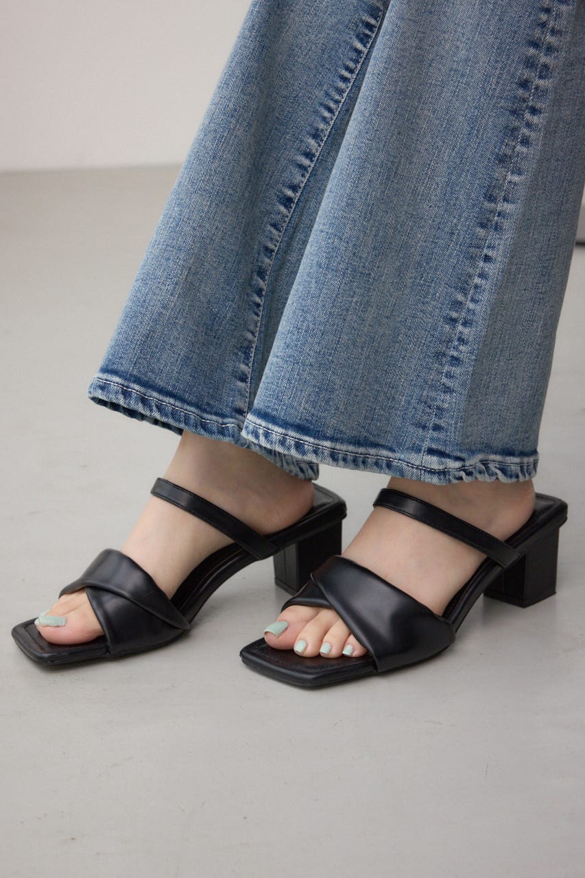 合成皮革のツイストベルトが上品な存在感を放つ、女性らしさを引き立てるヒールサンダル。
