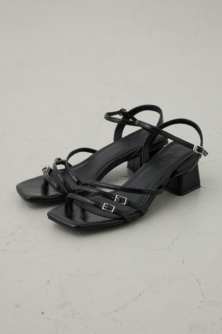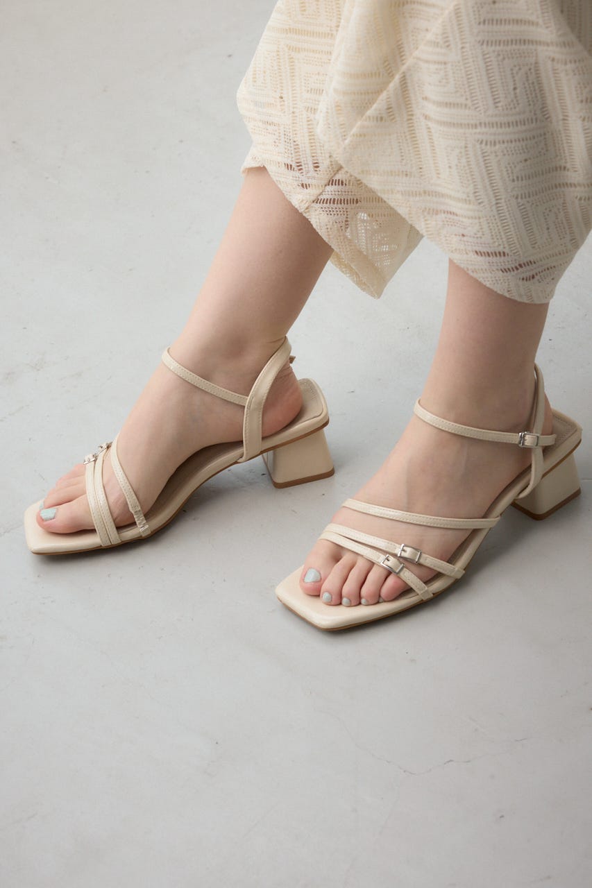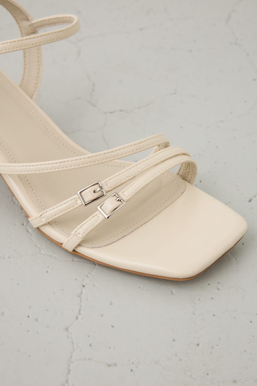トレンド感のあるバックル×華奢なナローストラップが、足元に抜け感と上品さをプラスするヒールサンダル。