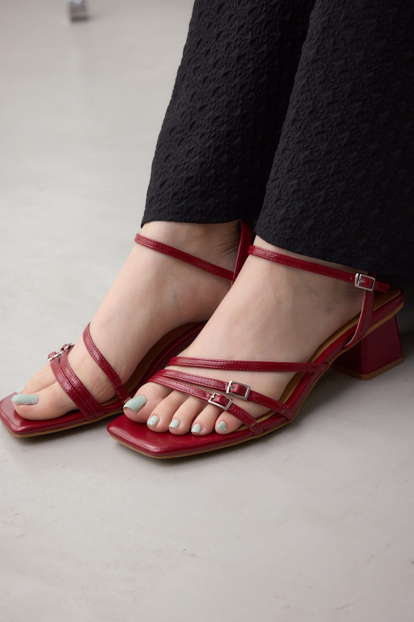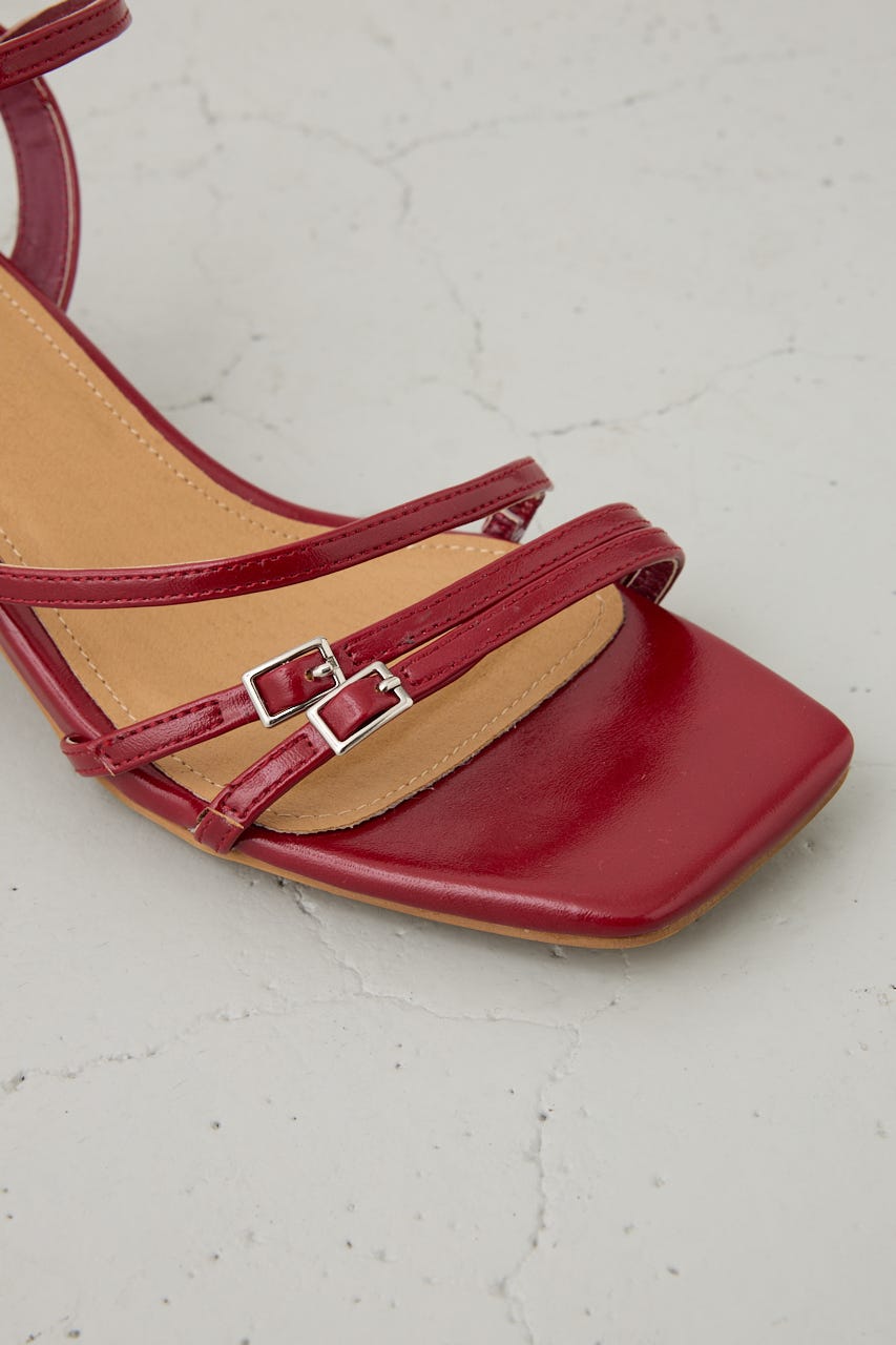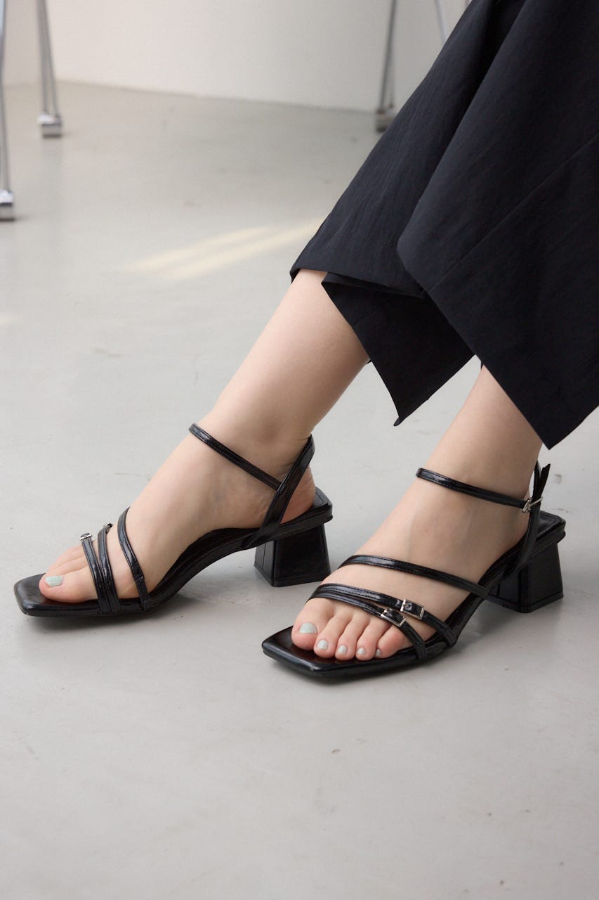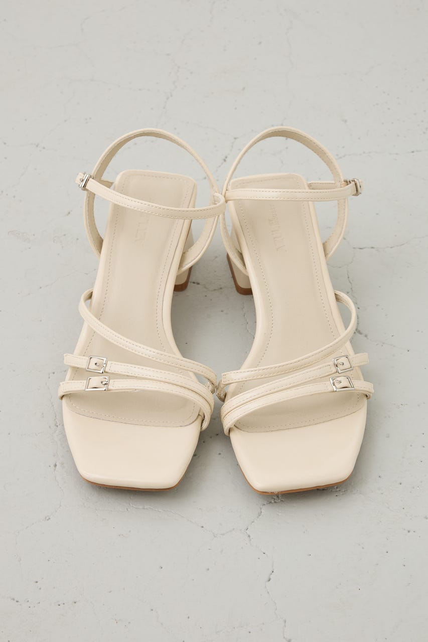 トレンド感のあるバックル×華奢なナローストラップが、足元に抜け感と上品さをプラスするヒールサンダル。