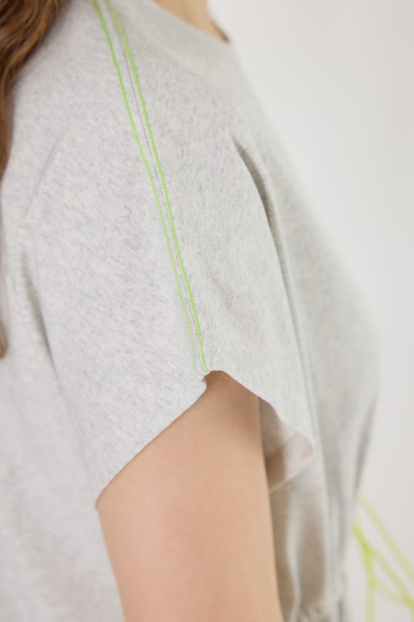 フレンチスリーブなので、大きめシャツをロールアップさせてラフに羽織るとこなれ感が上がります。