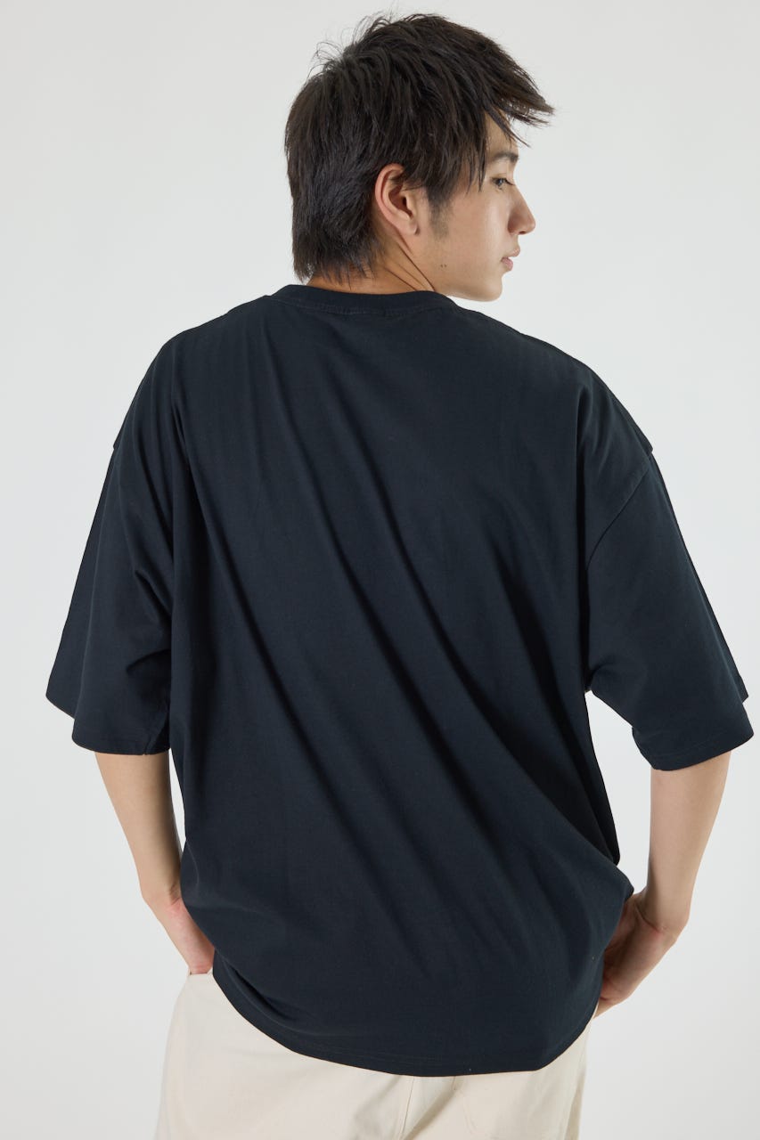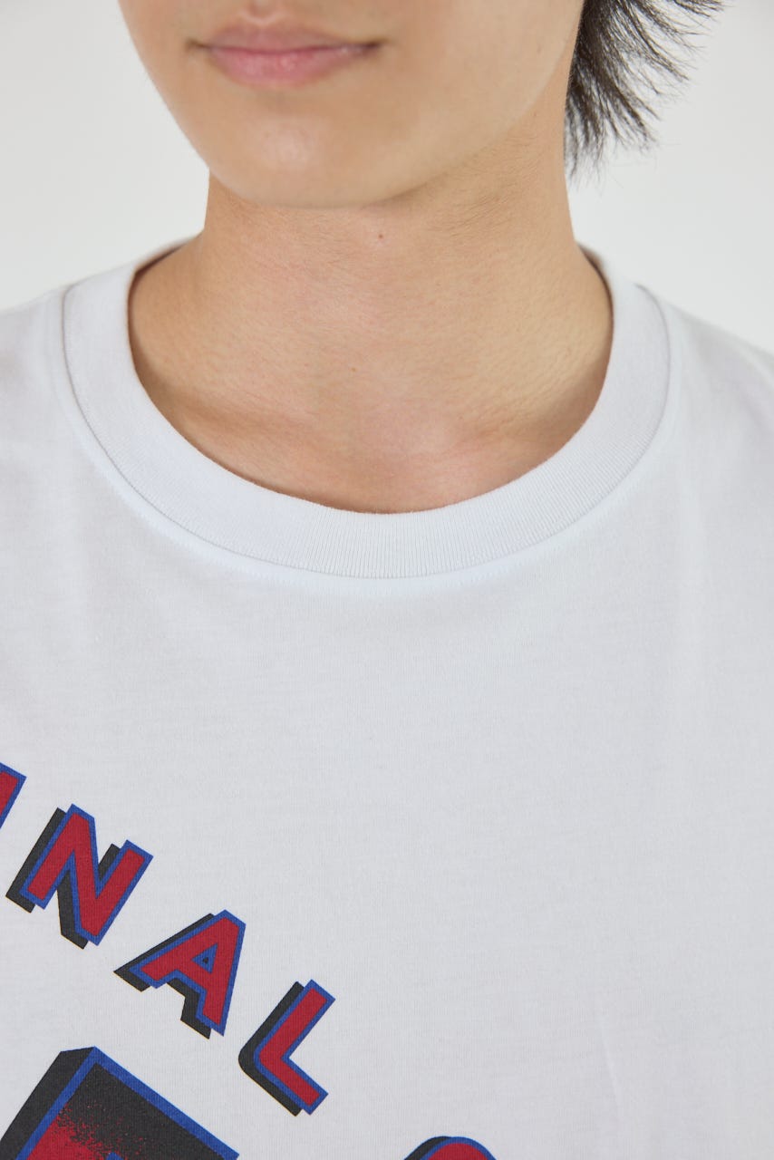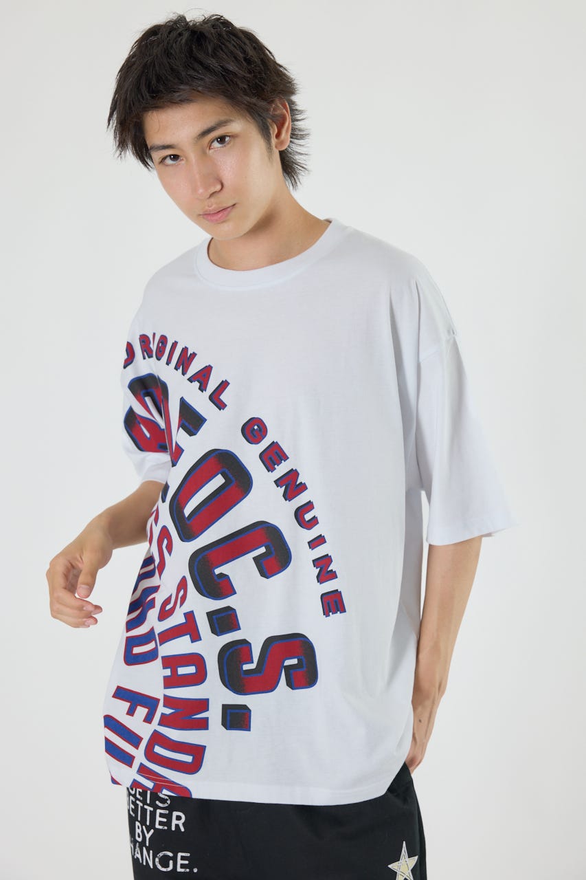袖からフロントにかけて大胆な構図のロゴグラフィックがポイントのTシャツ。