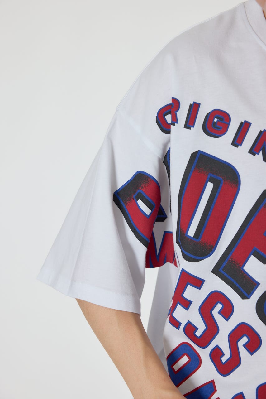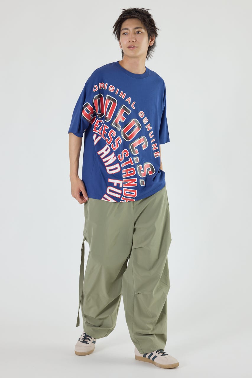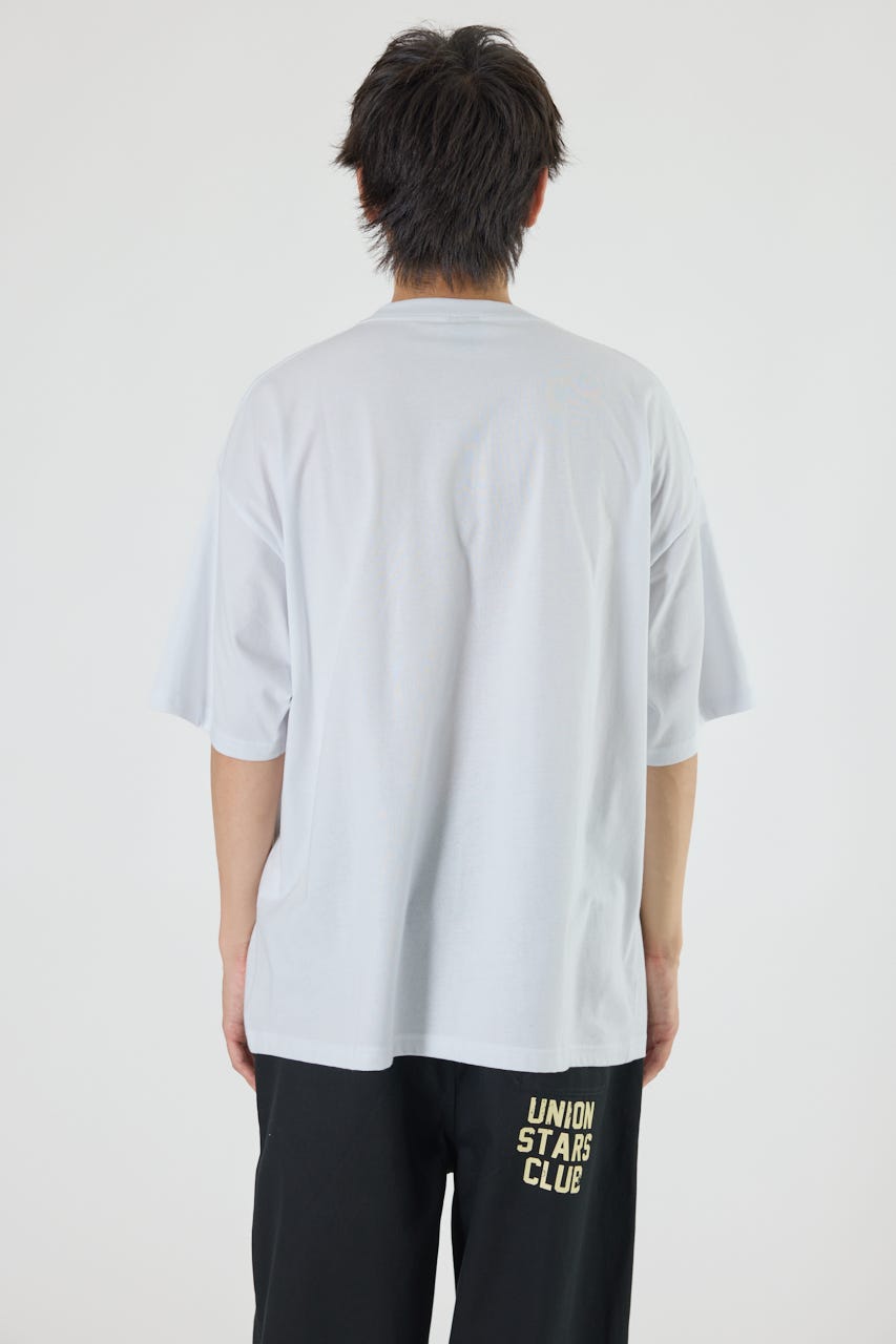 袖からフロントにかけて大胆な構図のロゴグラフィックがポイントのTシャツ。