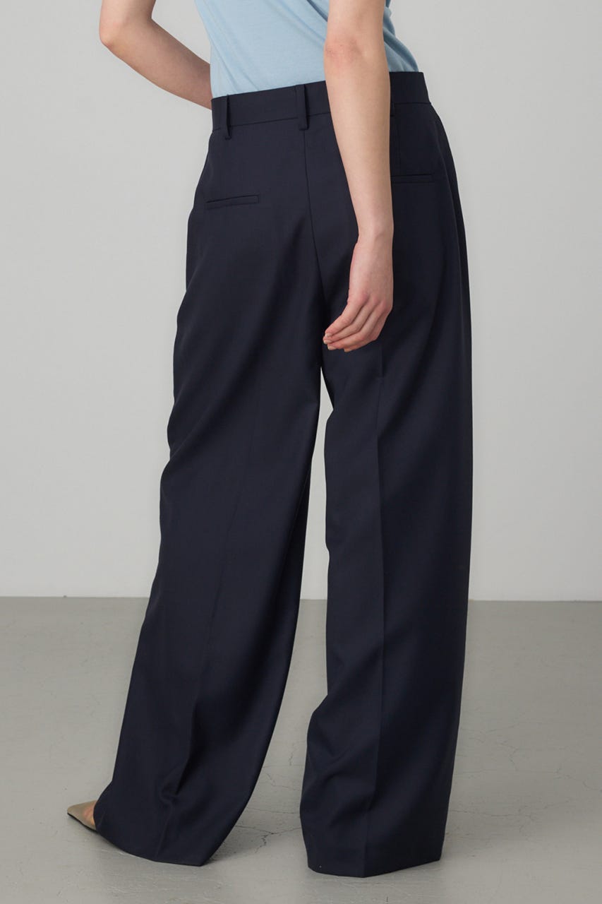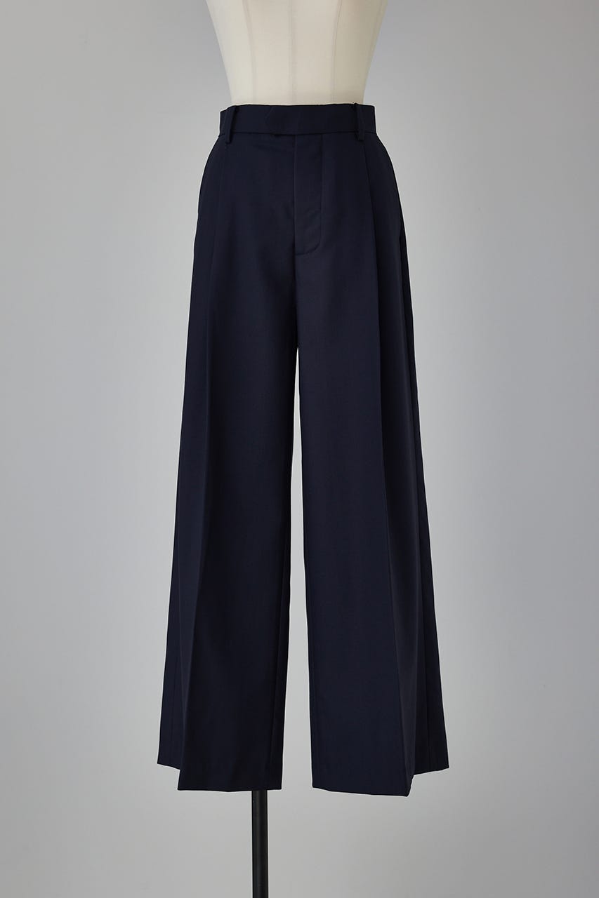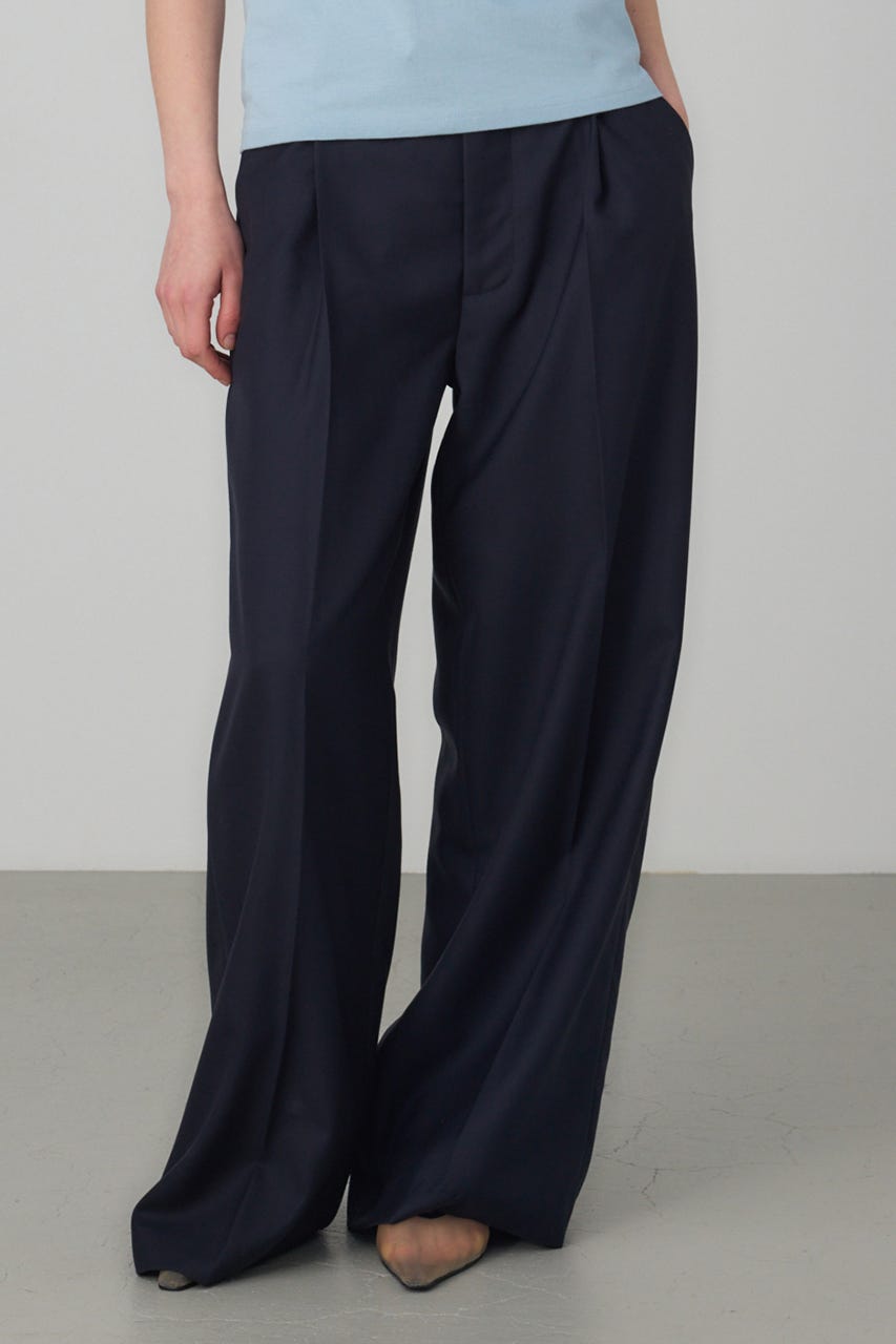 ルーズなシルエットでスタイリングが一枚で決まるタックワイドパンツ。