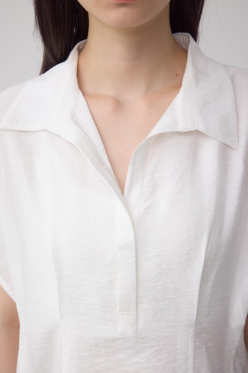 程よい開きのスキッパーデザインがすっきりとした印象に。