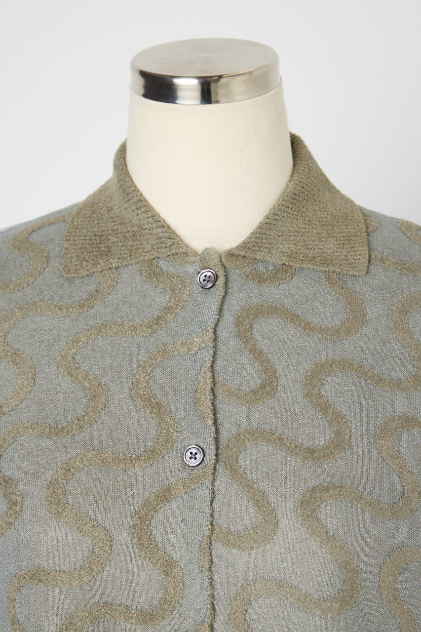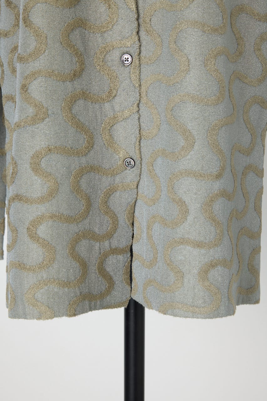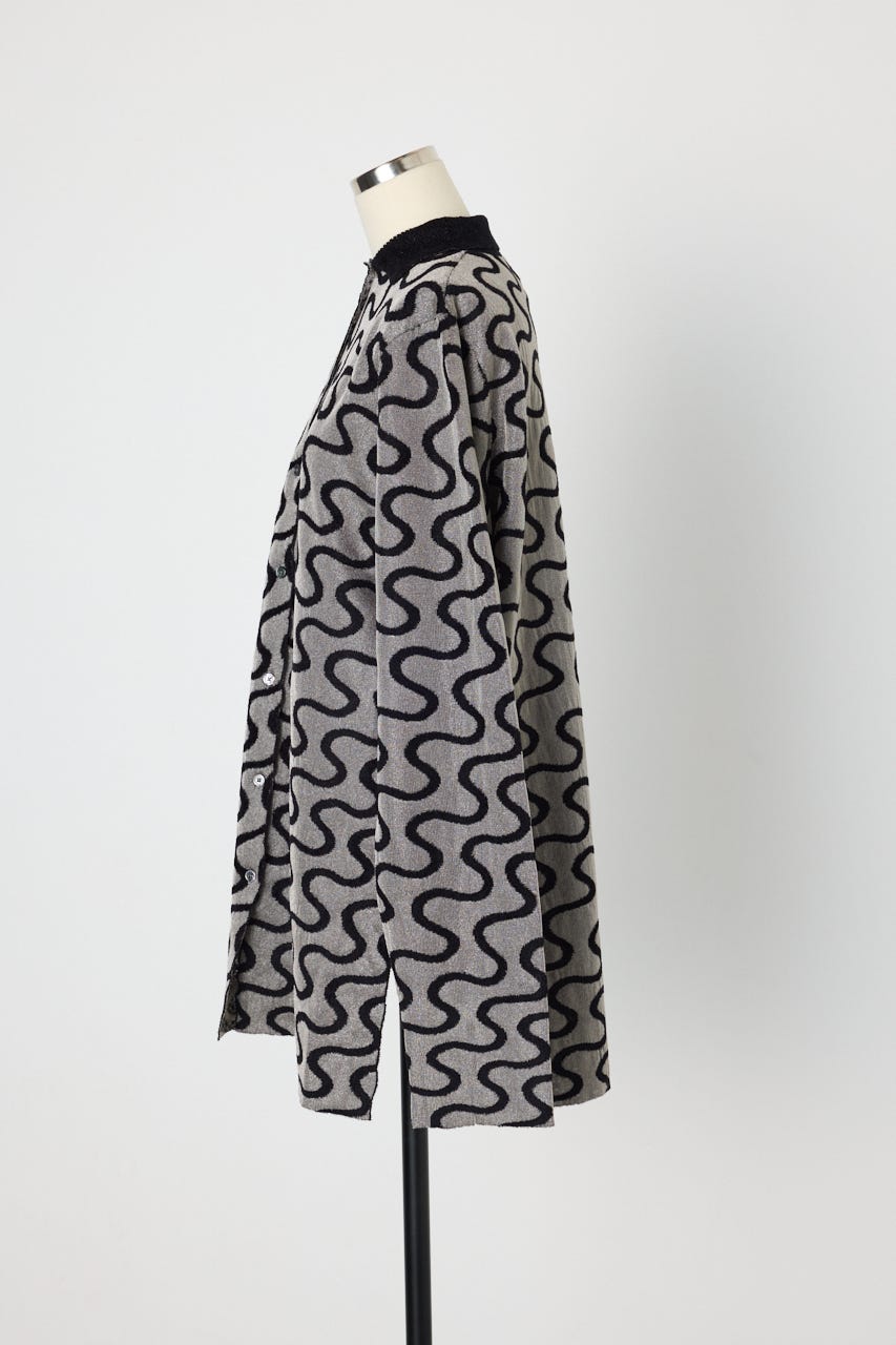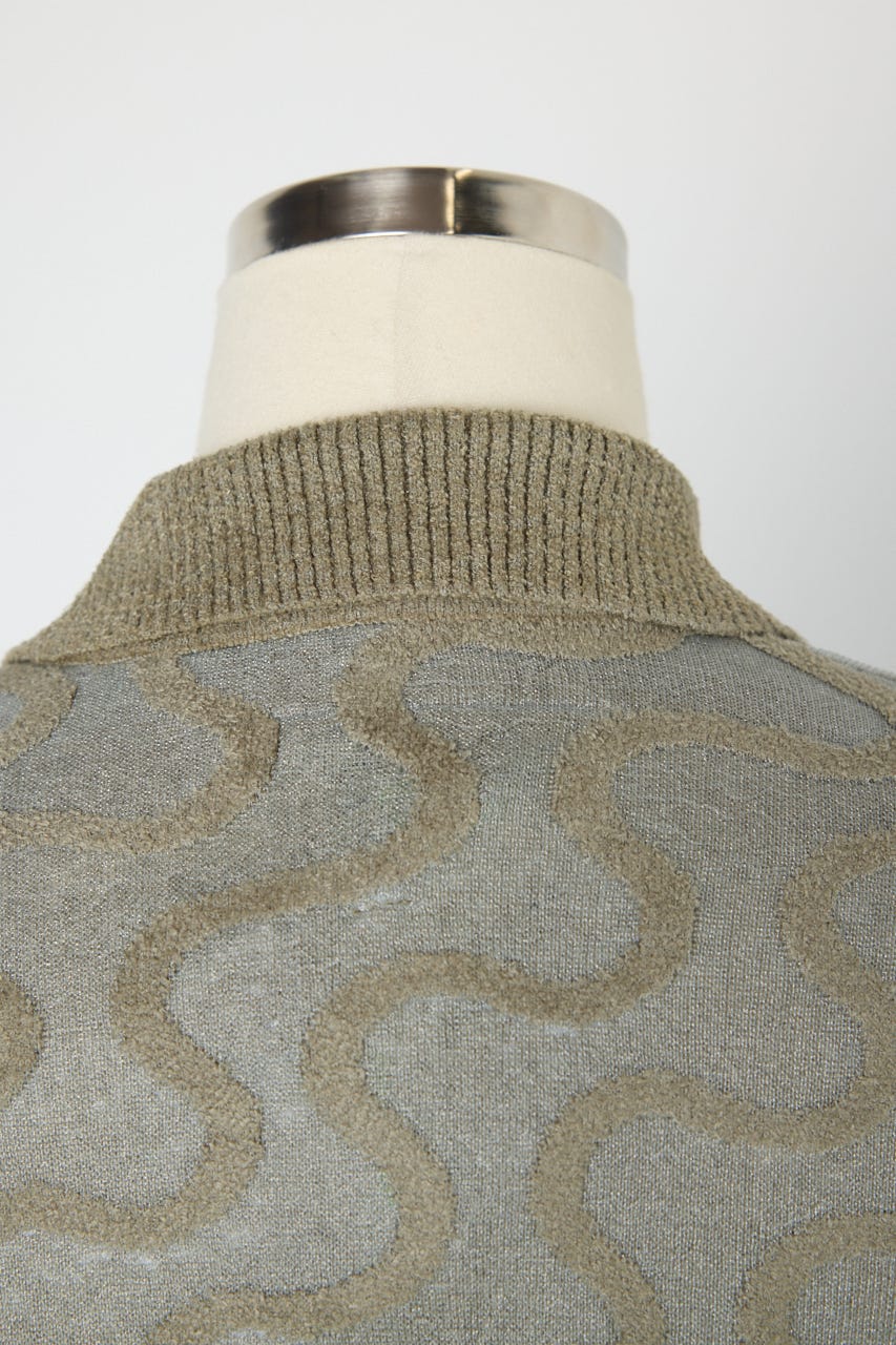 キラキラとしたハリ感のあるクリア糸と毛羽のあるモール糸を使用したオーバーサイズのニットシャツ。