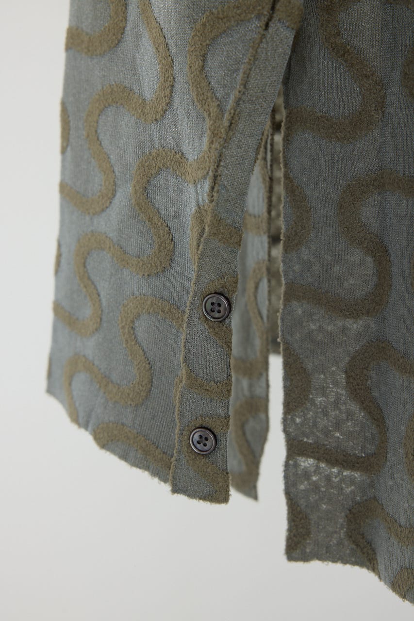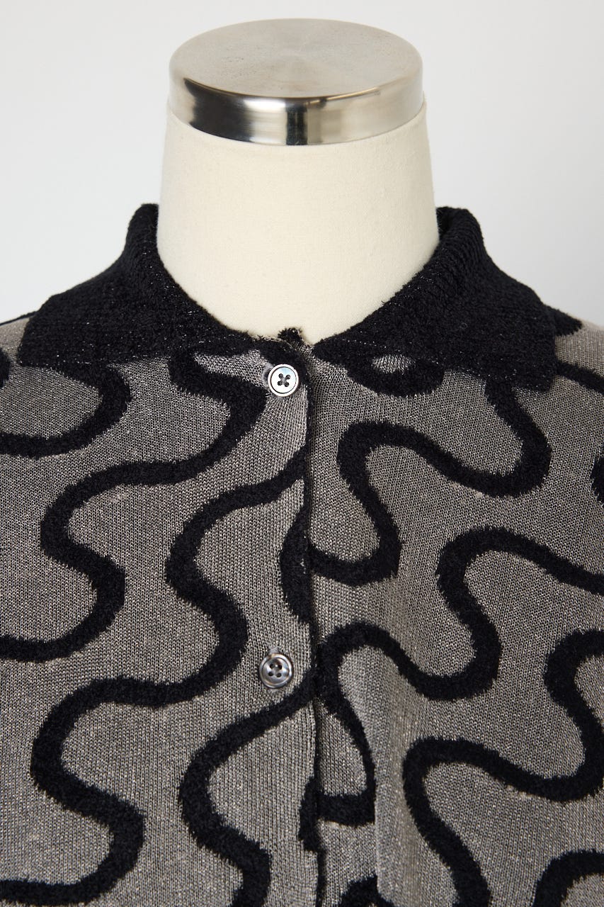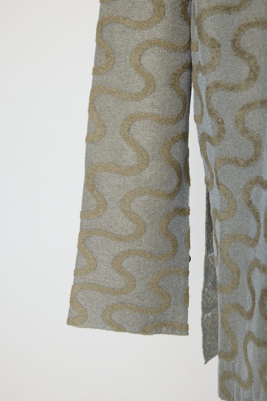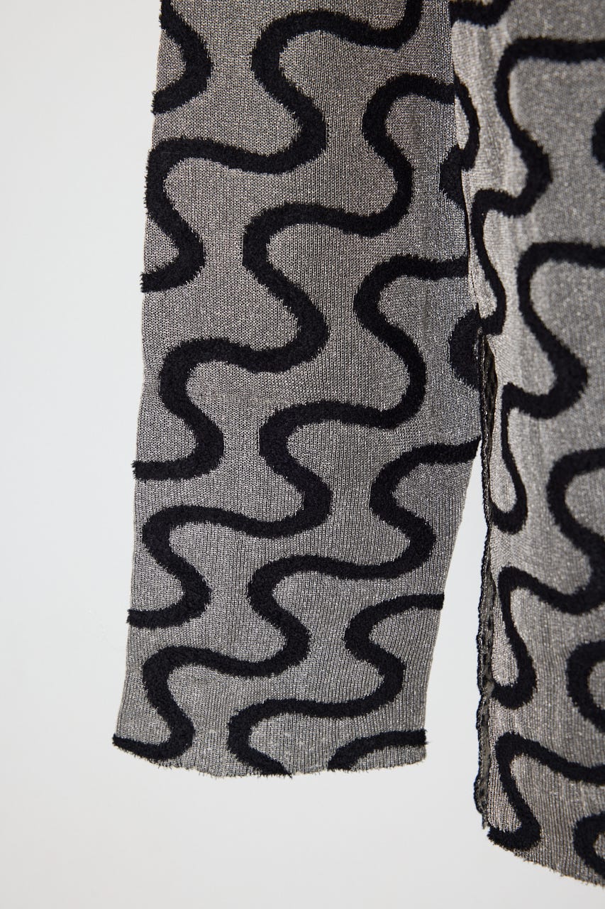 連続した波線を異なる素材で表情豊かなテキスタイルに仕上げている。