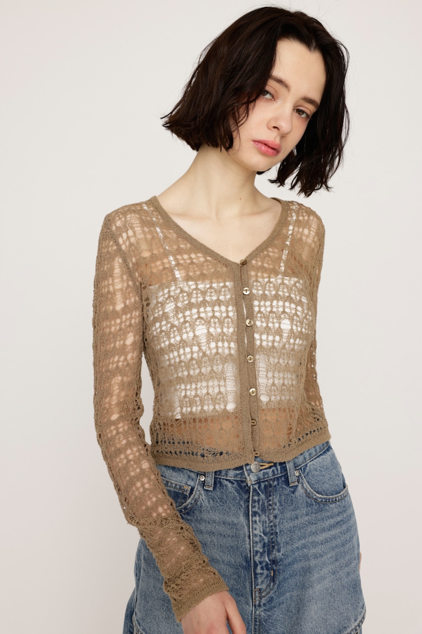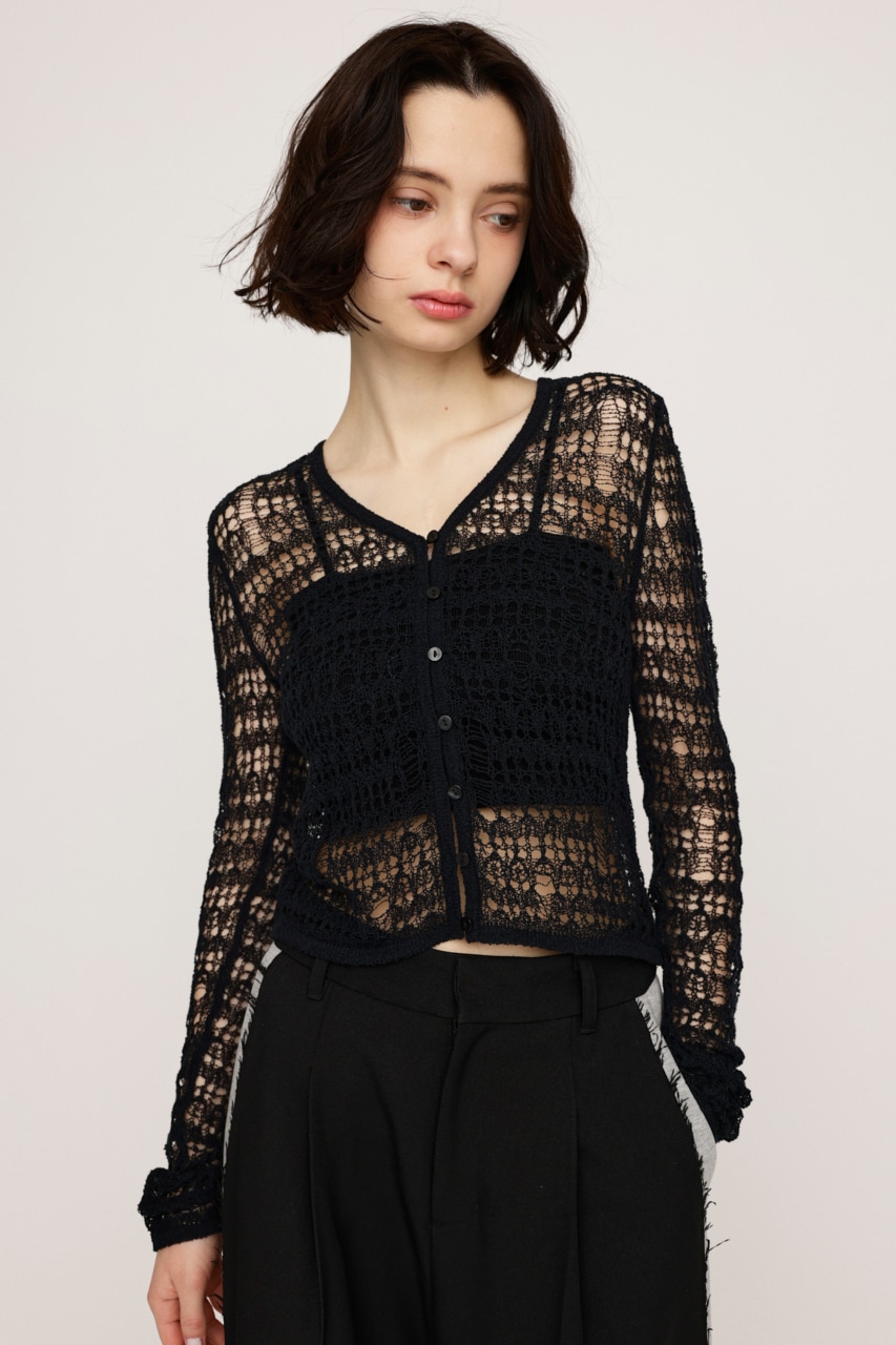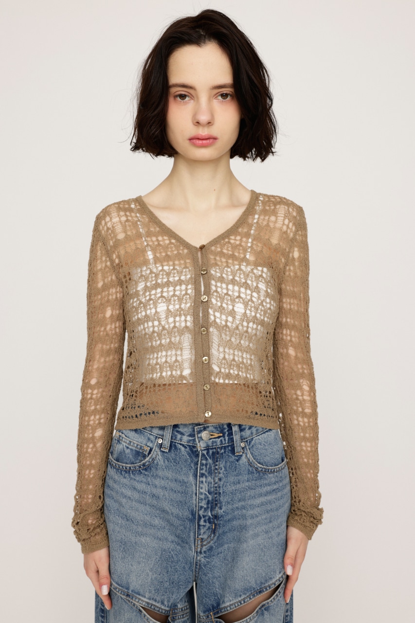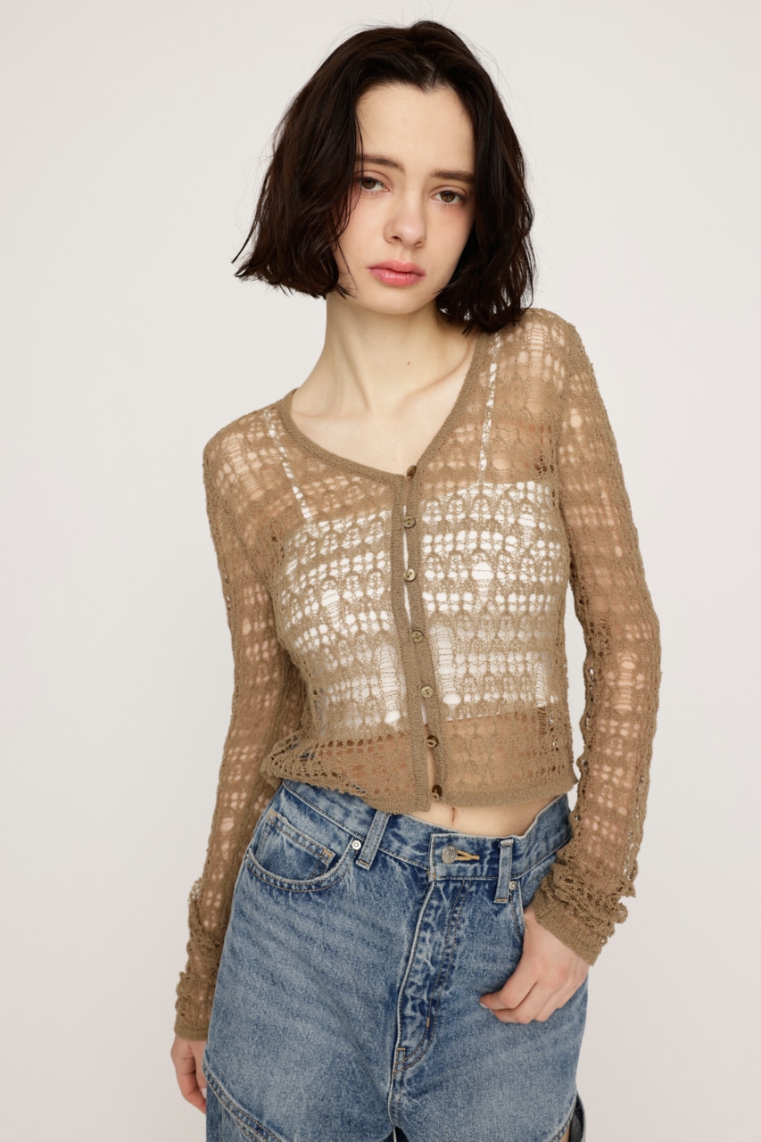 ■POINT:ヘルシーな肌見せが叶うメッシュニットカーディガン。