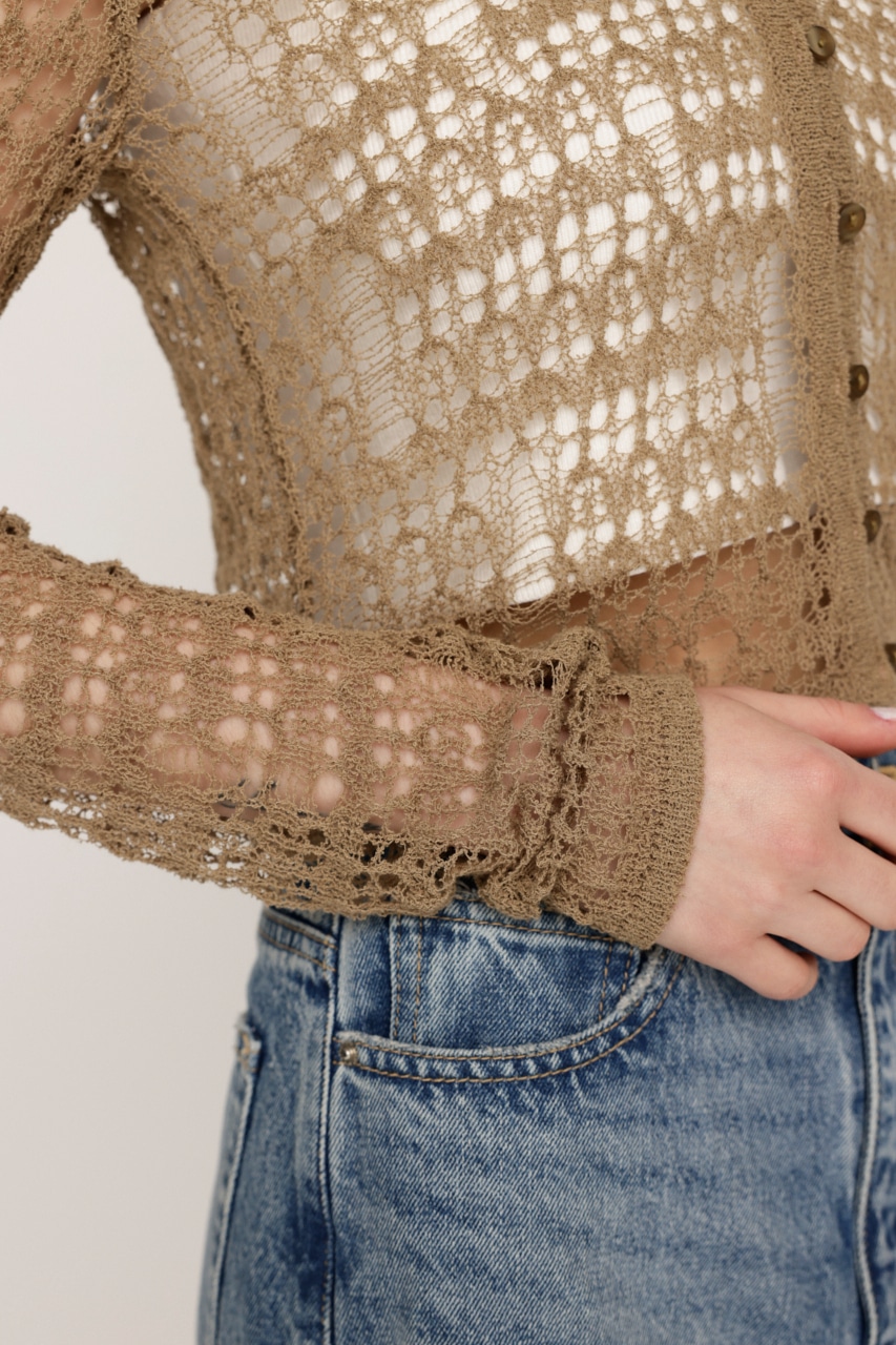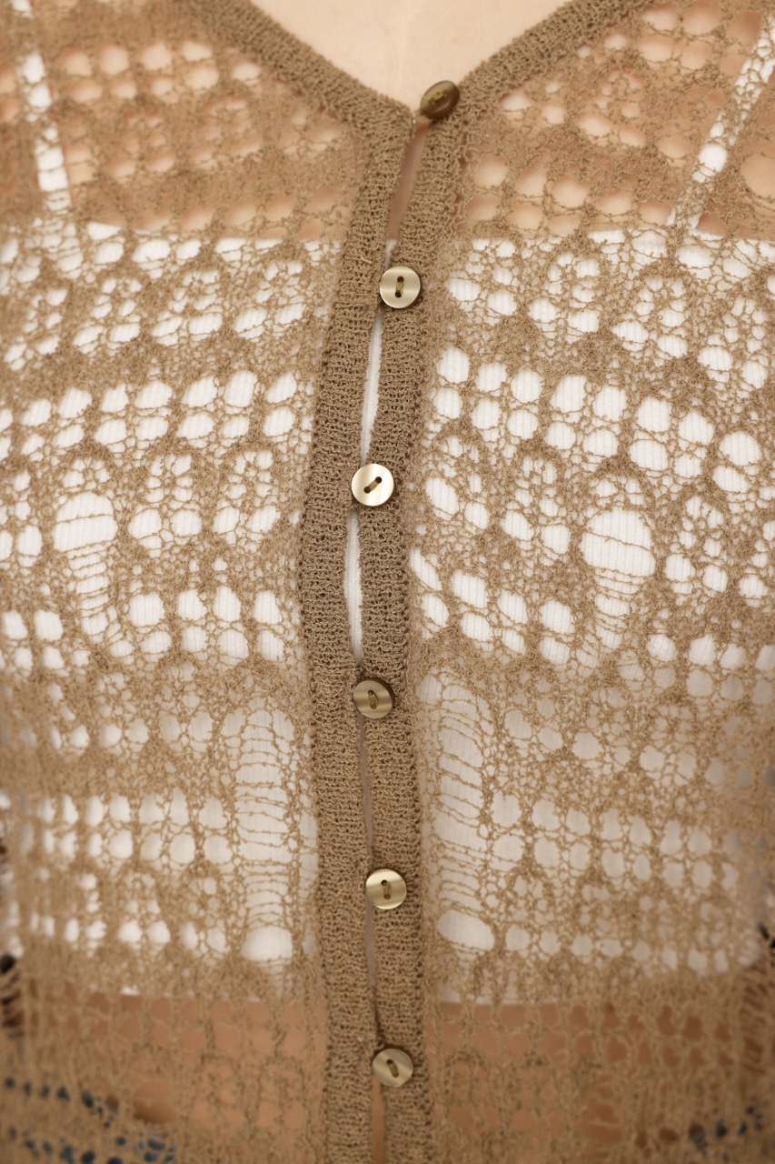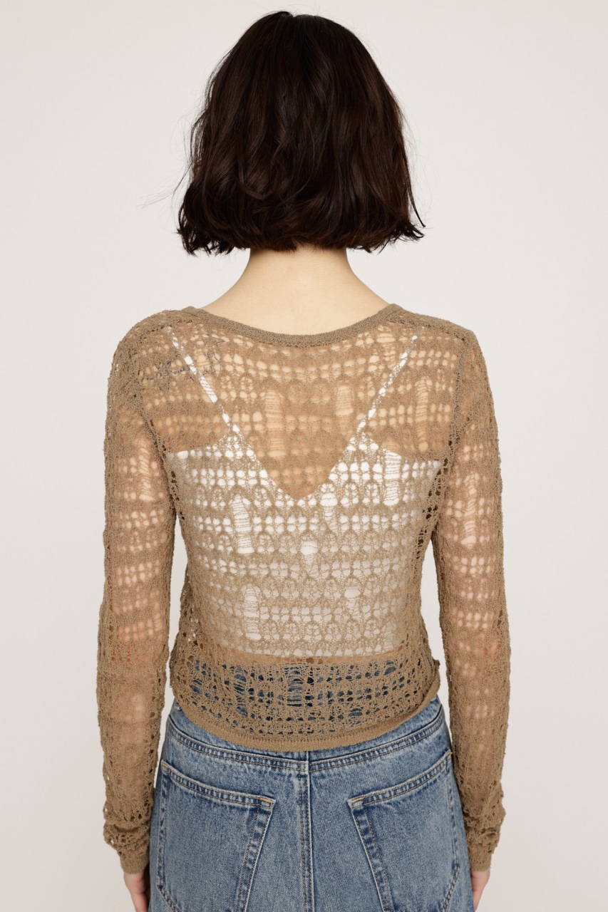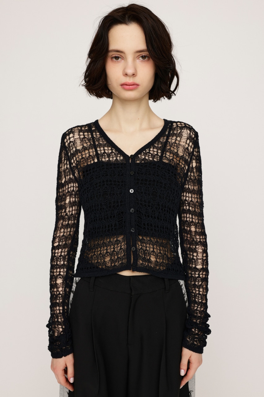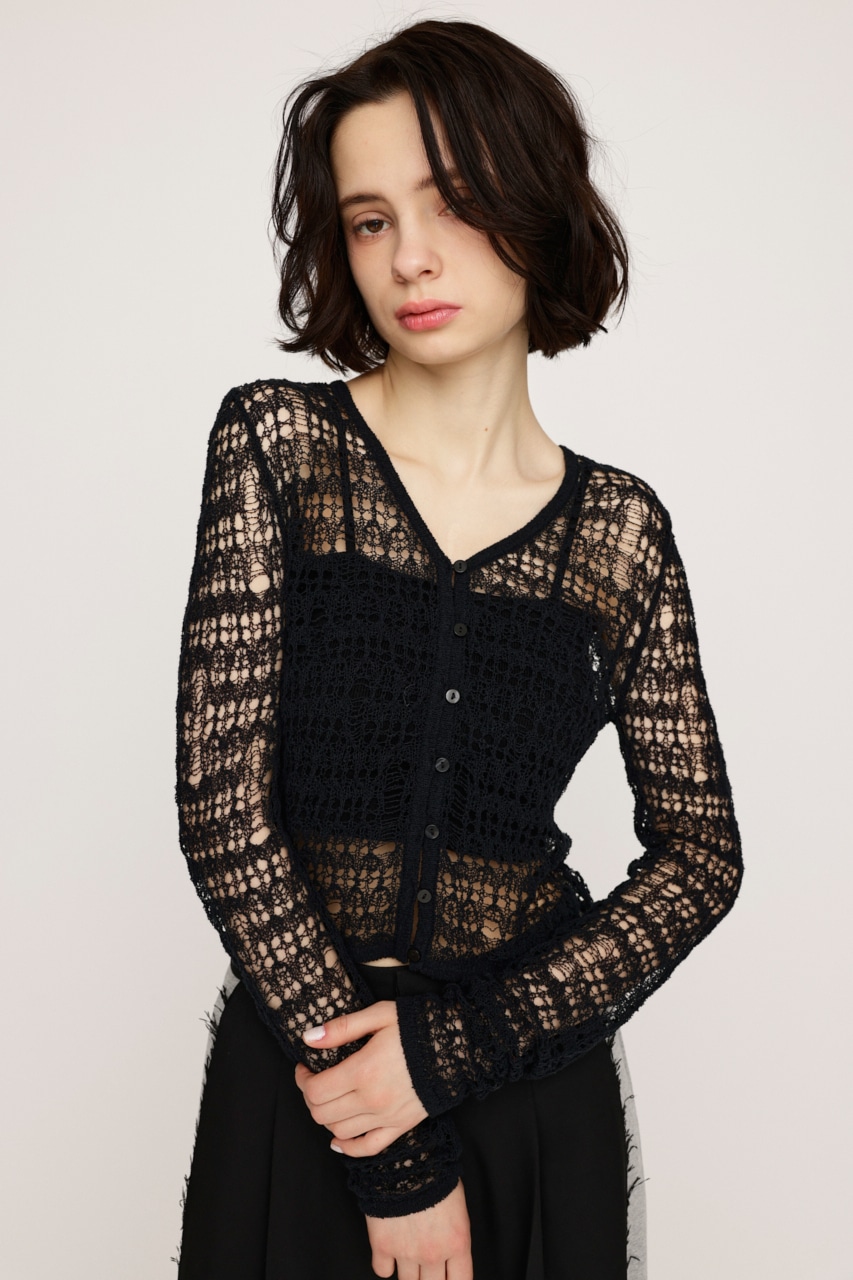 ■POINT:ヘルシーな肌見せが叶うメッシュニットカーディガン。