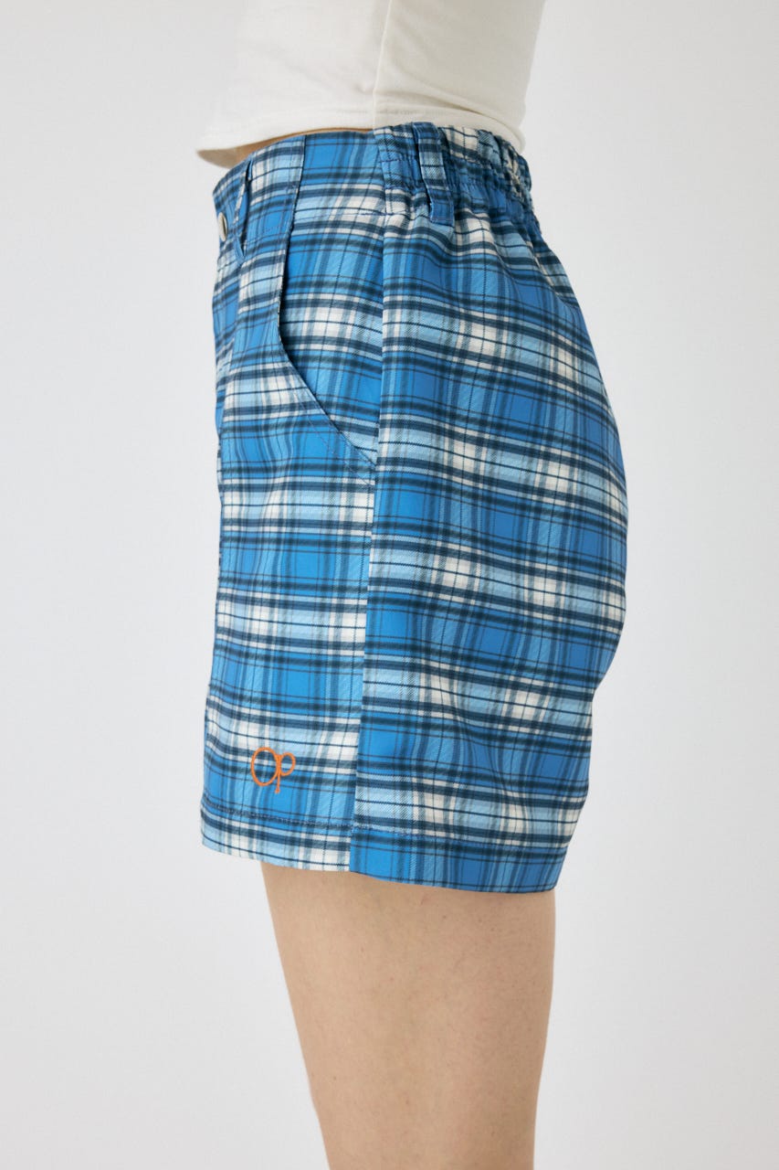 70年代から愛されるOcean Pacificのアイコニックなコーデュロイショーツのデザインを参考に、オリジナルのチェック柄プリントのナイロン素材を使用して、街中や水際でも活躍するアイテムへ。