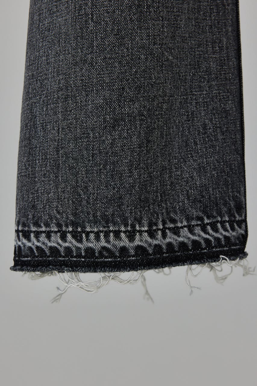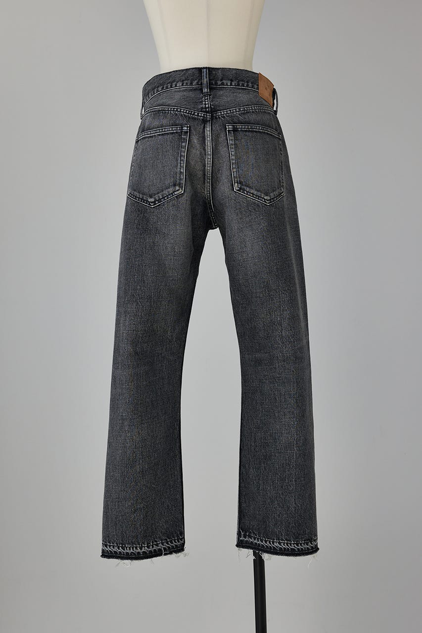 程よく品のある色落ち具合と加工後に解いた裾口はこなれた印象をプラス。