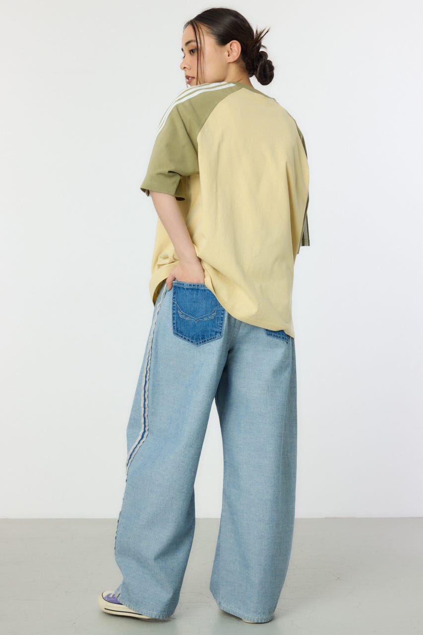 ベーシックなラグランTシャツにラインを加えてスポーティーなスタイルに仕上げたTシャツ。