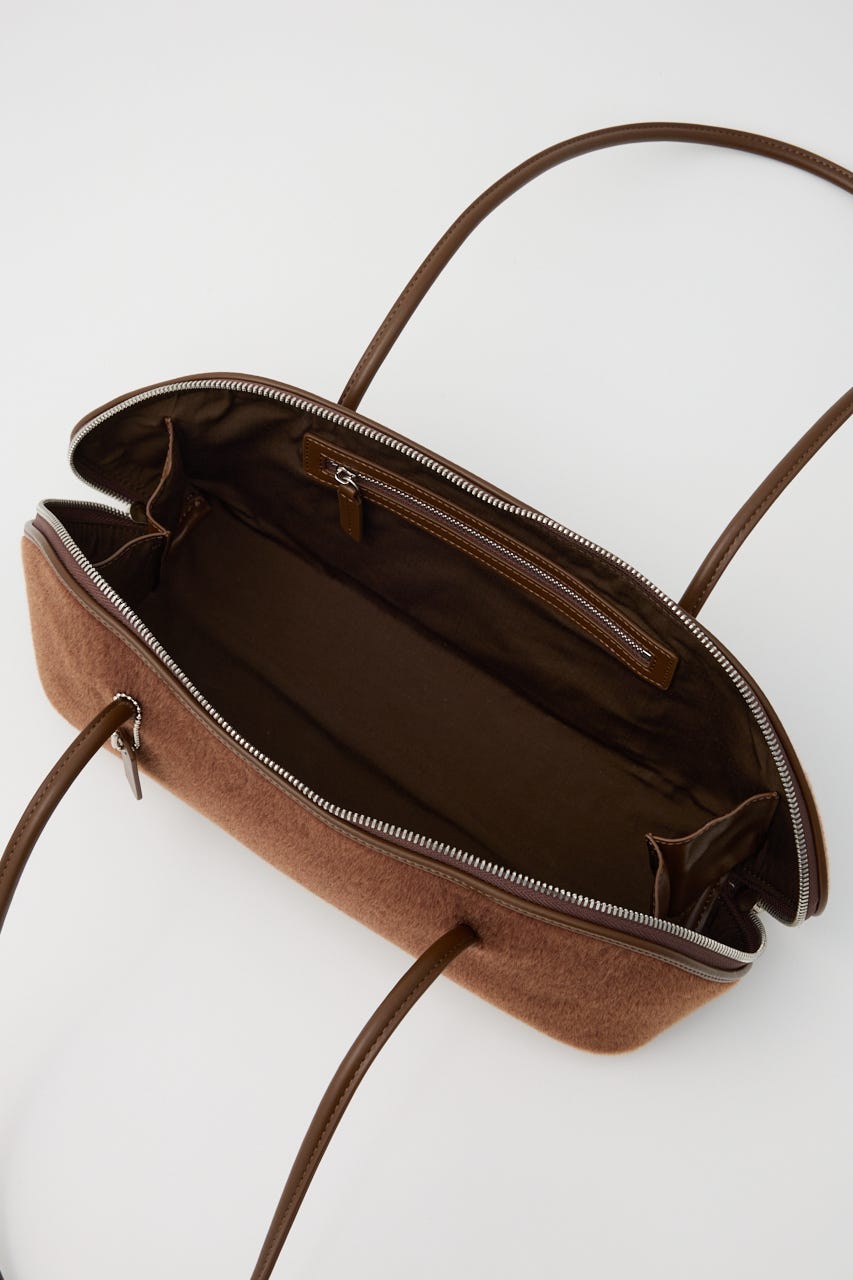コスメポーチのように口元が大きく開き、見た目以上に収納力があります。