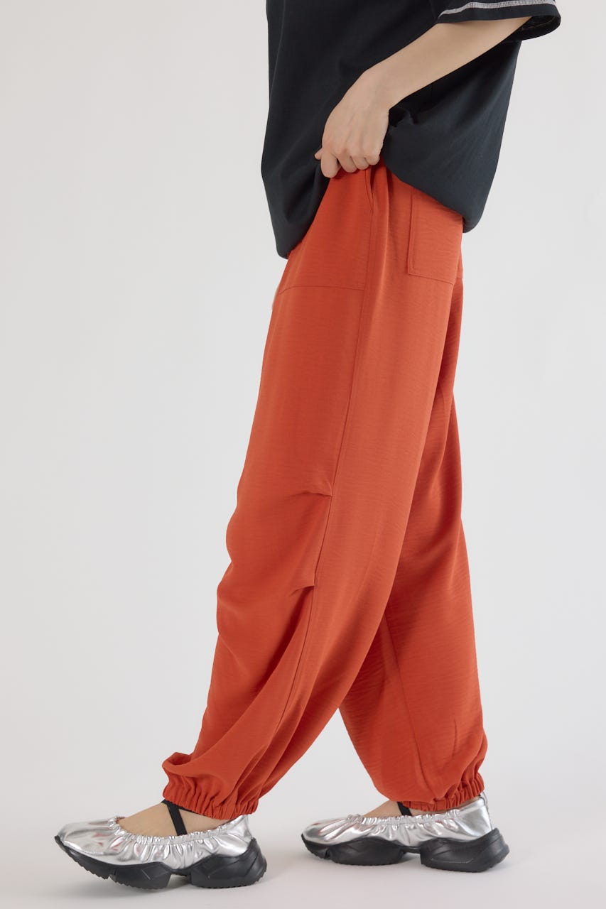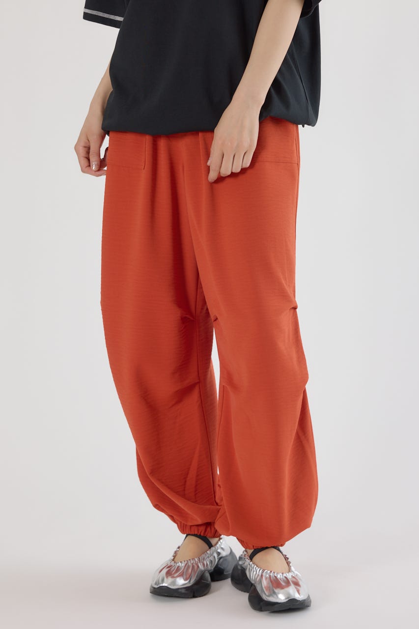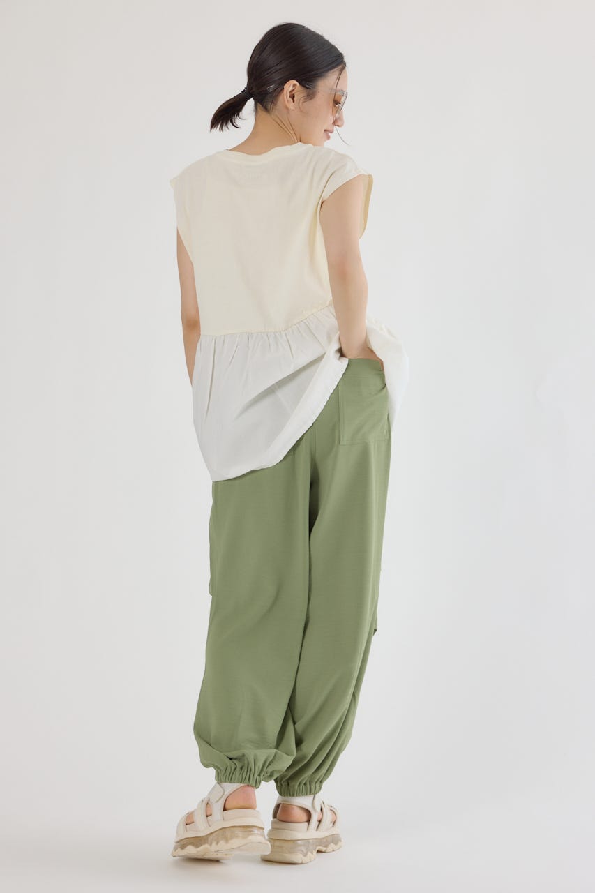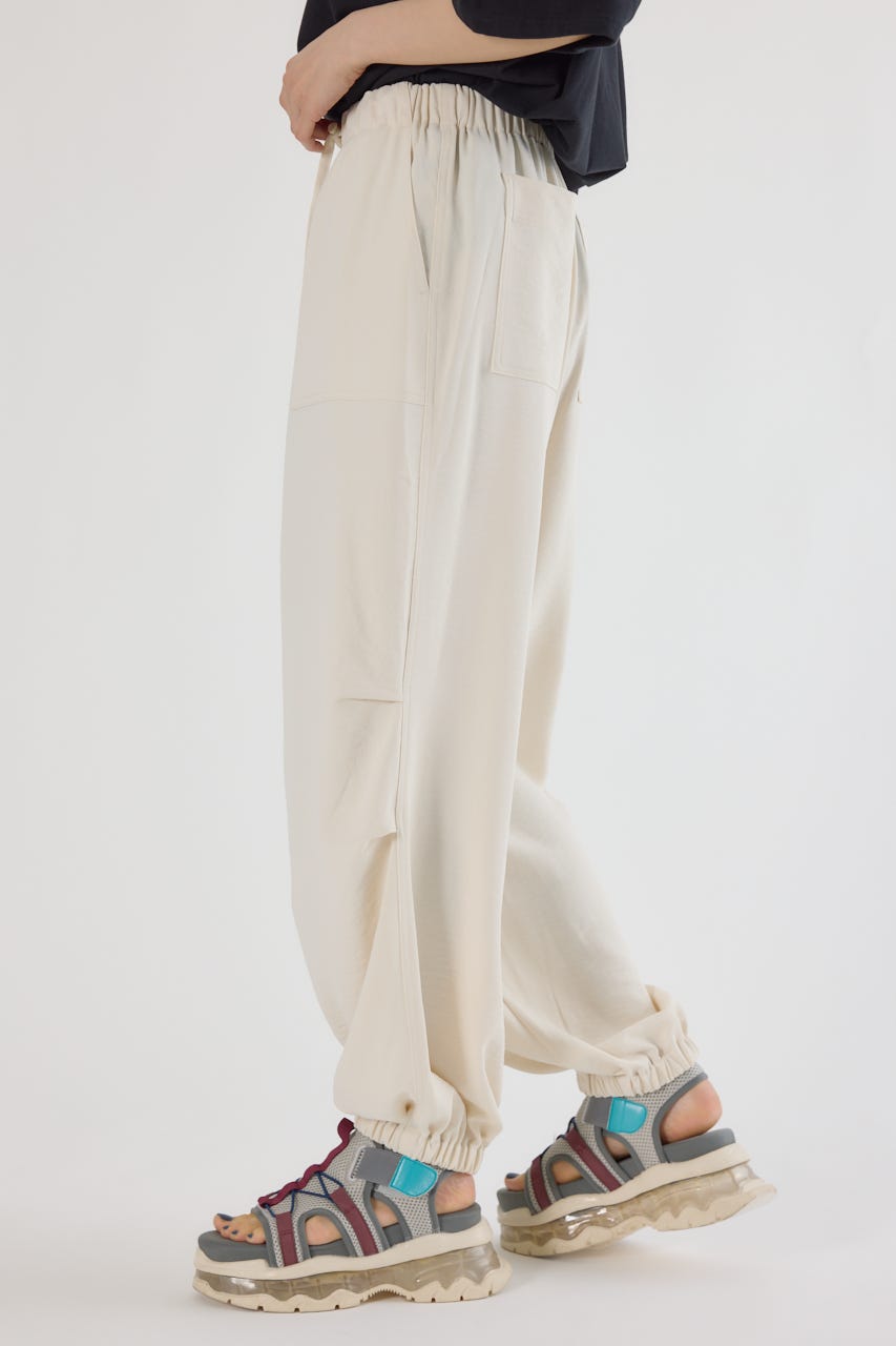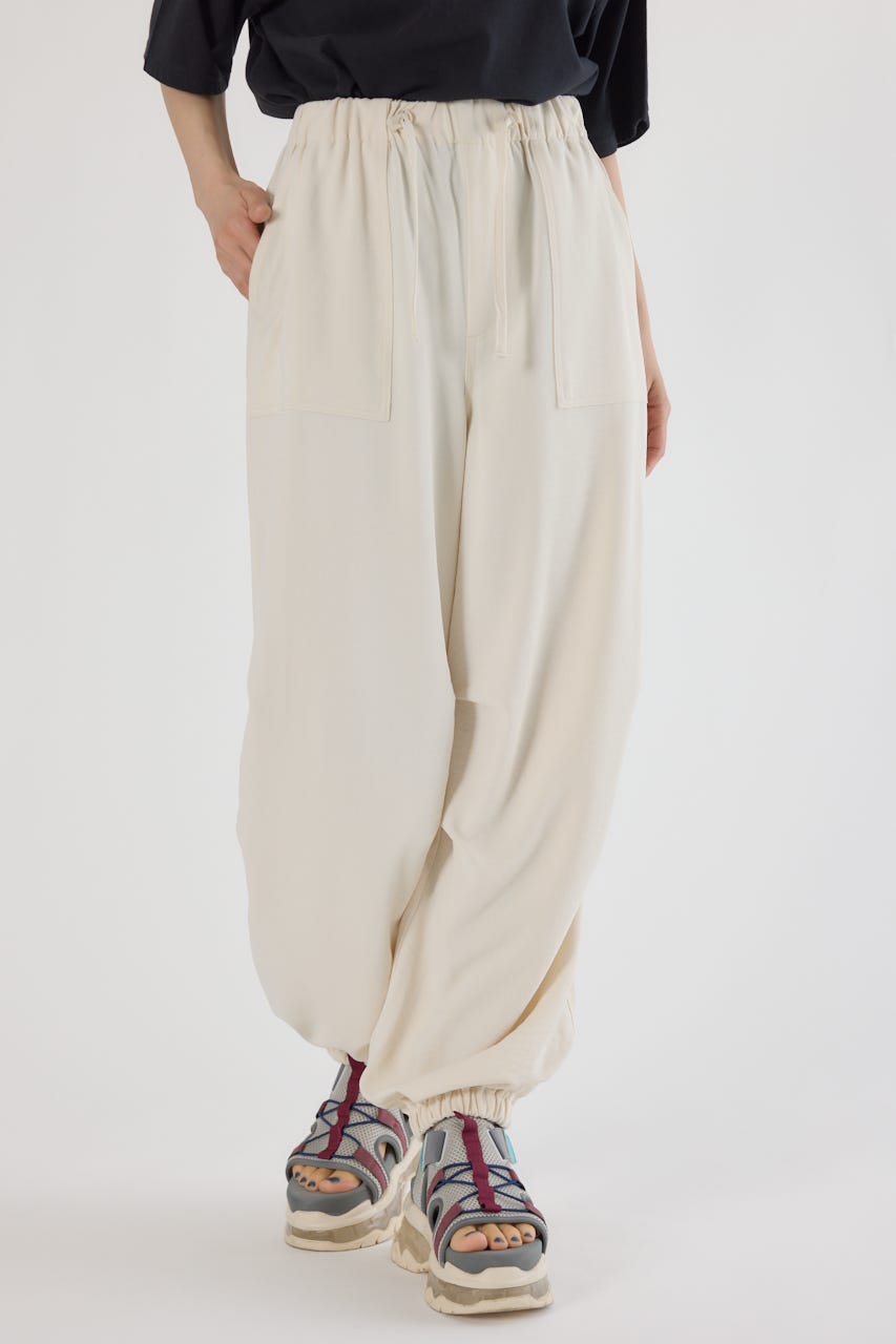 ゆったりとしたシルエットで裾口はシルエットアレンジ可能なドローコード入り。