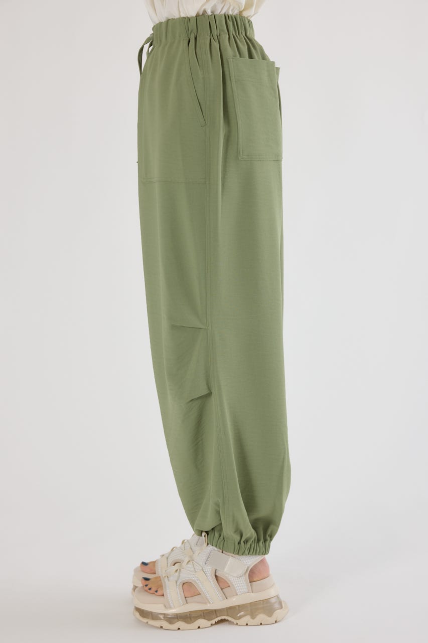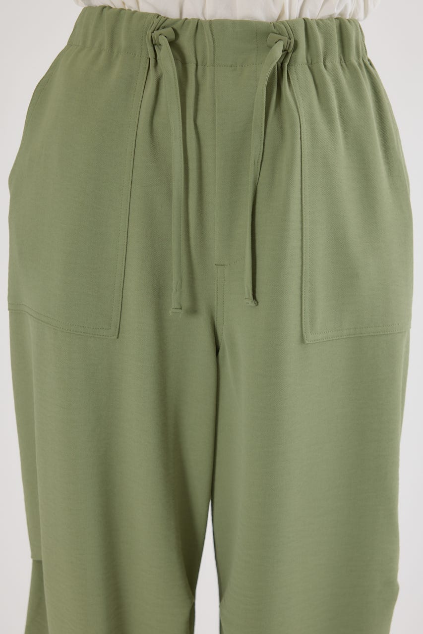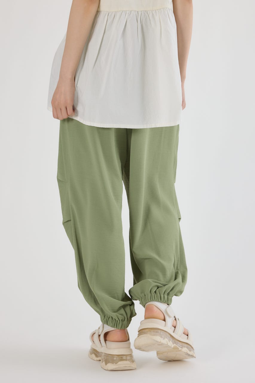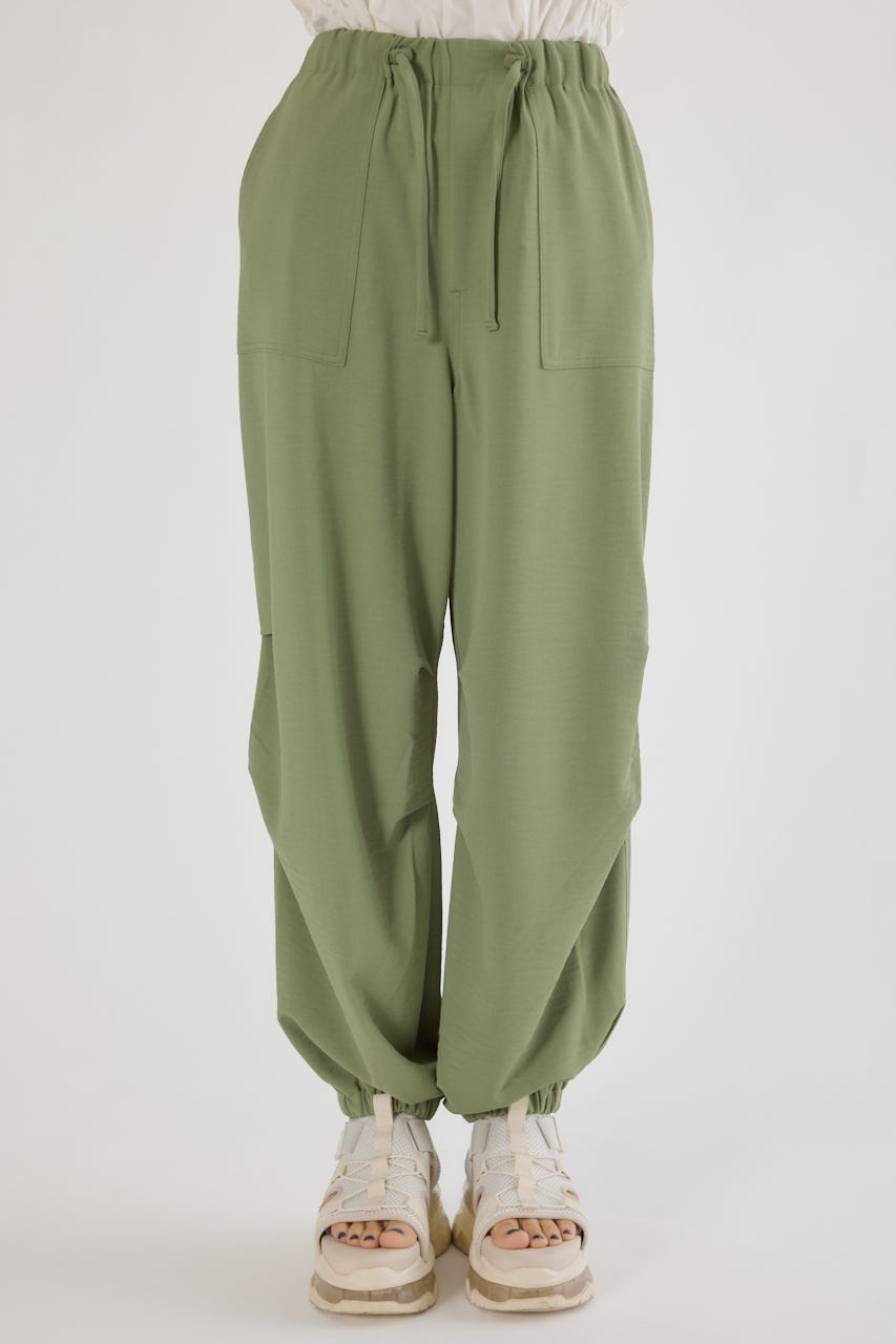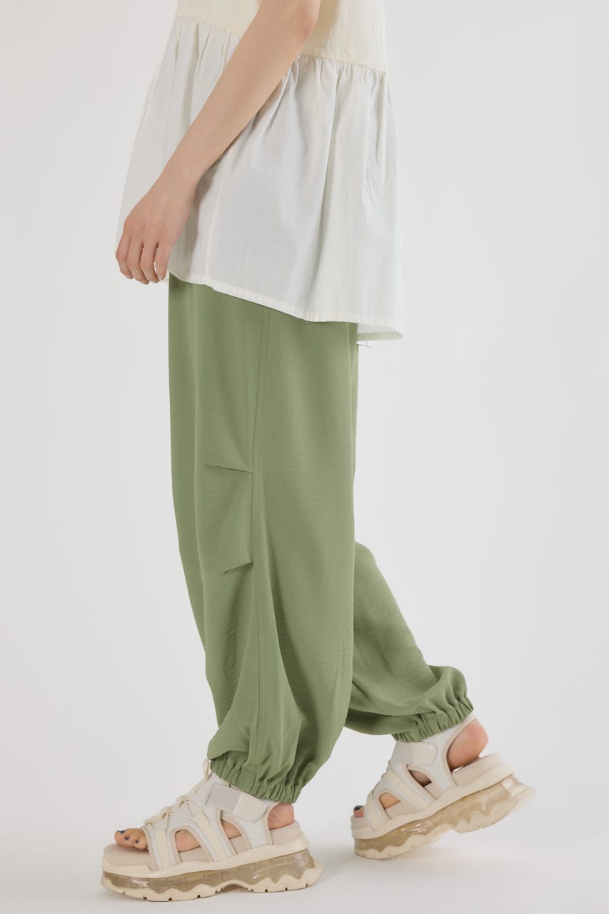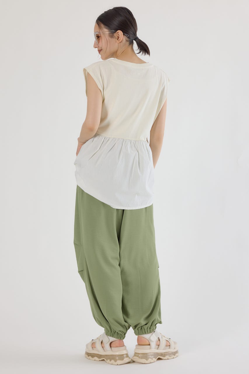ゆったりとしたシルエットで裾口はシルエットアレンジ可能なドローコード入り。