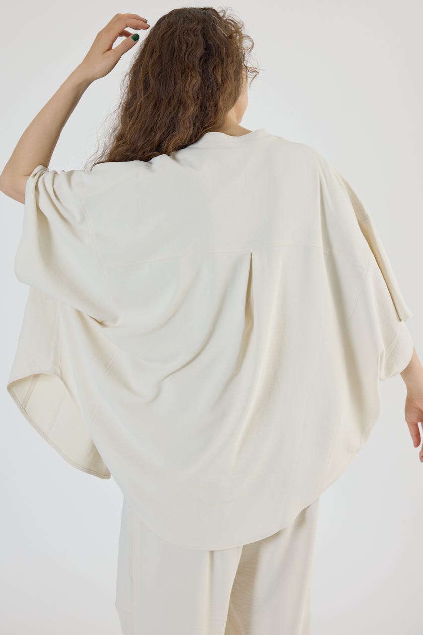 接触冷感、ストレッチの機能付きでこれからの季節にピッタリなドルマンシャツ。
