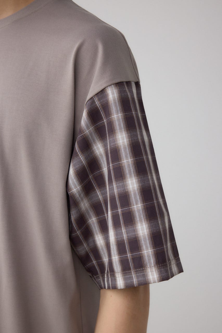 袖がシャツ素材になっているスウィッチングデザイントップスになります。