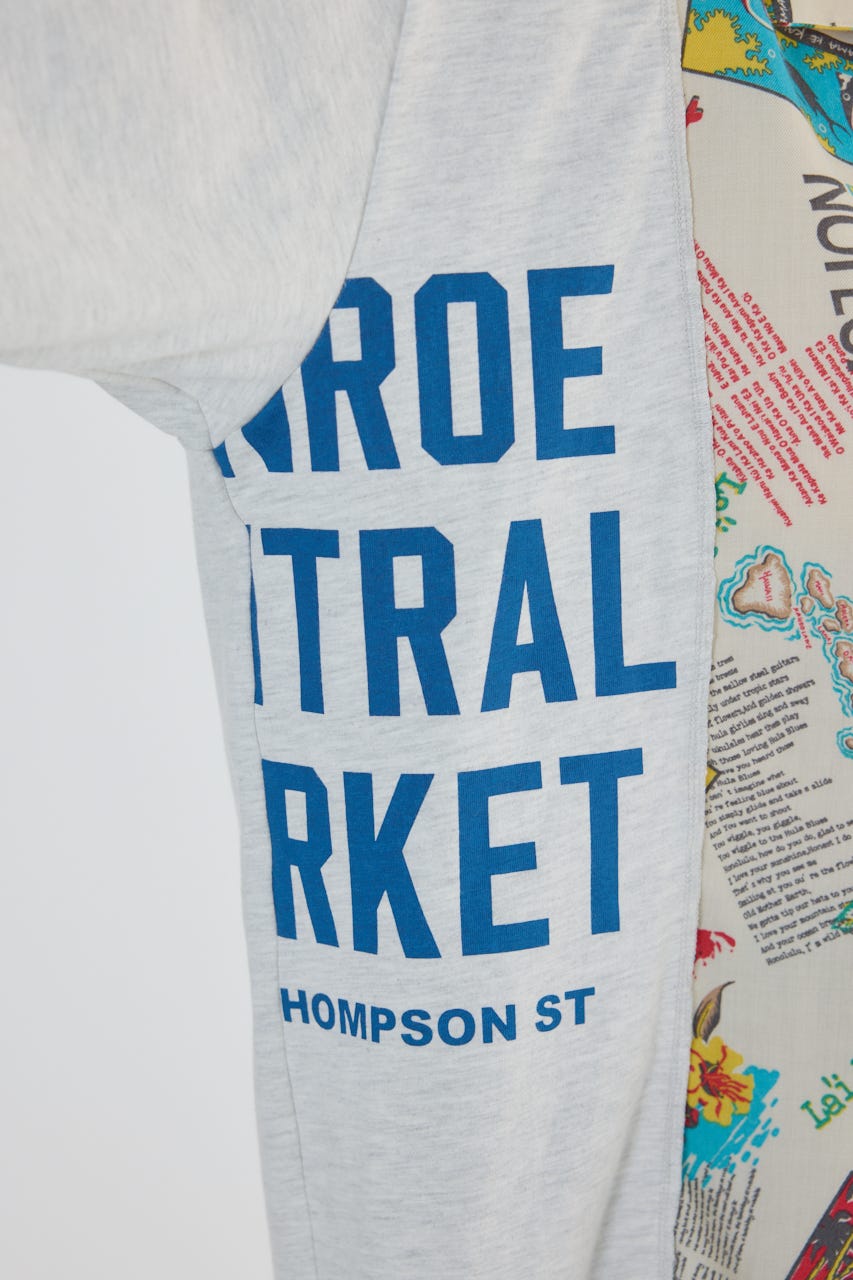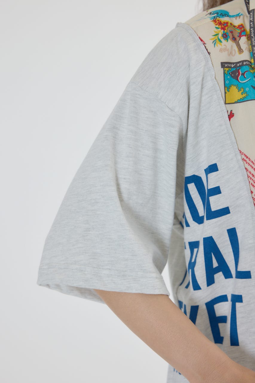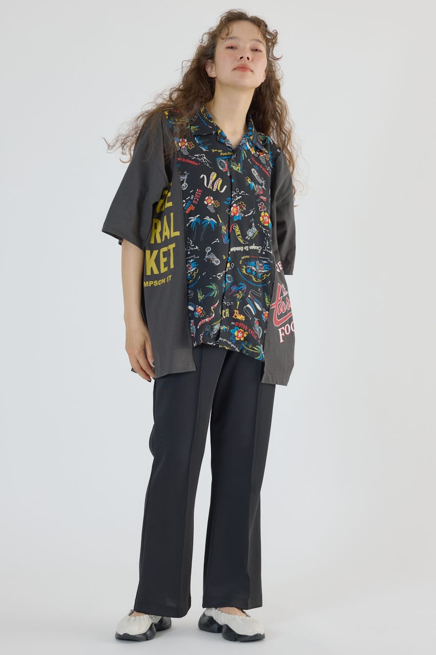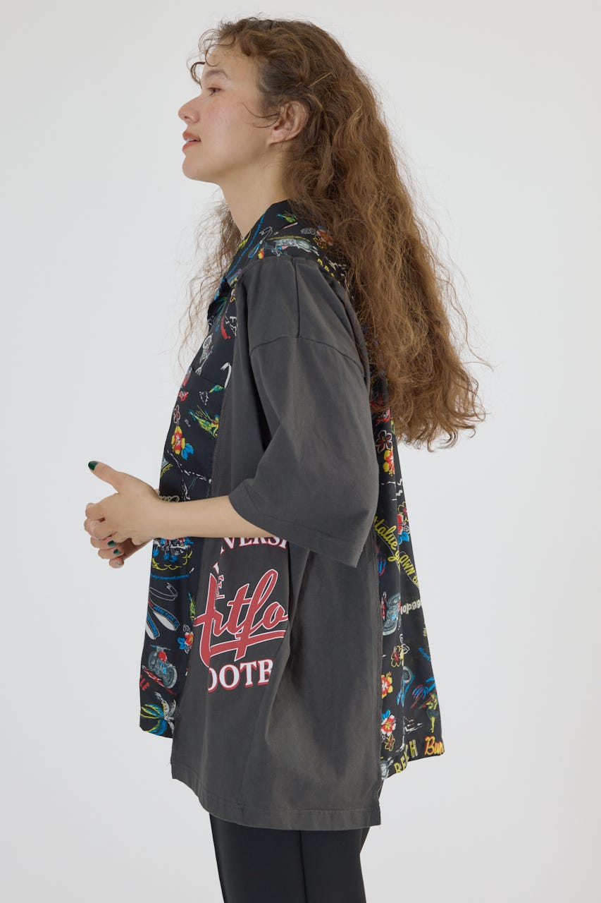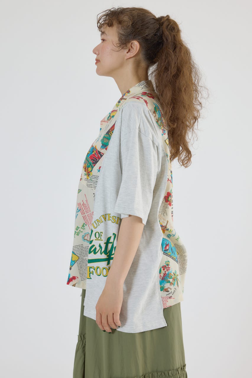 アロハシャツとプリントTシャツを切替えたイメージのリメイク風デザイン。