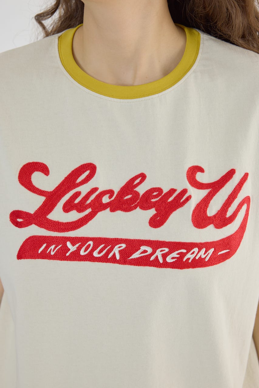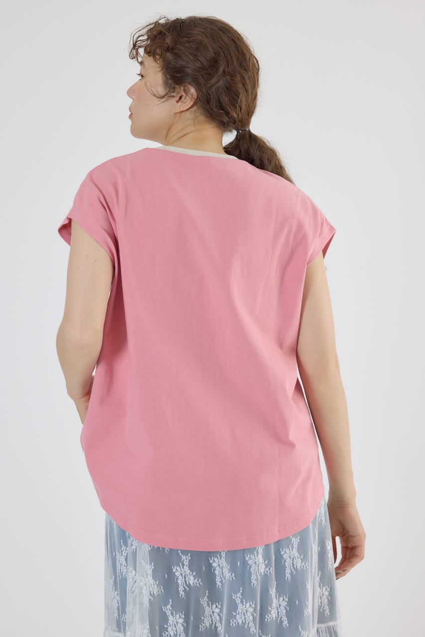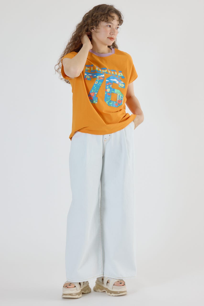襟元だけの配色リンガーTシャツなのでスポーティすぎずにスタイリングに取り入れやすいのが特徴。