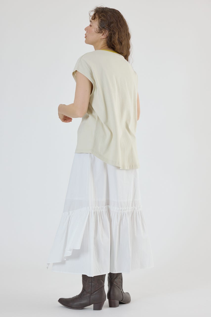 二の腕カバーにもなるフレンチスリーブと程よくゆったりなシルエットです。