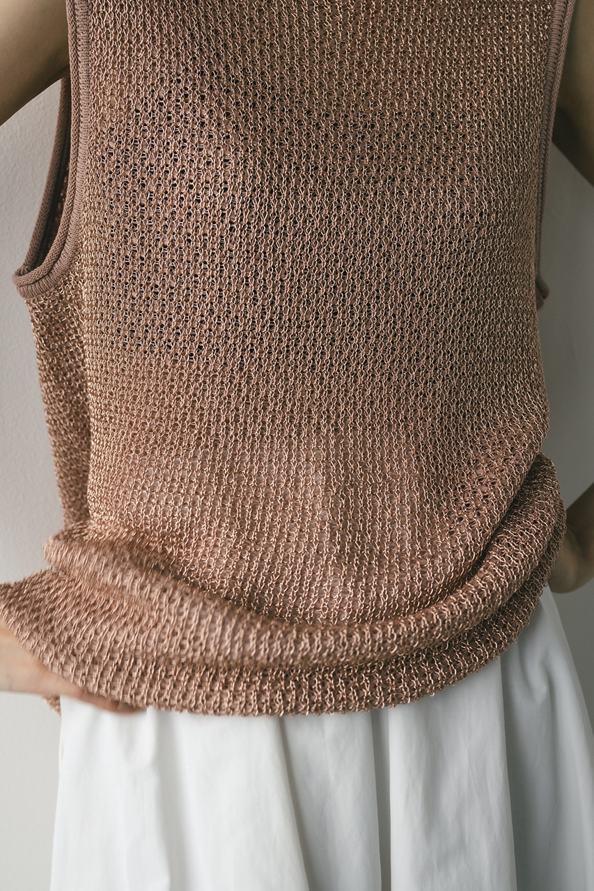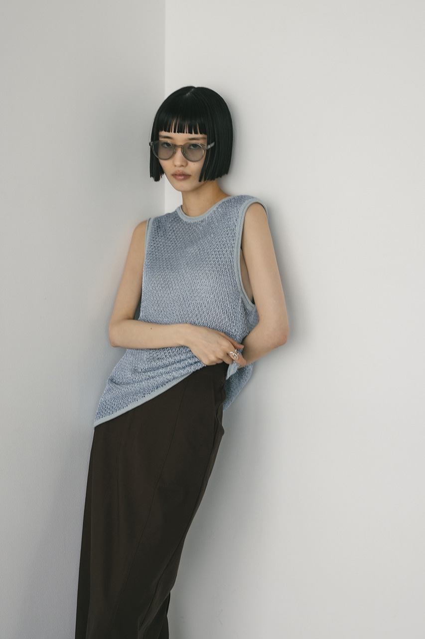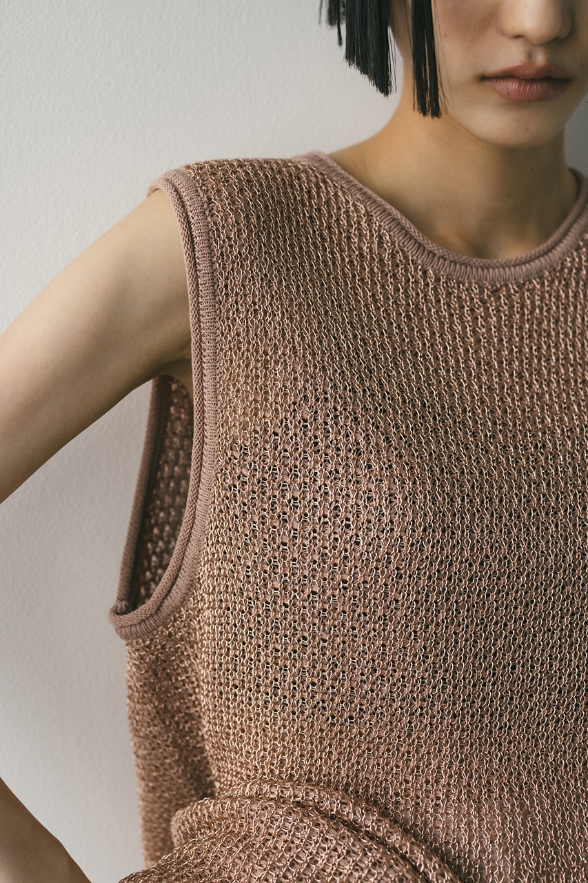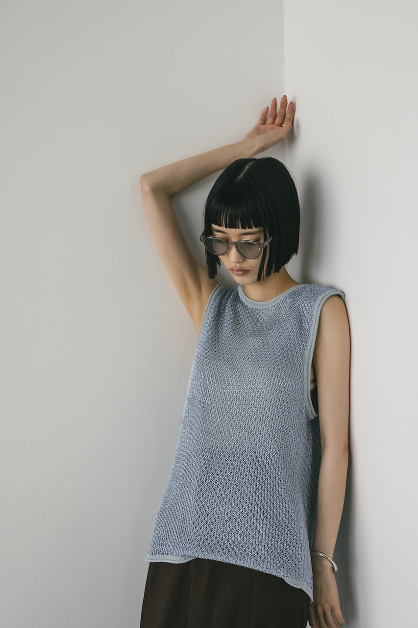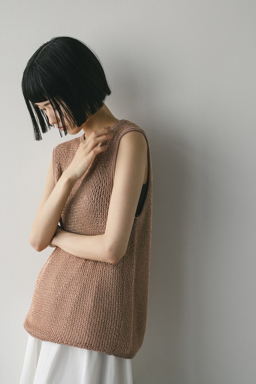 涼し気な光沢感と程よい透け感が映えるニットタンク。