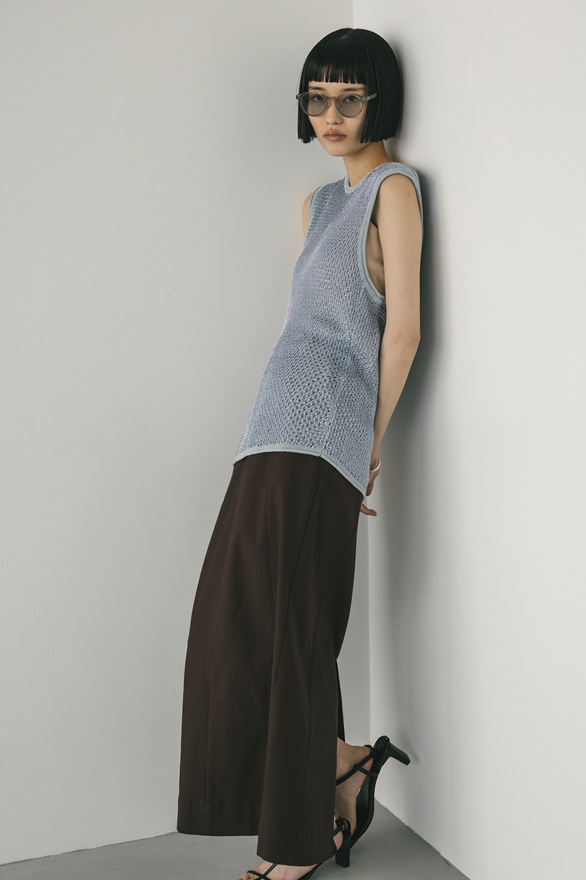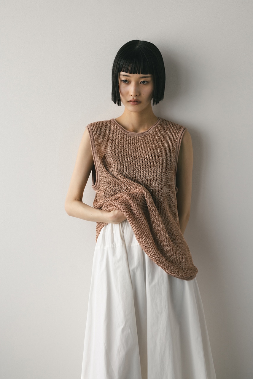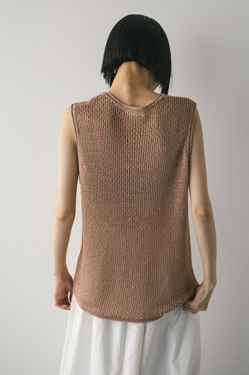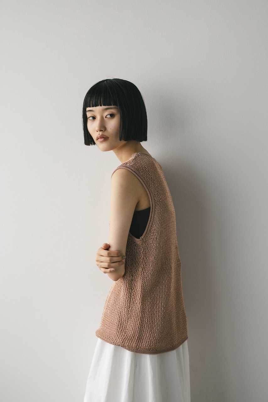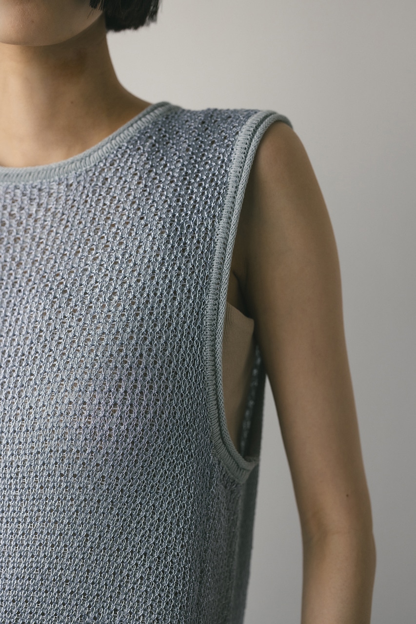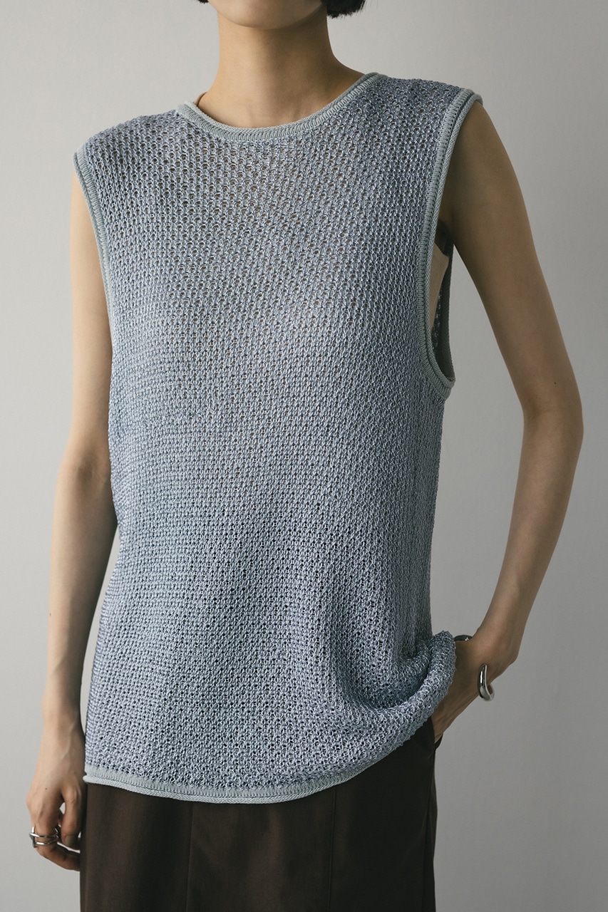 涼し気な光沢感と程よい透け感が映えるニットタンク。